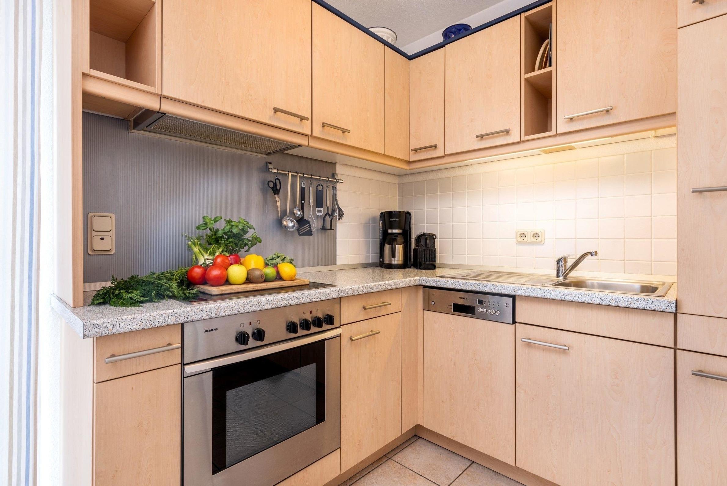 In dieser stilvollen Ferienwohnung erwartet die Gäste eine großzügige und durchdachte Ausstattung. Mit zwei einladenden Schlafzimmern, die jeweils mit einem Doppelbett ausgestattet sind, bietet sie ausreichend Platz für Entspannung und Erholung. Die offene Küche ist ein Highlight der Wohnung und verfügt über modernste Geräte wie einen Geschirrspüler, Elektro-/Gasherd, Backofen und Kühlschrank, ergänzt durch kleine Helfer wie eine Kaffeemaschine, Espressomaschine und Mixer. Ein Esstisch lädt zu geselligen Mahlzeiten ein. Das Badezimmer, ausgestattet mit Fenster, Badewanne und Dusche, sorgt für ein angenehmes Ambiente. Mit Annehmlichkeiten wie Heizung, TV, HiFi-Anlage und einer Waschmaschine, die einen Wäschetrockner bietet, wird der Aufenthalt komfortabel gestaltet. Zudem sind die Räume allergikergeeignet und bieten durch eine gute Ausstattung mit Brettspielen und Gewürzen ideale Voraussetzungen für einen erholsamen Urlaub. Der Parkplatz vor der Tür rundet das Angebot ab.