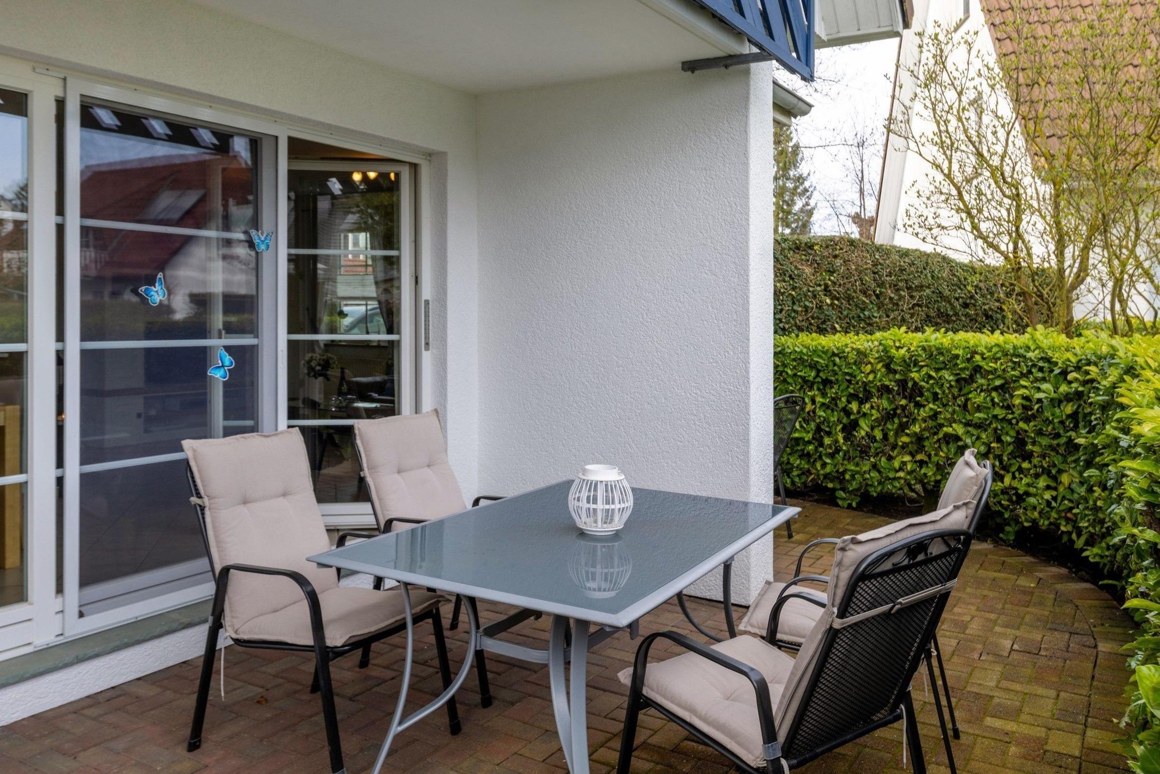Die Ferienwohnung bietet einen einladenden Außenbereich mit einer gemütlichen Terrasse sowie komfortablen Gartenliegen und Liegestühlen. Hier kann man entspannte Stunden im Freien verbringen und die ruhige, private Atmosphäre genießen. Ideal für erholsame Tage in der Natur und ungestörte Momenten der Entspannung.
