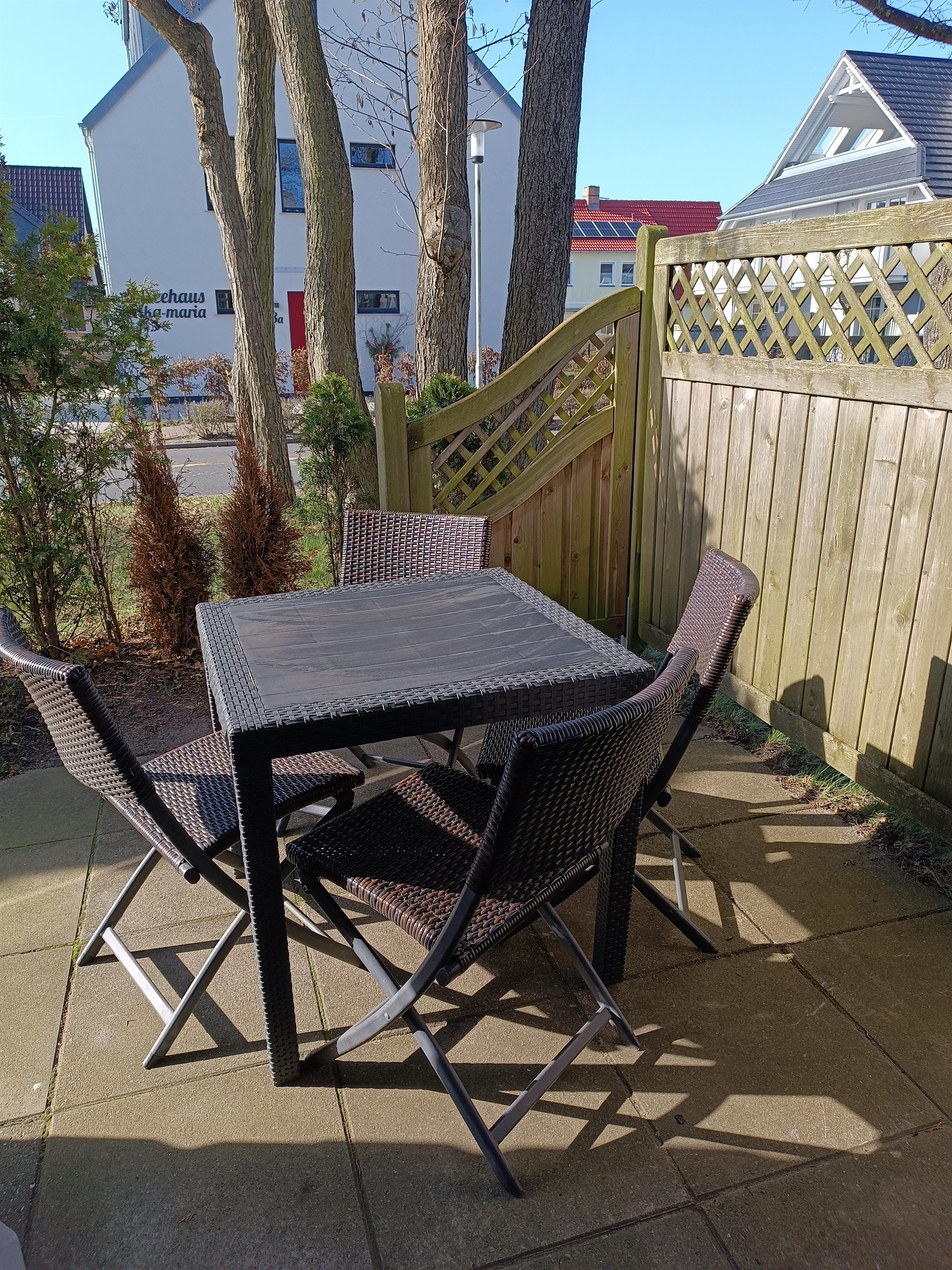 Unsere frisch renovierte (ab März 2025) und liebevoll eingerichtete Ferienwohnung befindet sich im Erdgeschoss. Über den Eingangsbereich gelangen Sie in die helle Wohn,-Küchen und Essbereich inklusive Austritt zur Terrasse. Die Wohnung verfügt über zwei gemütliche Schlafzimmer. Dort befinden sich ein Etagenbett und ein Doppelbett. Auch an unsere kleinen Gäste haben wir gedacht und stellen ein Reisebett und ein Hochstuhl zur Verfügung. Im Duschbad können Sie sich nach einem Strandbesuch mit anschließender Dusche ihre Haare trocknen. Die Küchenzeile ist ausgestattet mit einem Kühlschrank mit Gefrierfach, Geschirrspüler, Backofen mit Elektroherd, Kaffeemaschine, Wasserkocher, Toaster sowie Geschirr, Töpfe und Besteck. Zur Unterhaltung stehen ein TV, Brettspiele, Bücher und WLAN für Sie bereit