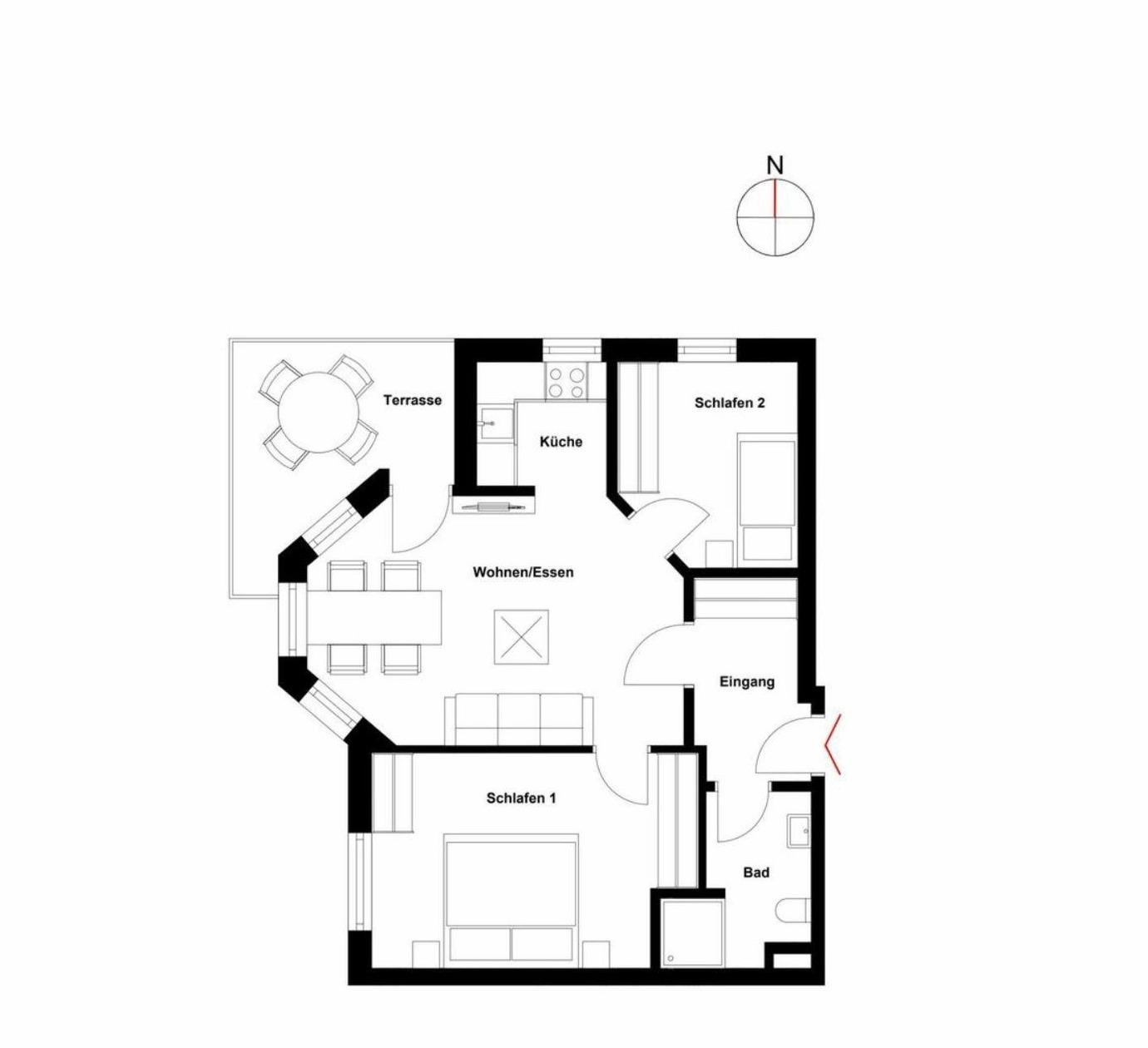 Unsere frisch renovierte (ab März 2025) und liebevoll eingerichtete Ferienwohnung befindet sich im Erdgeschoss. Über den Eingangsbereich gelangen Sie in den hellen Wohn,- Küchen- und Essbereich inklusive Austritt zur Terrasse.