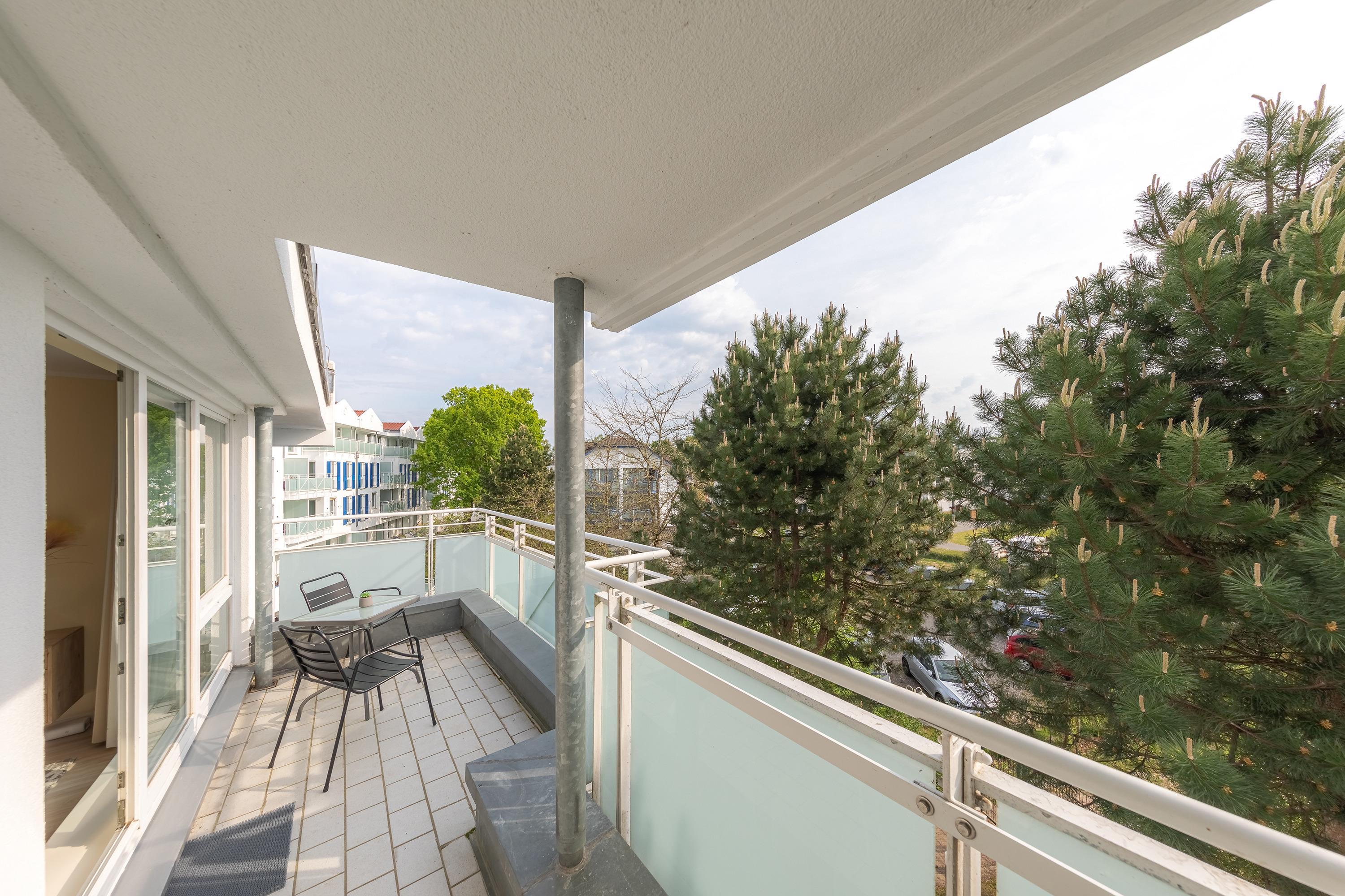 Sowohl vom Schlafzimmer als auch vom Wohnbereich haben Sie Zugang zum Balkon, der mit einem Tisch und zwei Stühlen ausgestattet ist – der perfekte Ort, um den Morgen bei einer Tasse Kaffee zu genießen.