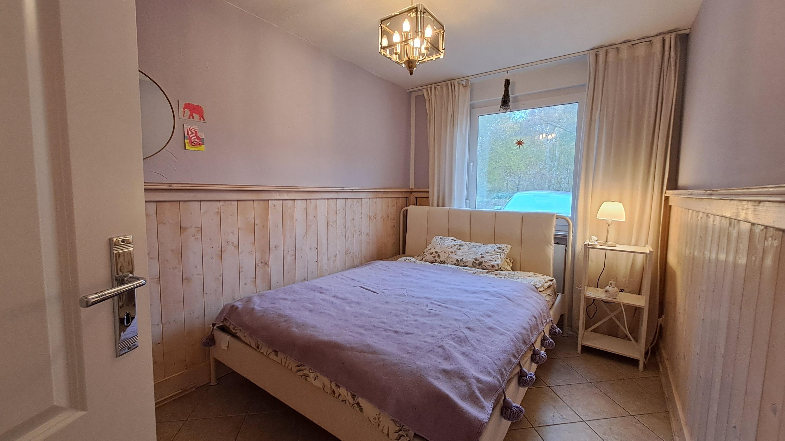 Ihre gemütliche Ferienwohnung liegt im Erdgeschoss eines Mehrparteienhauses. Über einen separaten Eingang mit kleiner Stufe gelangen Sie in den Wohnbereich. Im Eingangsbereich beherbergt großer Schrank Reinigungsmittel und einen Staubsauger. Fachwerk grenzt den Eingangs- vom Wohnbereich ab.