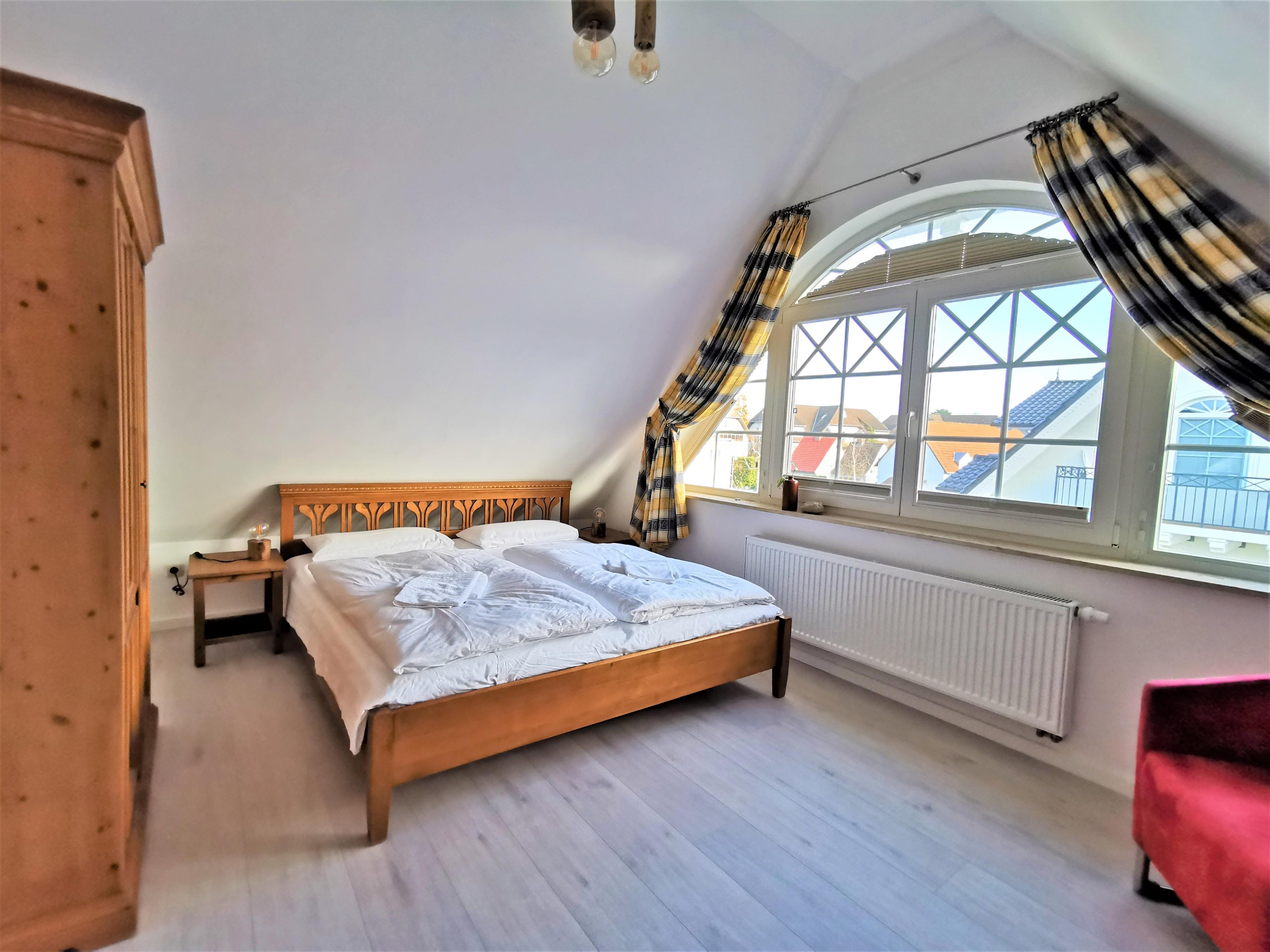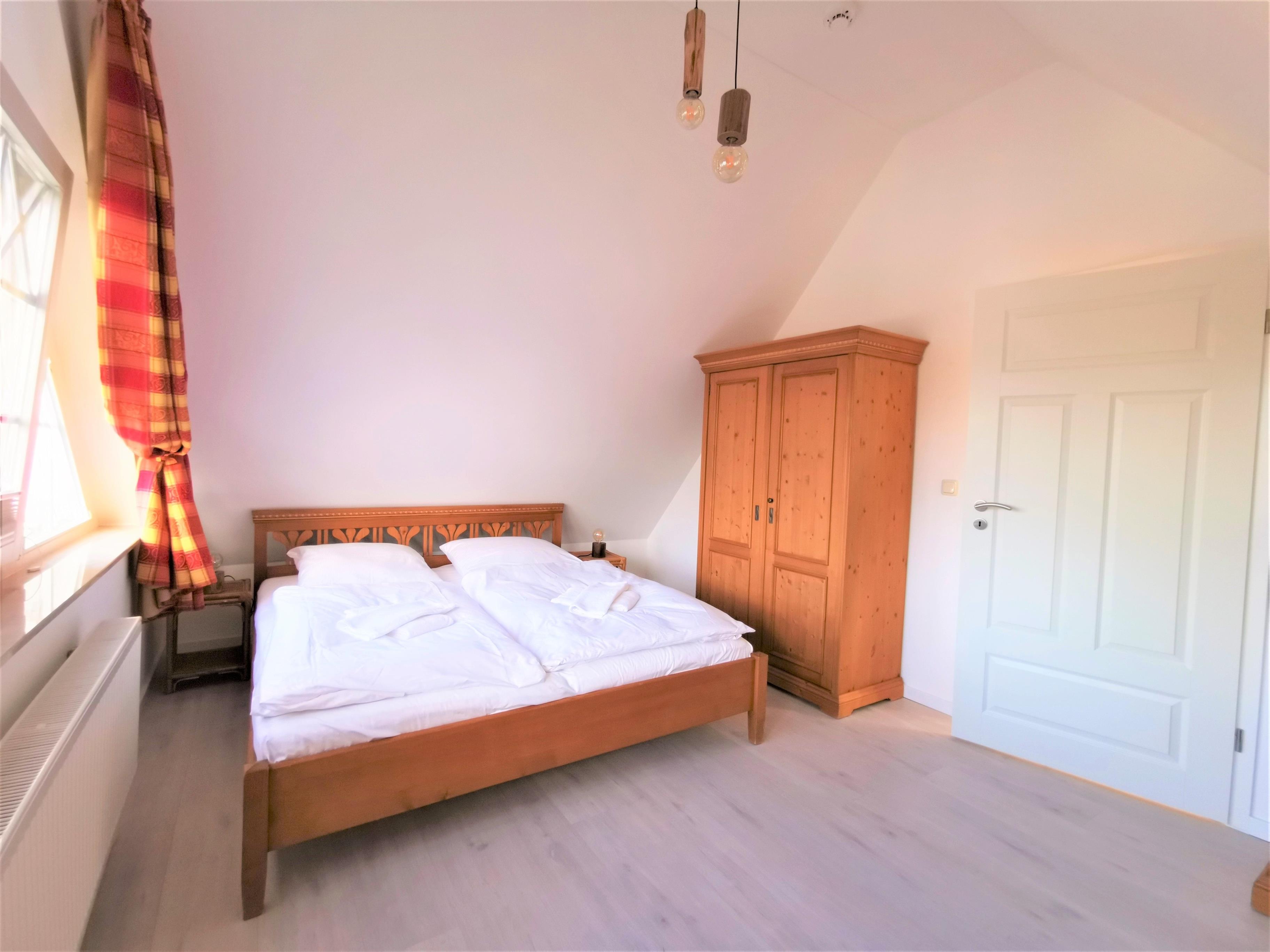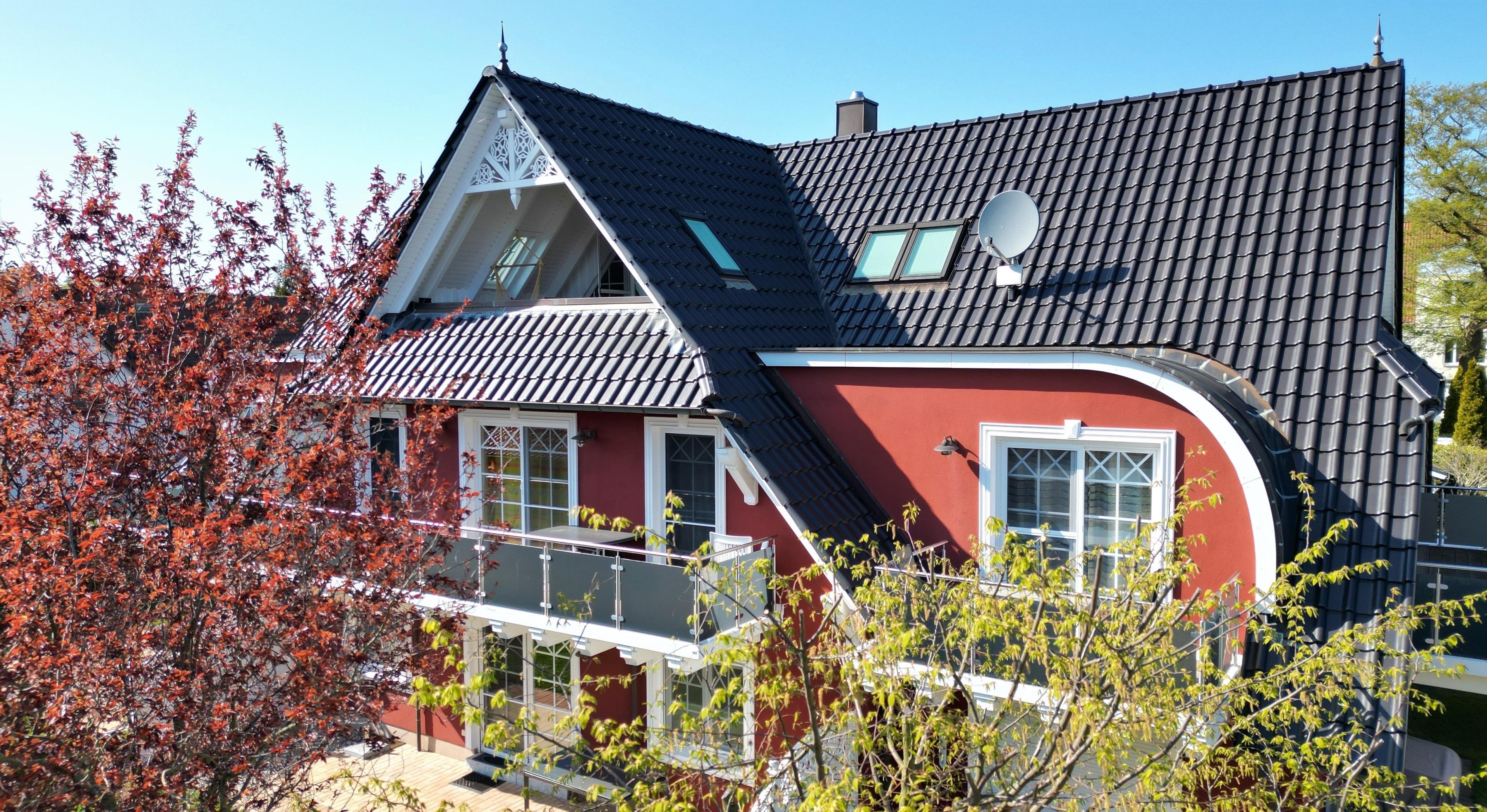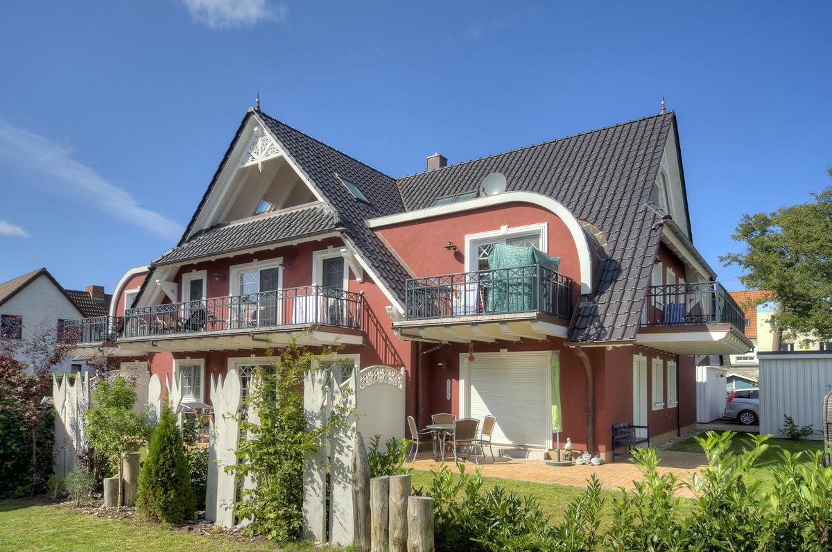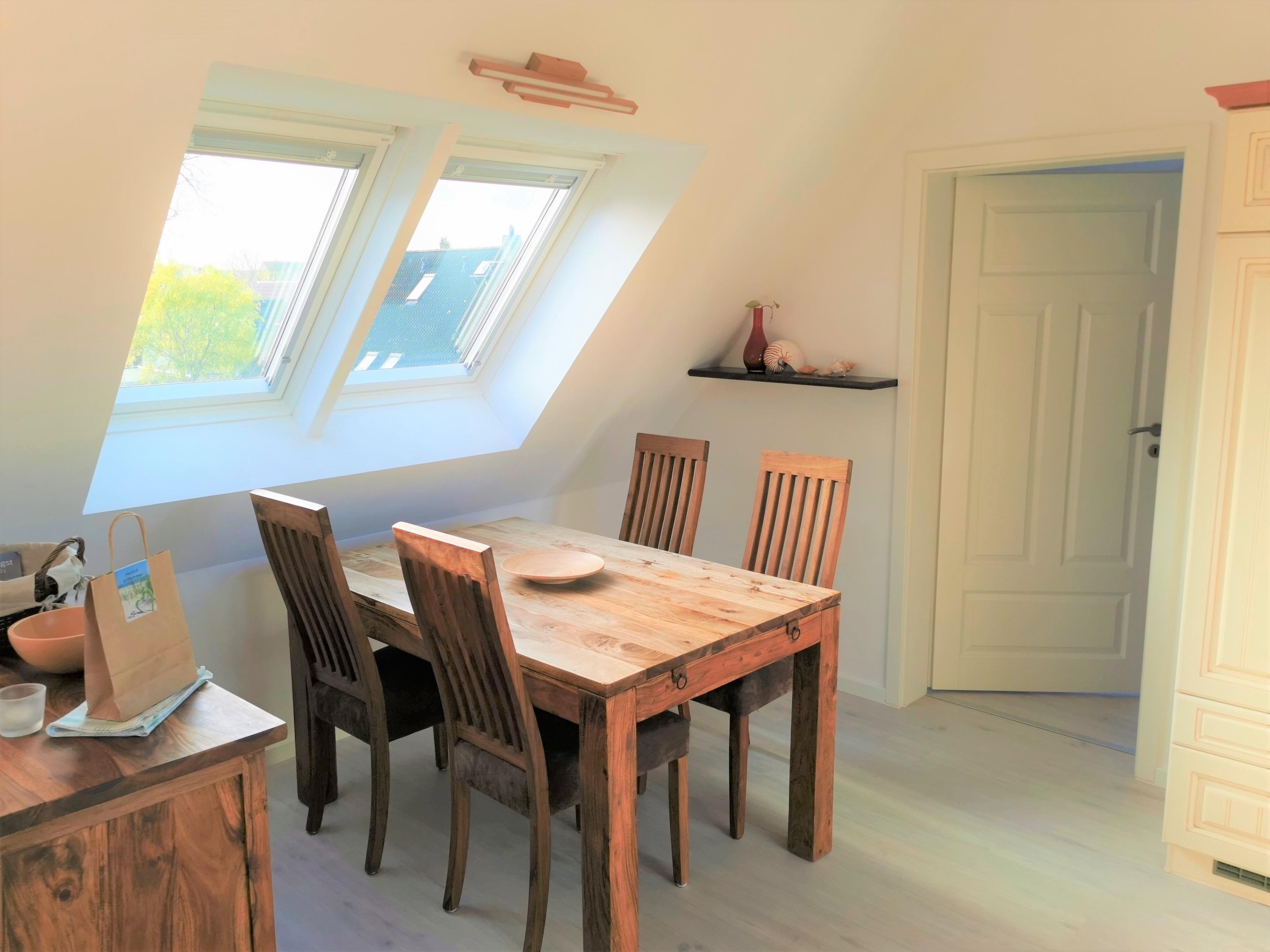 Gemütliche, helle und hochwertig eingerichtete Ferienwohnung (70 qm, Dachgeschoss) in einem Haus im Darsser Stil mit 7 Wohneinheiten, Bj. 2009, in Strandnähe (150 m).