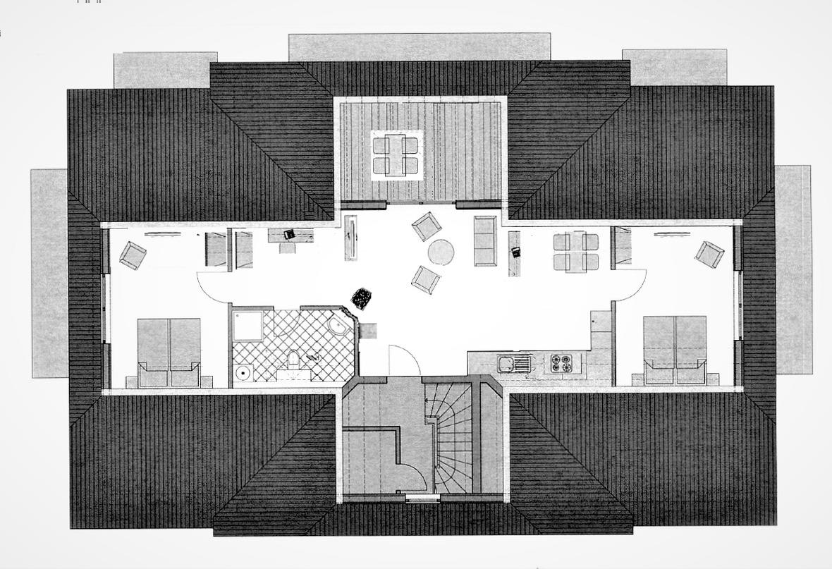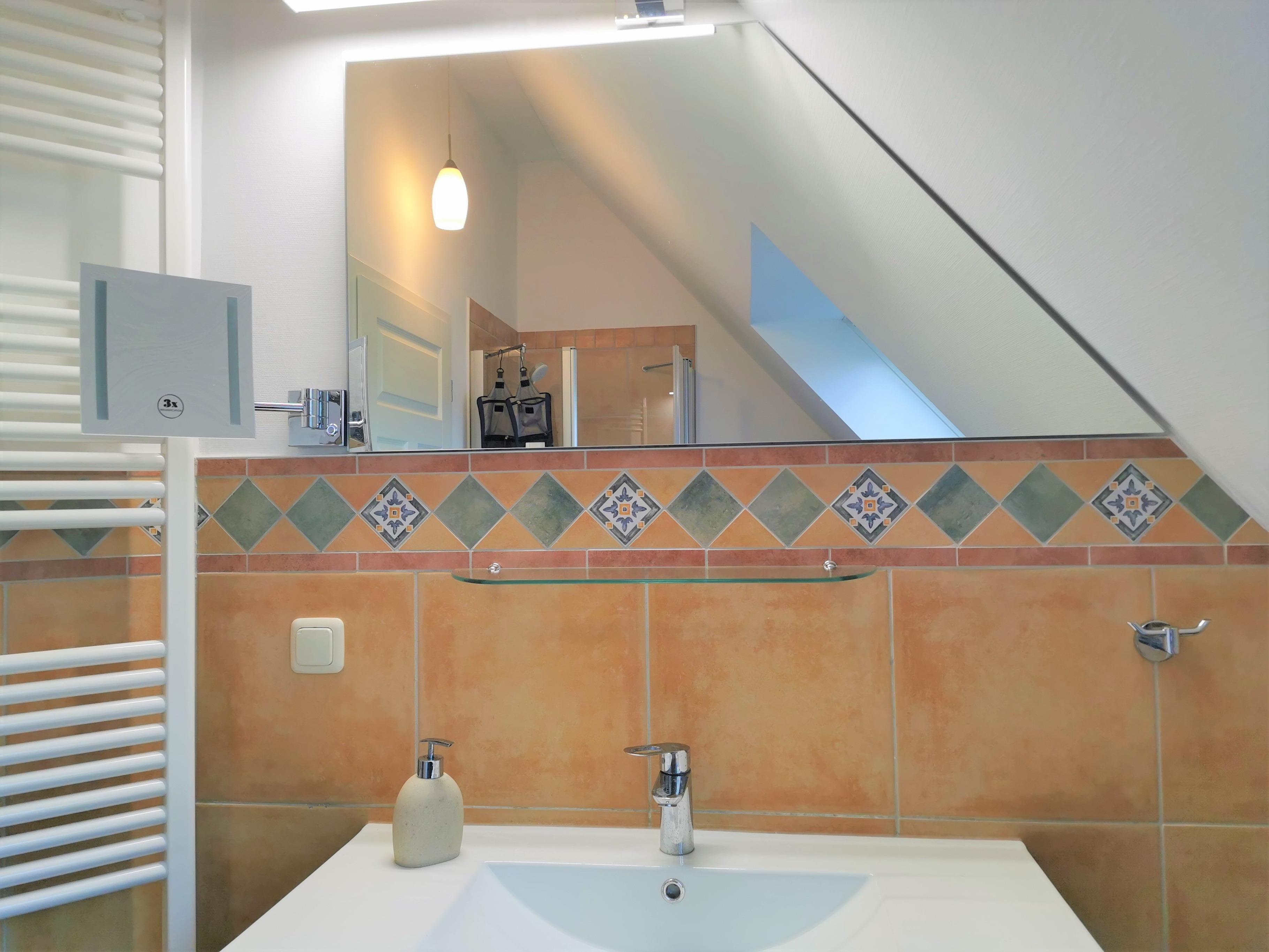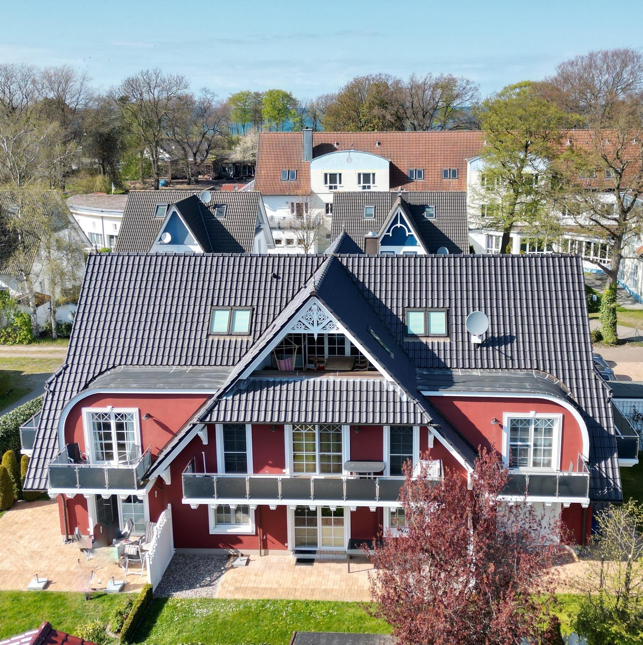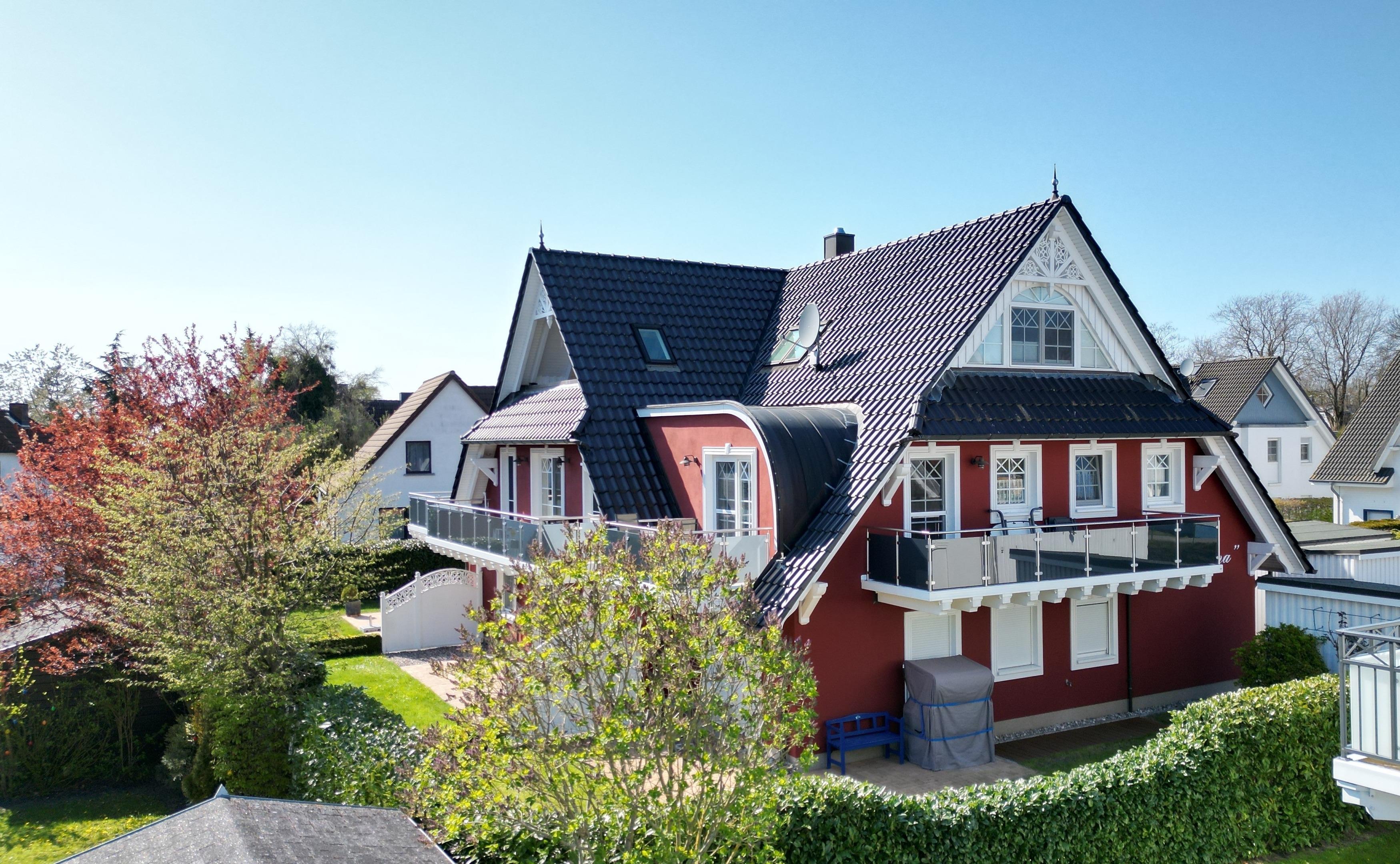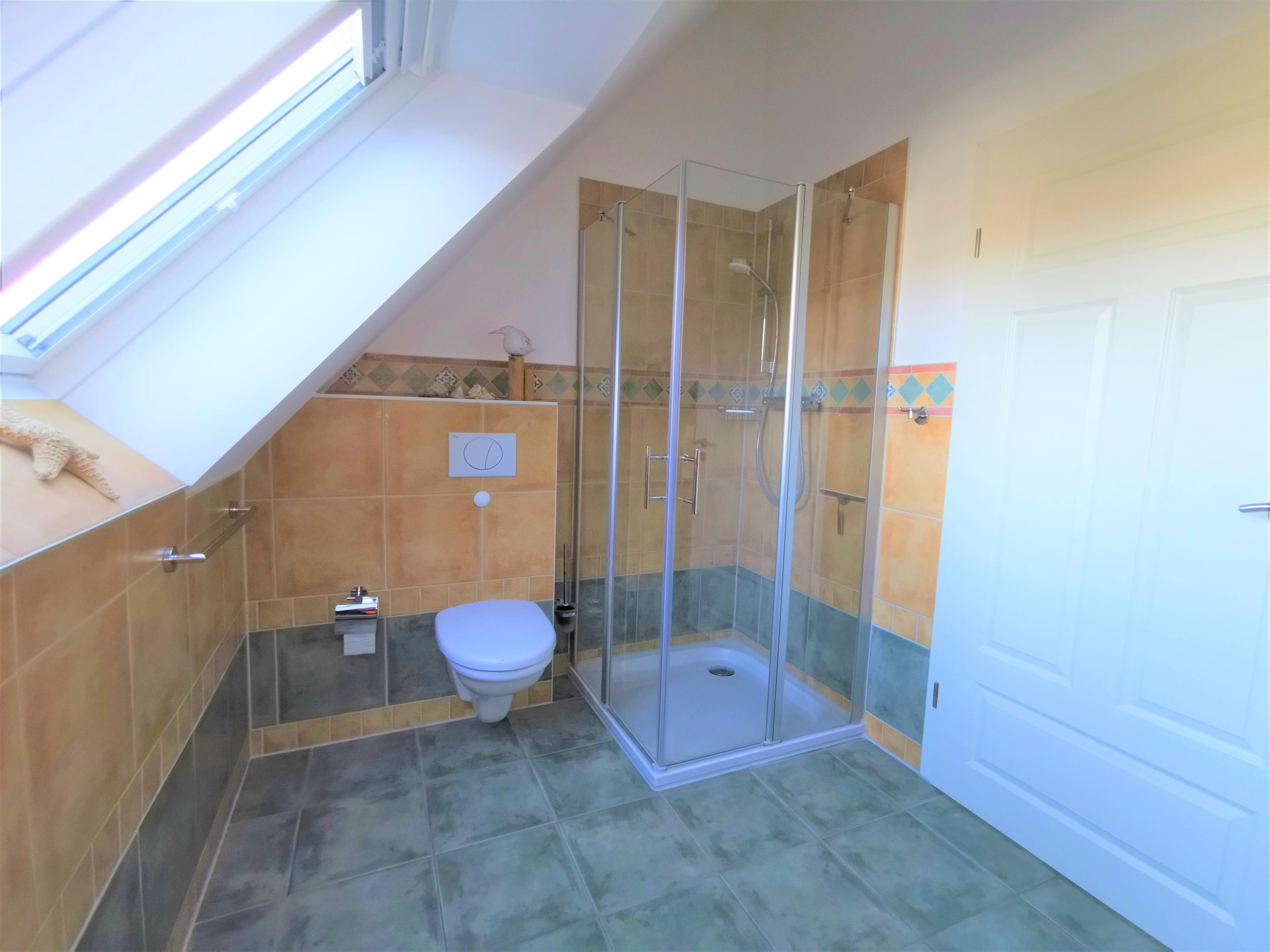 Gemütliche, helle und hochwertig eingerichtete Ferienwohnung (70 qm, Dachgeschoss) in einem Haus im Darsser Stil mit 7 Wohneinheiten, Bj. 2009, in Strandnähe (150 m).
