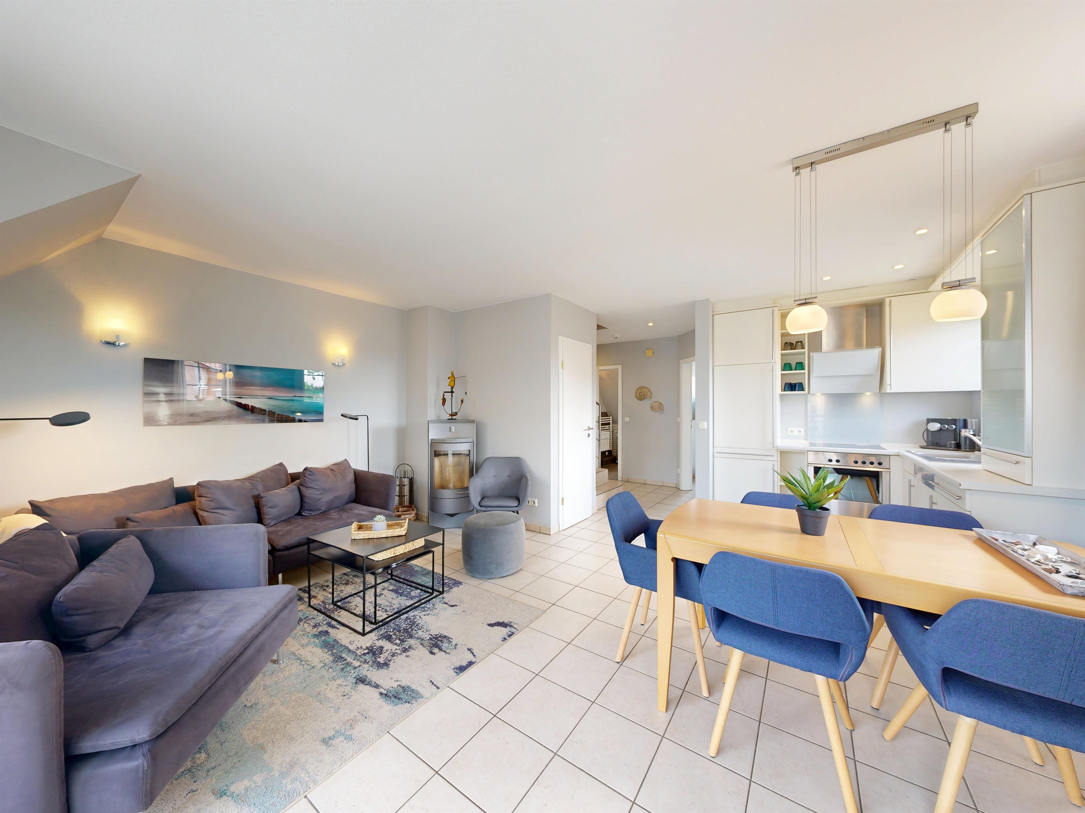 Exklusiv eingerichtete Ferienwohnung über 2 Etagen (60 qm) für 4 Personen. Die Wohnung verfügt über 1 Wohn-Essraum mit anschließendem Südwest Balkon und hochwertiger Küchenzeile (Inkl. Geschirrspüler, Nespresso Maschine)