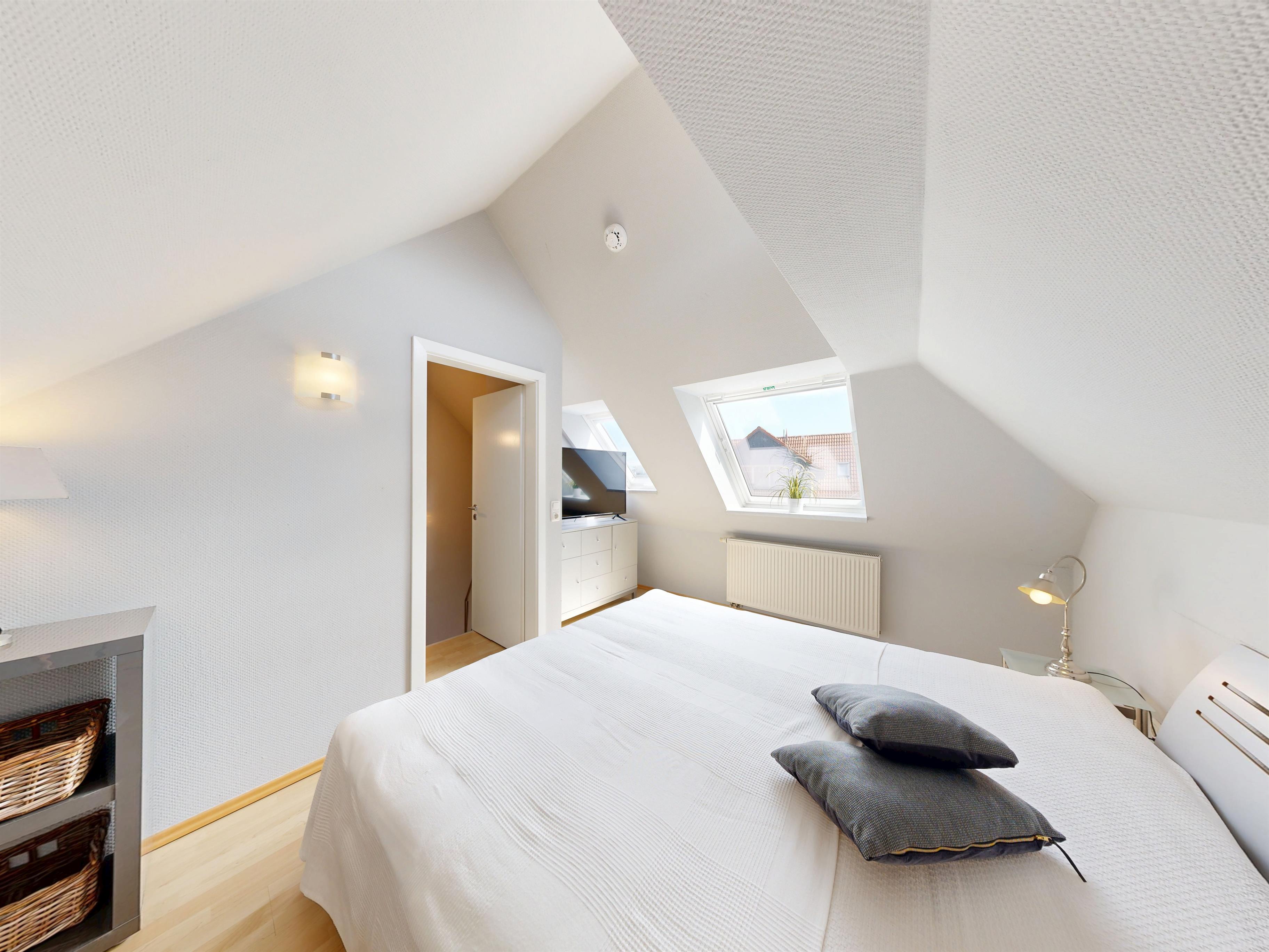 1 Schlafzimmer mit Doppelbett (1,80 x 2,00) im Obergeschoss