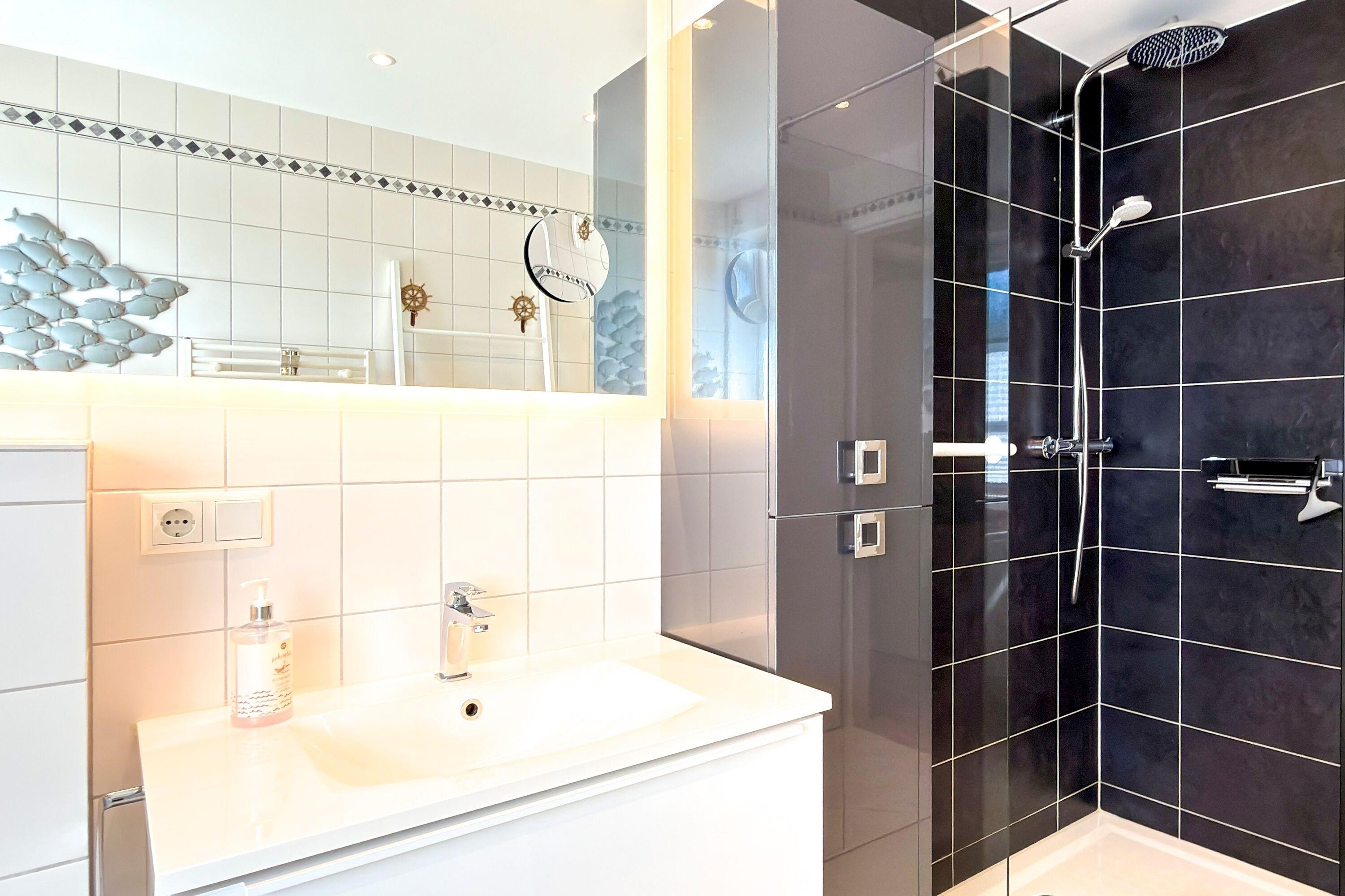 Die private Sauna in der Wohnung sorgt für pure Entspannung. Auf der Terrasse mit Strandkorb, Sonnenschirm und Elektrogrill können Sie die frische Ostseeluft genießen. Der umzäunte Garten bietet zusätzliche Privatsphäre und Ruhe. Die Wohnung ist ebenerdig und somit ideal für Gäste, die Komfort ohne Treppensteigen schätzen.