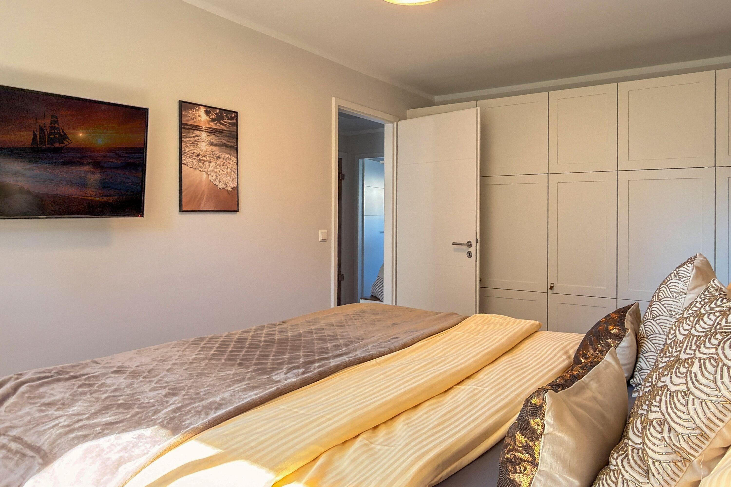 Die Ferienwohnung empfängt Sie mit einer harmonischen und einladenden Atmosphäre. Das Schlafzimmer mit luxuriösem Boxspringbett garantiert erholsamen Schlaf. Die voll ausgestattete Küche mit Weinkühlschrank und Kaffeevollautomat lässt keine Wünsche offen – ideal für Weinliebhaber und Kaffeegenießer. Der offene Wohn- und Essbereich mit gemütlicher Couch, Smart-TV und Soundbar bietet den perfekten Rahmen für entspannte Abende.