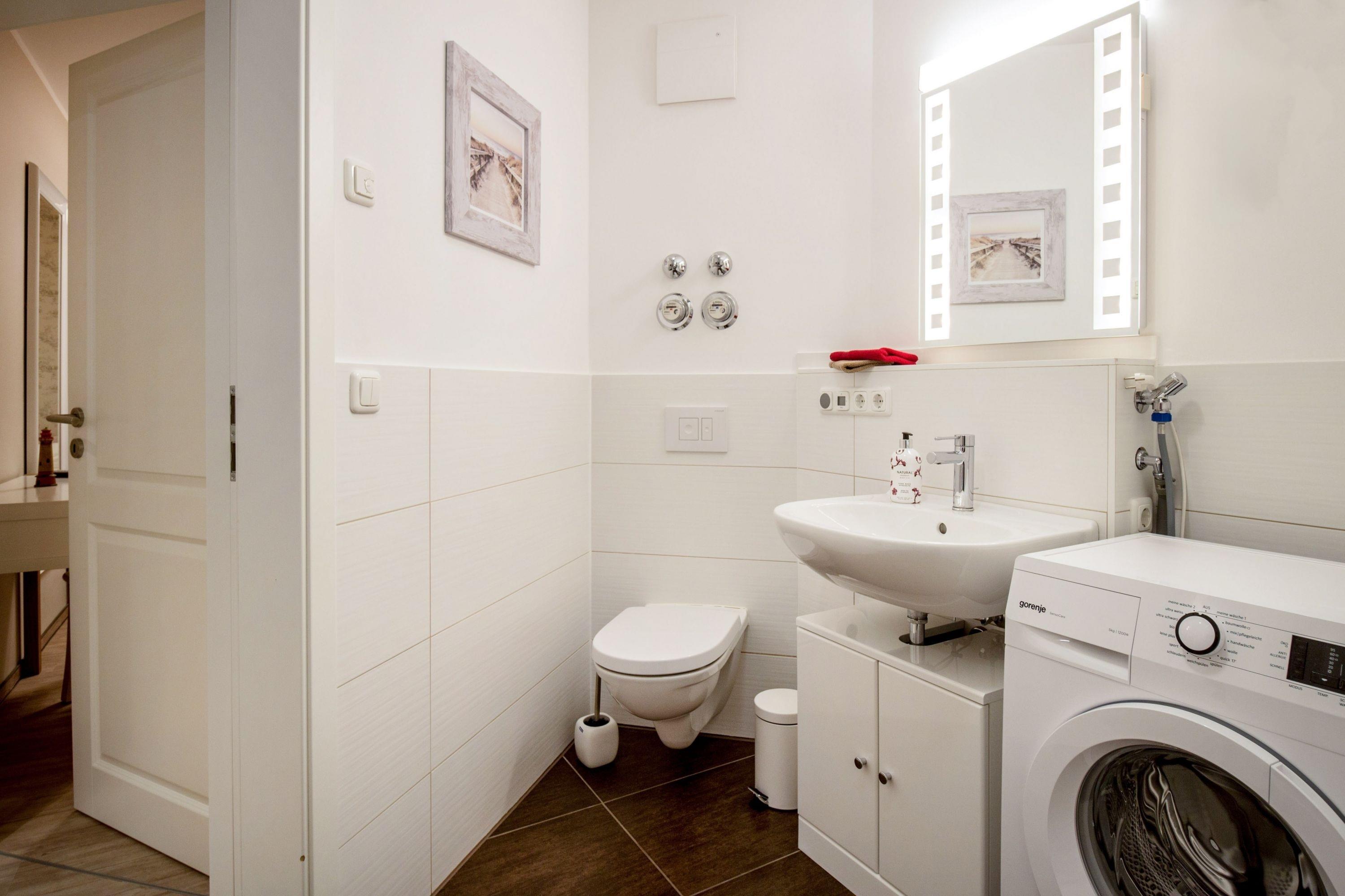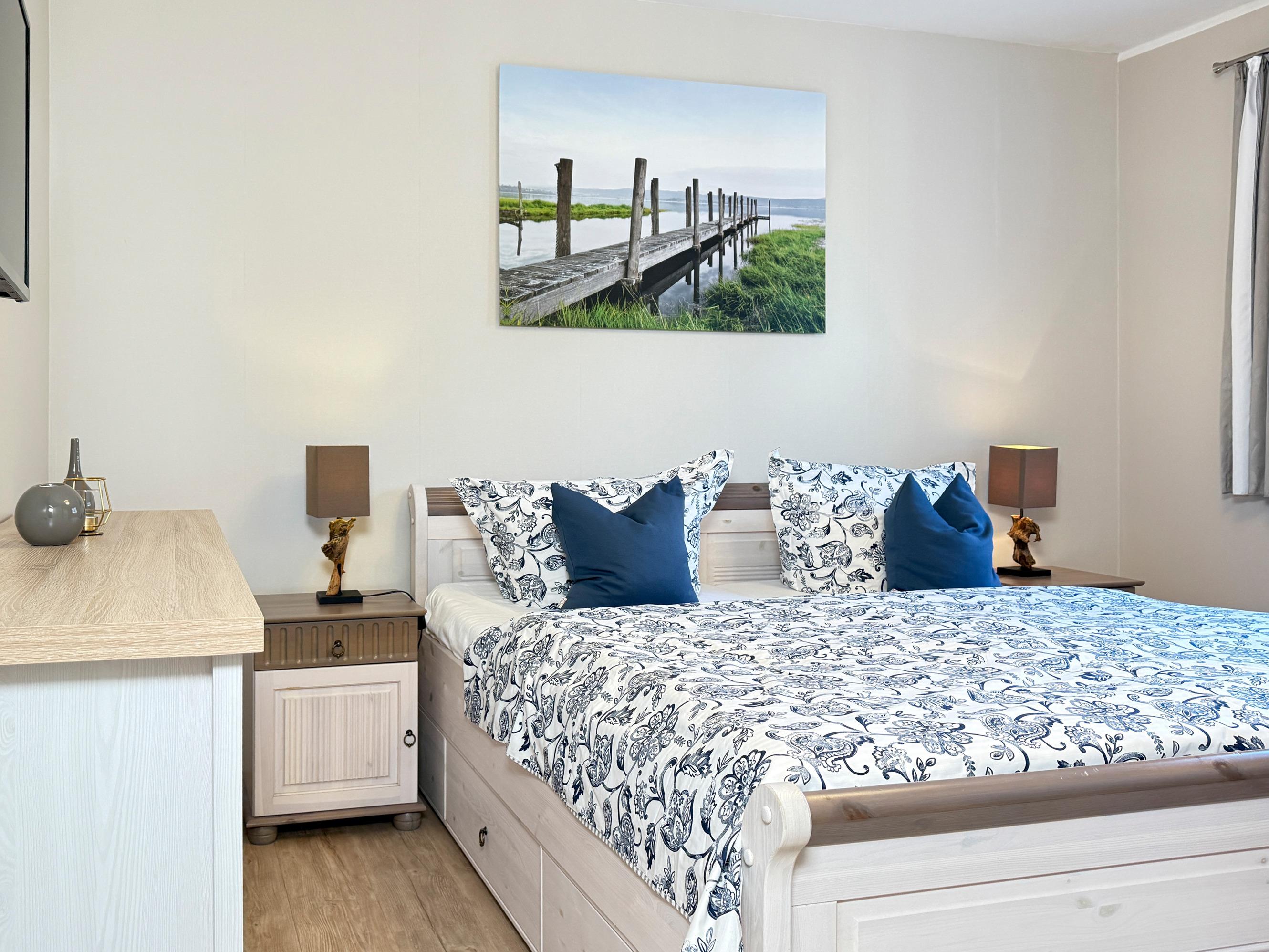 Ein separater Eingang führt Sie in die liebevoll eingerichtete Ferienwohnung, die modernen Wohnkomfort mit dem maritimen Charme von Zingst vereint. Helle Räume, sanfte Farben und hochwertige Materialien schaffen eine Atmosphäre, in der Sie sich sofort wohlfühlen. Die beiden Schlafzimmer bieten ausreichend Platz und Ruhe für erholsame Nächte, während das elegante Badezimmer mit Regendusche und Fußbodenheizung für angenehmen Komfort sorgt – auch an kühleren Tagen.