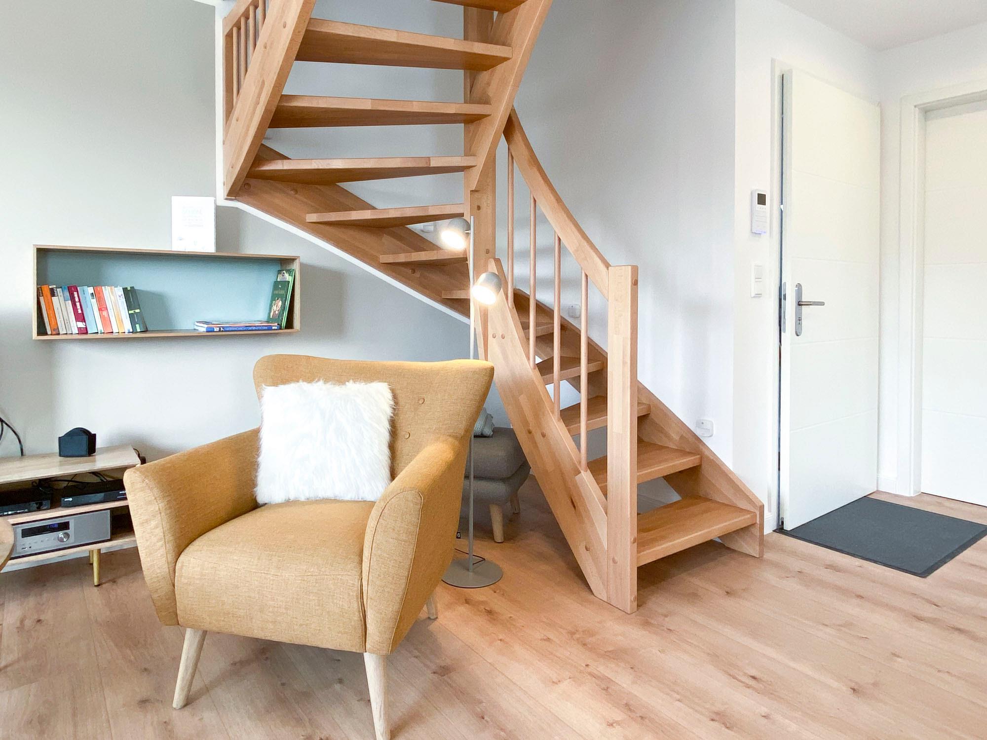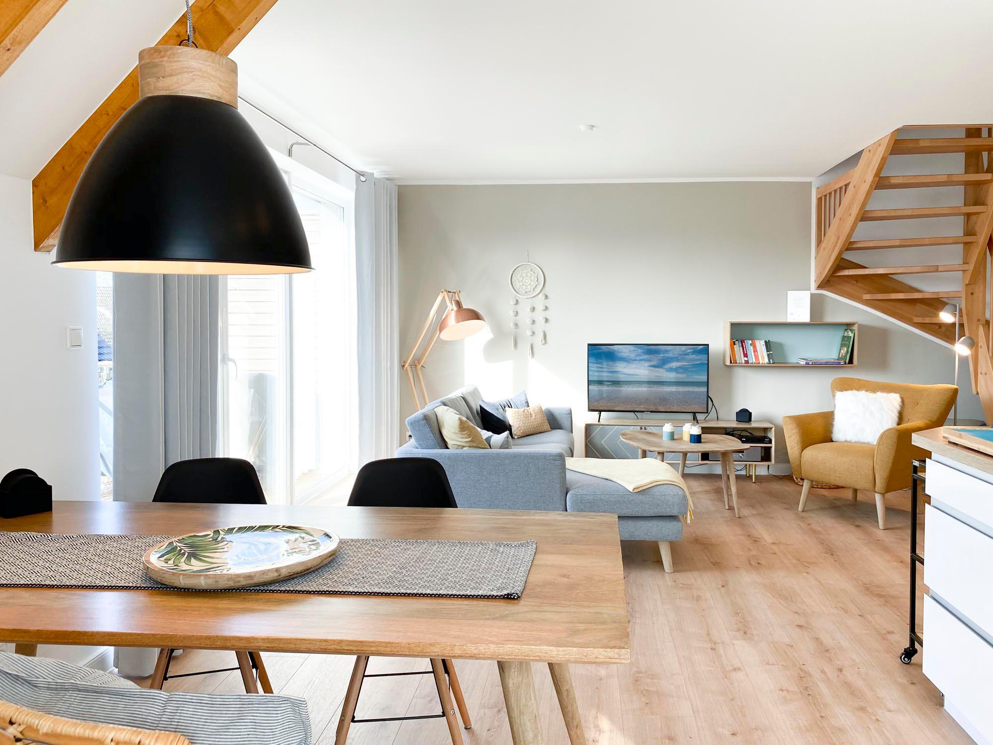 Das Beach Loft vereint modernes Wohnen mit maritimem Charme. Die offene Architektur mit großzügigen Fensterfronten sorgt für ein helles, freundliches Ambiente – ideal, um den Alltag hinter sich zu lassen. Im ersten Obergeschoss befindet sich der weitläufige Wohn- und Essbereich mit einer voll ausgestatteten Küche, die keine Wünsche offenlässt. Hier entstehen kulinarische Lieblingsmomente mit Meerluft in der Nase.
