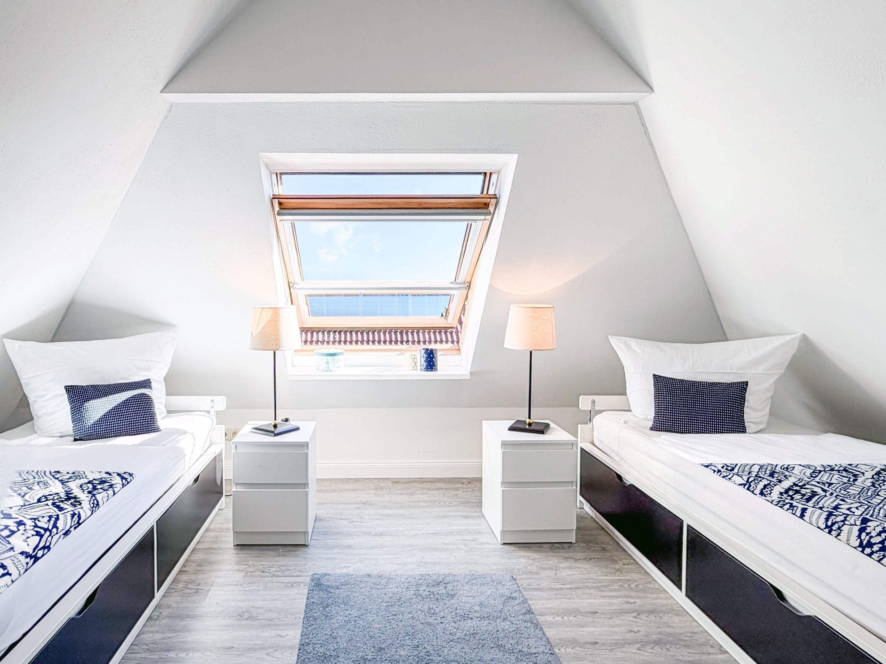 Zwei gemütliche Schlafzimmer: Ein Hauptschlafzimmer mit großem Doppelbett (180 x 200 cm) sowie ein separates Zimmer mit Einzelbett (90 x 200 cm) – perfekt für Kinder oder getrenntes Schlafen.