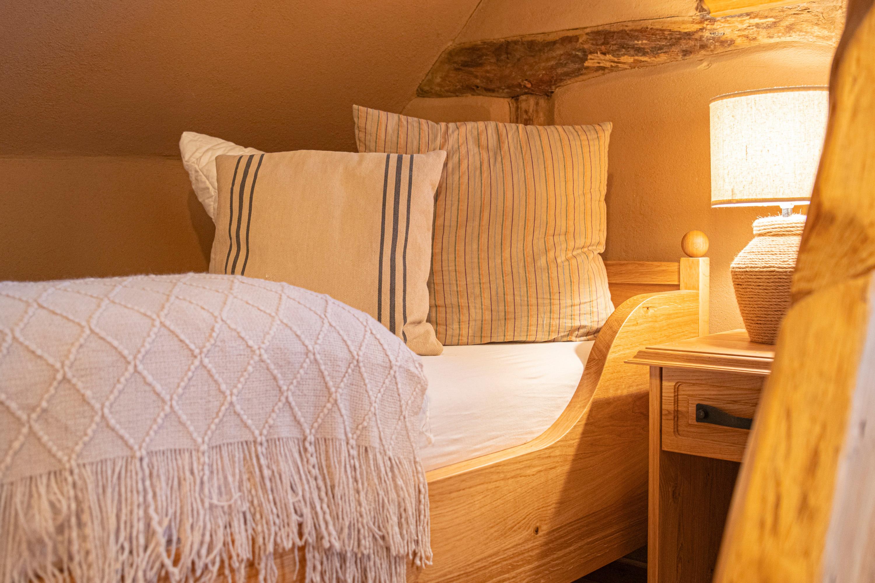Ein Dachgeschoss-Schlafzimmer mit französischem Bett (140 x 200 cm)