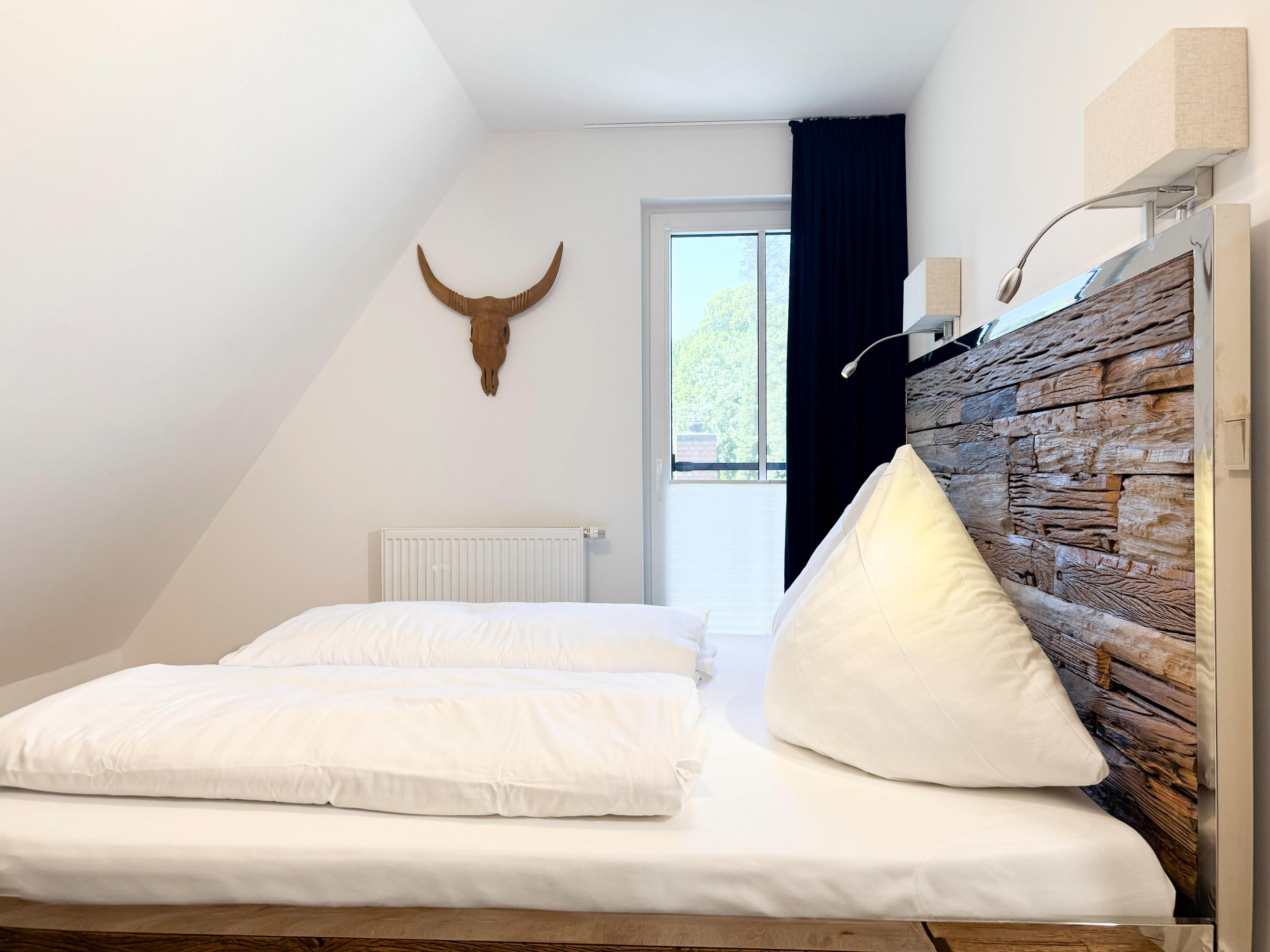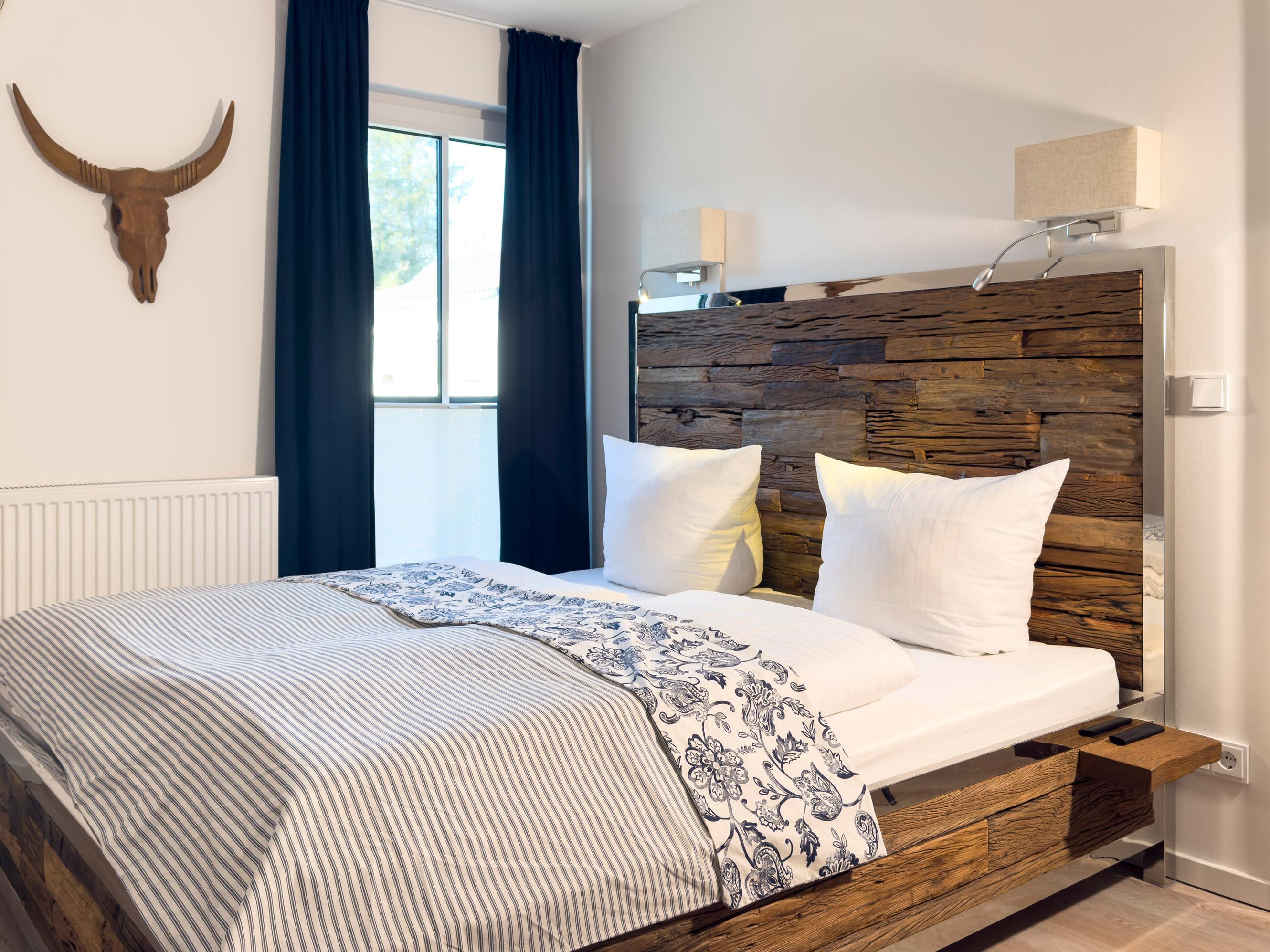 Das komfortable Boxspringbett sorgt am Abend für erholsame Nächte, während draußen der Wind leise durch die Dünen streicht.