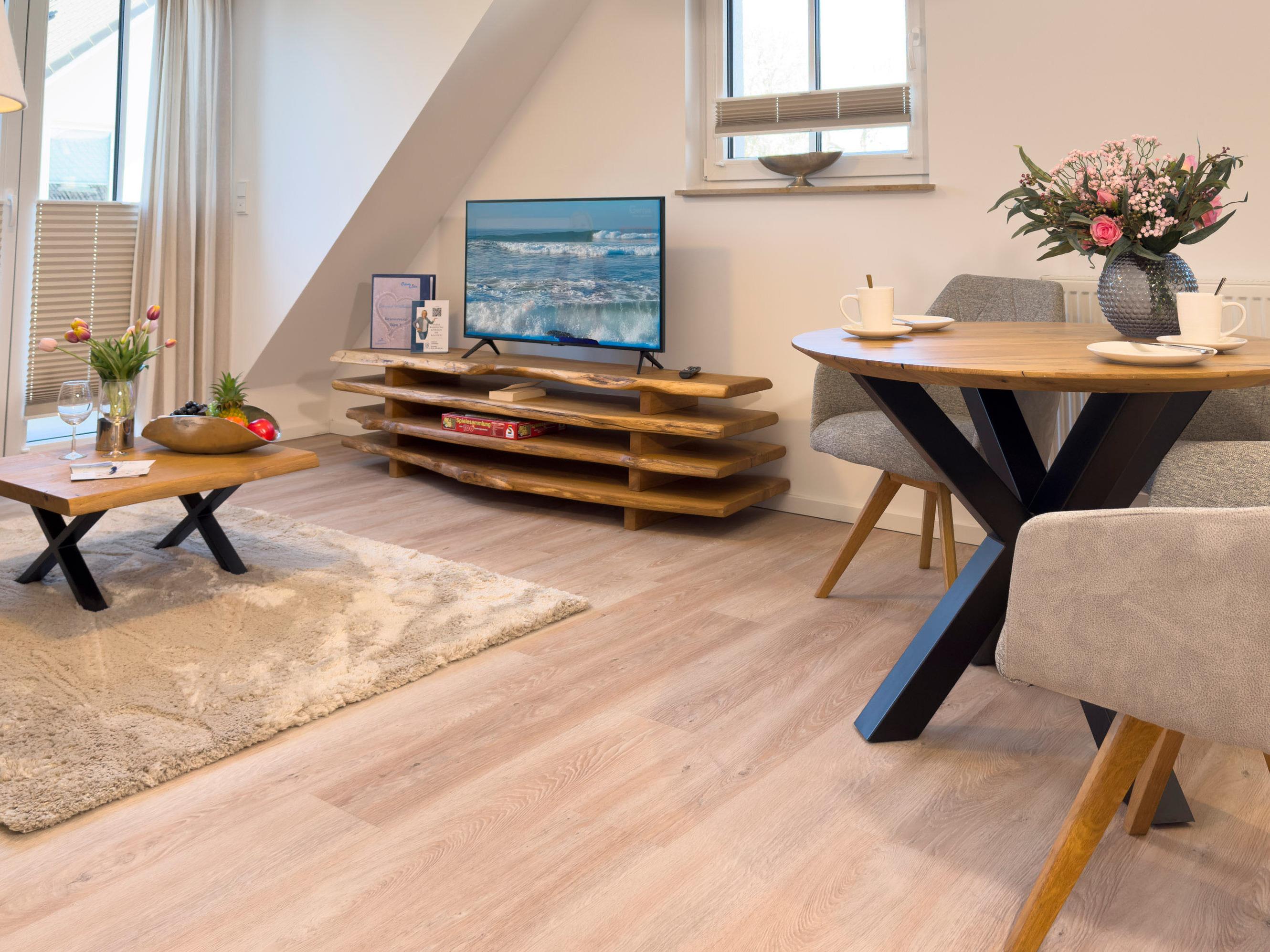 Im ersten Obergeschoss der Anlage Düne 7 erwartet Sie auf 51 m² ein liebevoll gestaltetes Urlaubsdomizil für bis zu 4 Personen – perfekt für Paare oder kleine Familien, die Entspannung, Natur und Nähe zum Meer suchen.