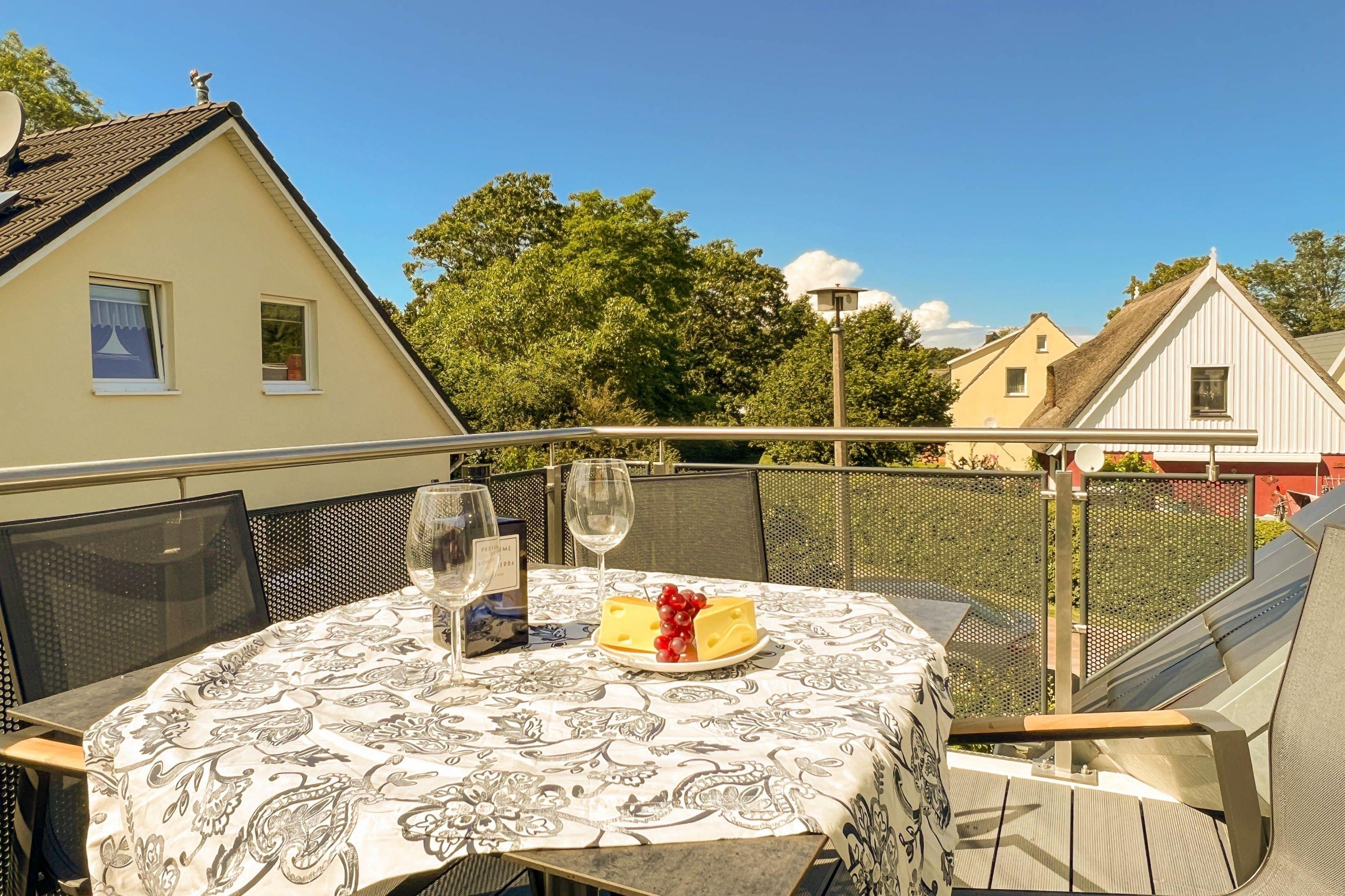 Beginnen Sie den Tag mit einem Frühstück auf dem sonnigen Balkon, während die Meeresbrise sanft über die Dächer weht.