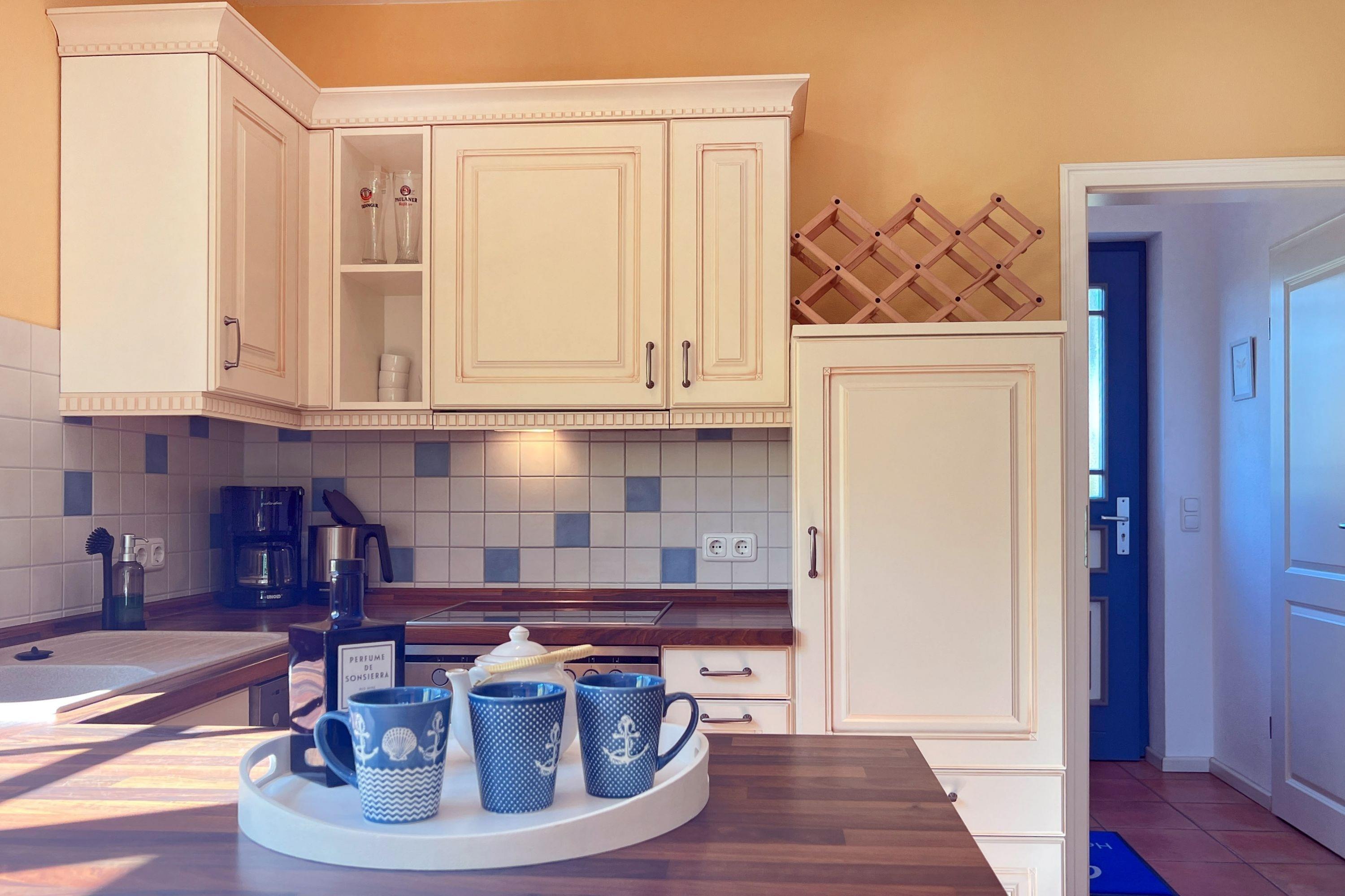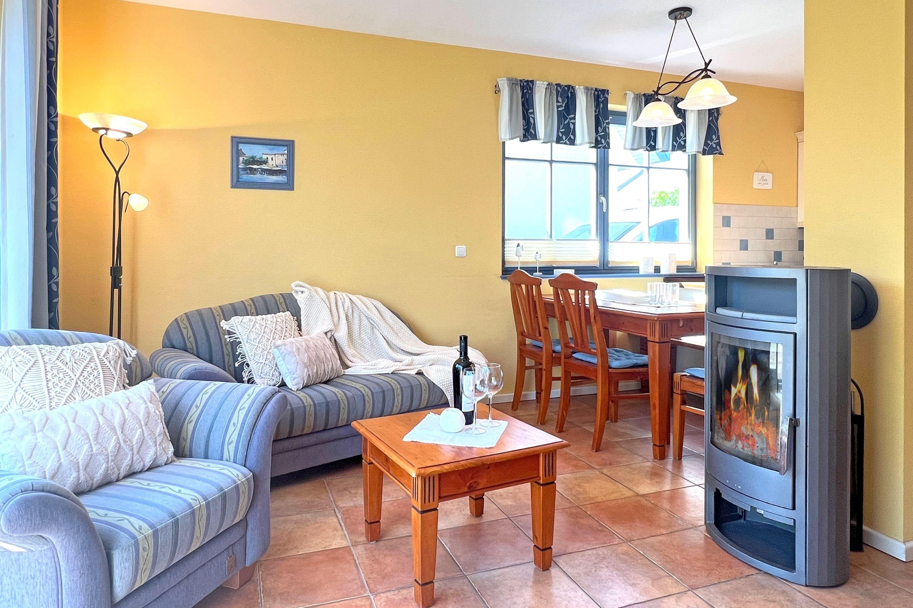 Das Ferienhaus Friederike empfängt Sie mit einer warmen und einladenden Atmosphäre. Der gemütliche Wohnbereich mit Kamin ist der ideale Ort für entspannte Abende – sei es bei einem guten Buch oder einem gemeinsamen Spieleabend. Die voll ausgestattete Küchenzeile ermöglicht es Ihnen, mühelos köstliche Mahlzeiten für Ihre Liebsten zuzubereiten.