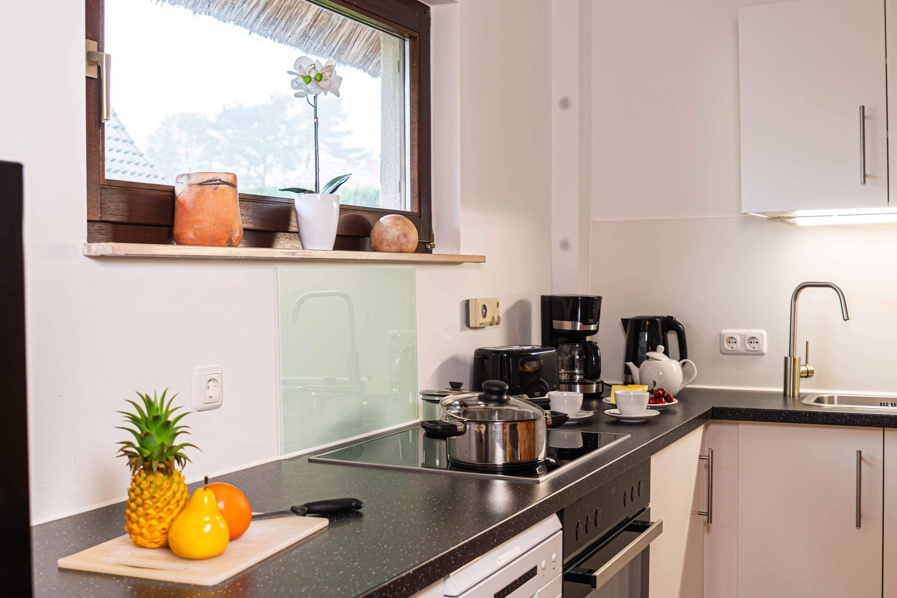 Voll ausgestattete Küche mit Geschirrspüler und allen notwendigen Geräten