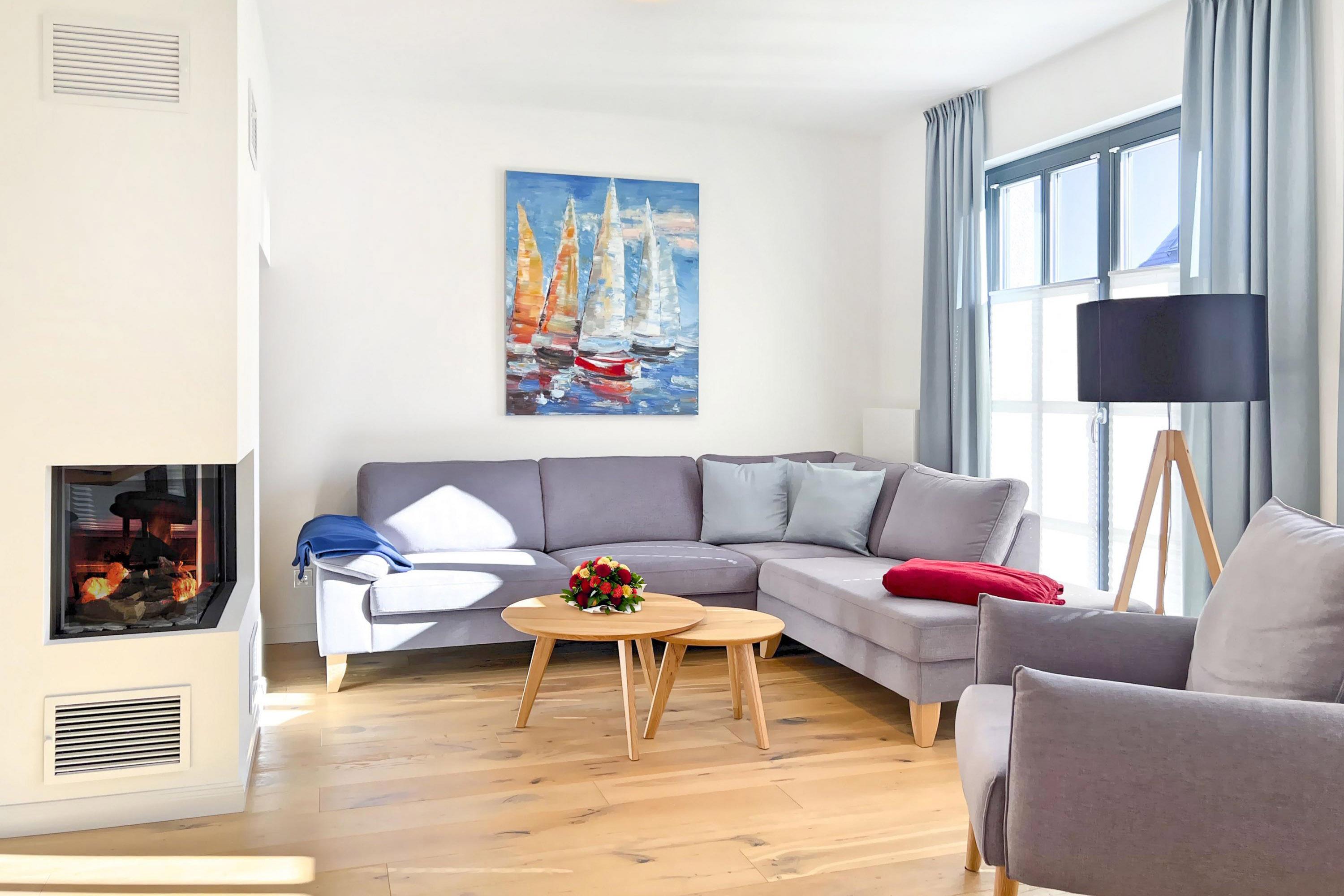 Gemütlicher Wohnbereich mit Gaskamin und bequemen Sofas