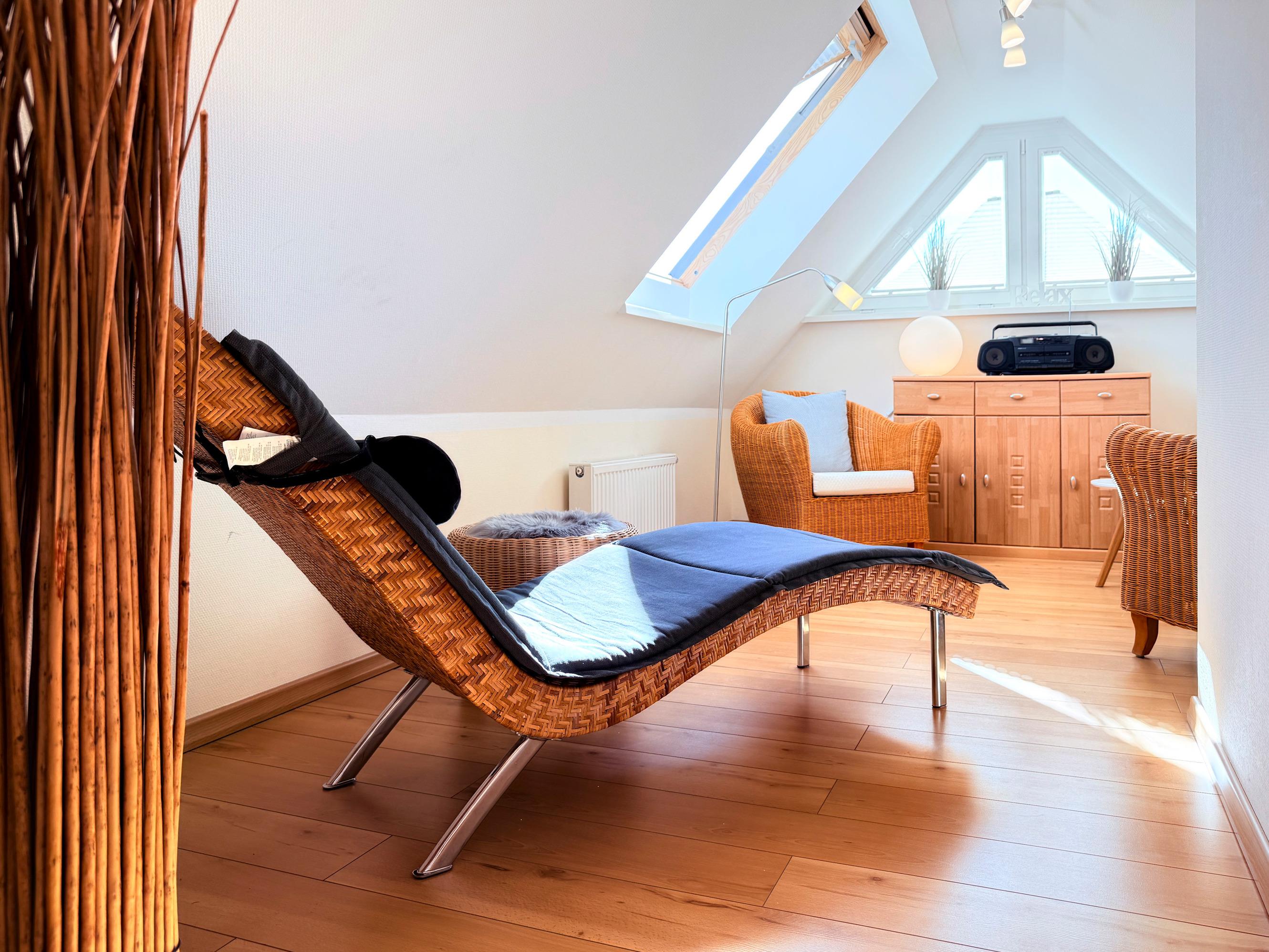 Südwest-Terrasse mit Strandkorb (Mai–Oktober) und Grill