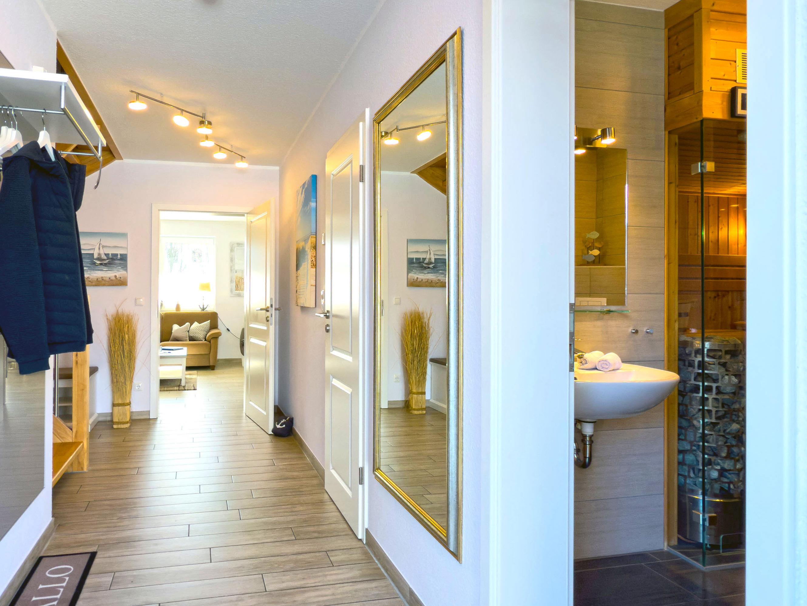 Nach einem erlebnisreichen Tag an der frischen Ostseeluft lädt die private Sauna mit großer Vollglastür zum Entspannen ein und bietet die perfekte Möglichkeit, müde Muskeln zu lockern und zur Ruhe zu kommen. Starten Sie den Tag auf der sonnigen Südterrasse mit einem gemütlichen Frühstück oder genießen Sie abends die letzten Sonnenstrahlen im Garten. Die Spielfläche für Kinder und der eigene Strandkorb bieten zusätzlichen Komfort für entspannte Stunden im Freien.