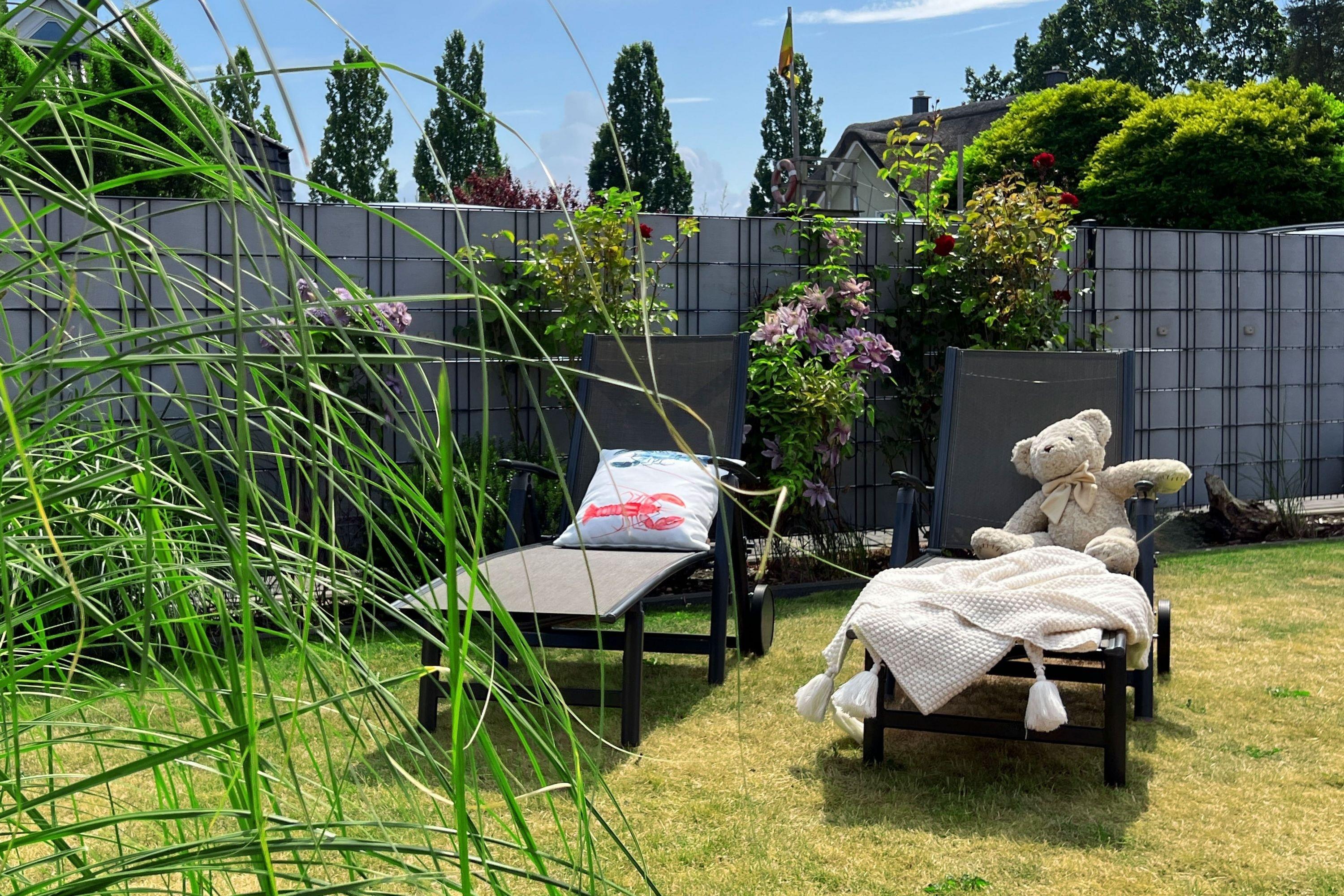 Ferienhaus Kleiner Seehund - umzäunter Garten mit Terrasse und Strandkorb