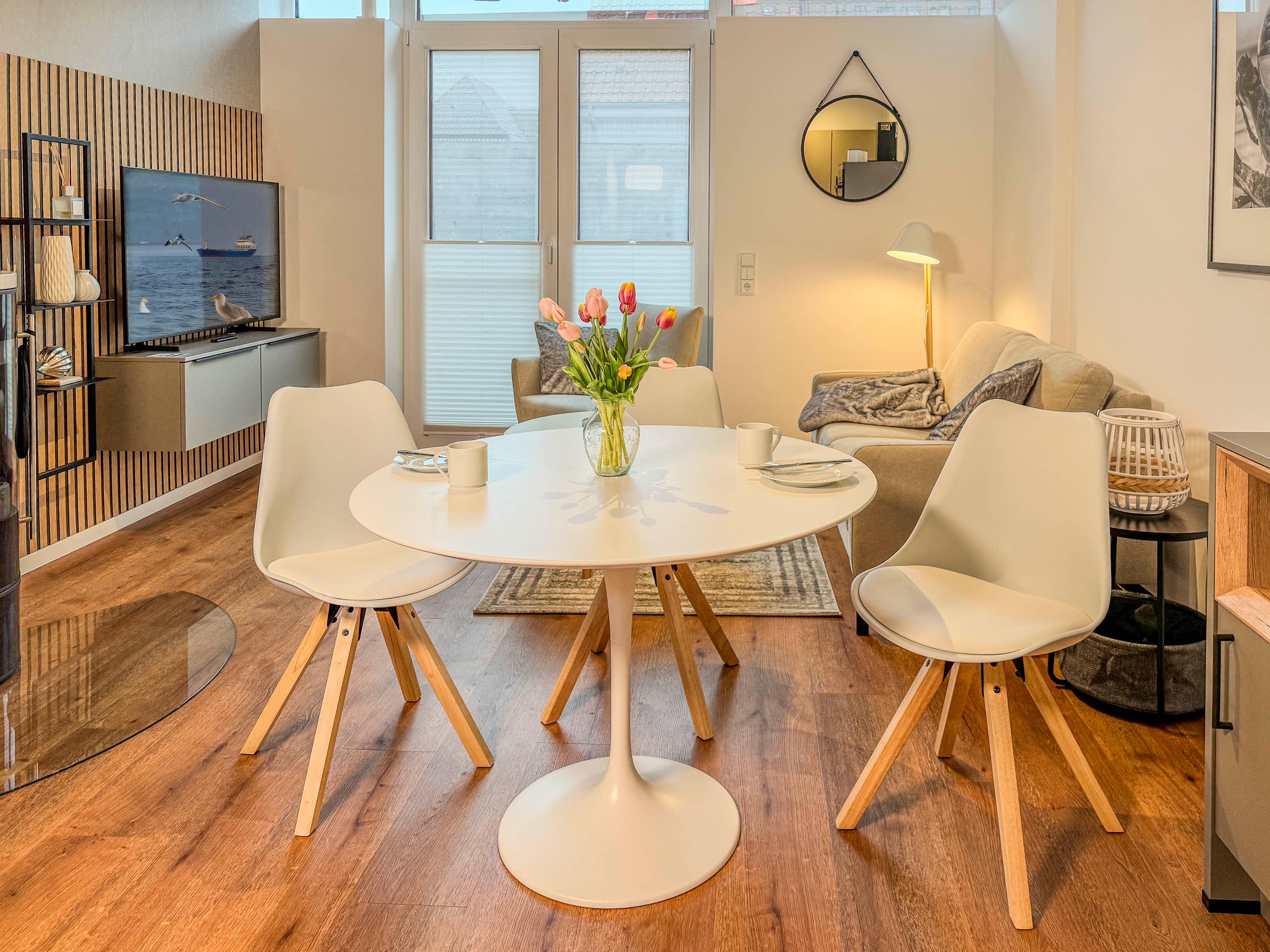 Dieses moderne und gemütliche Domizil bietet auf ca. 60 m² Platz für bis zu drei Personen und ist somit ideal für Paare oder kleine Familien, die einen erholsamen Urlaub an der Ostsee verbringen möchten.