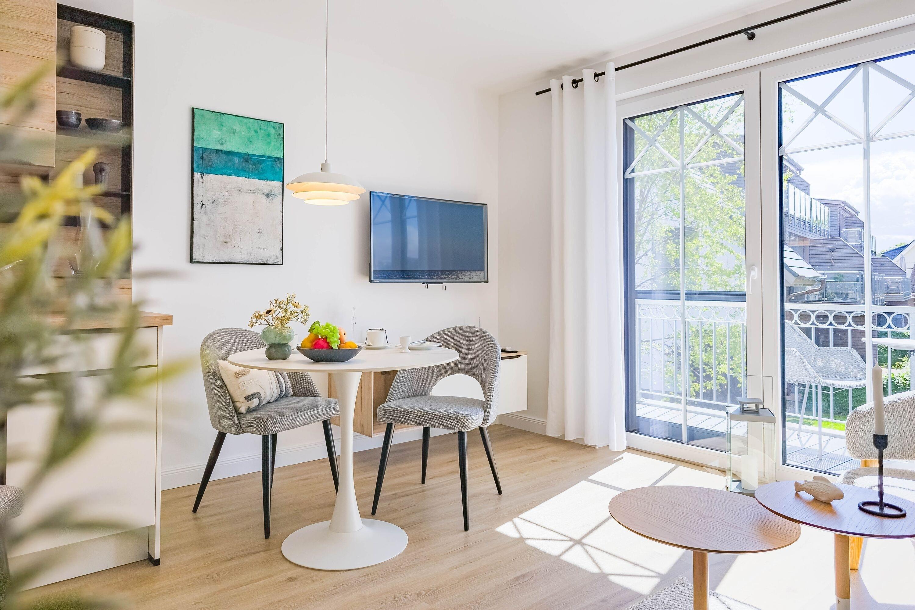 Auf 46 m² verbindet die Wohnung stilvolle Klarheit mit einer warmen Wohlfühlatmosphäre. Ideal für Paare, Genießer und Ostseeliebhaber, die Ruhe, Komfort und eine Prise Luxus suchen.