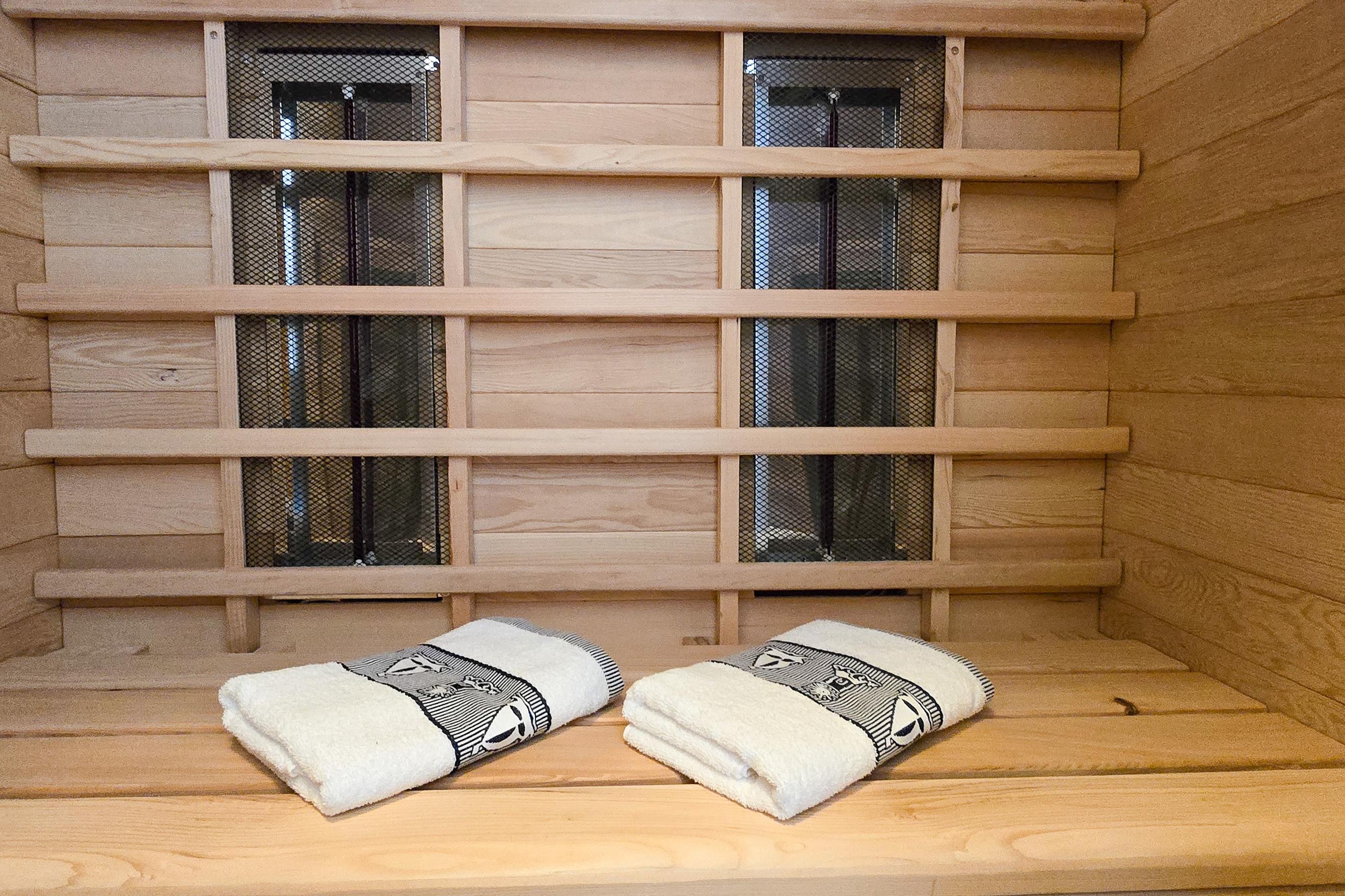 Das moderne Bad, die private Infrarot-Sauna und das komfortable Schlafzimmer sorgen für Ruhe, Entspannung und Wohlgefühl – den ganzen Tag über.