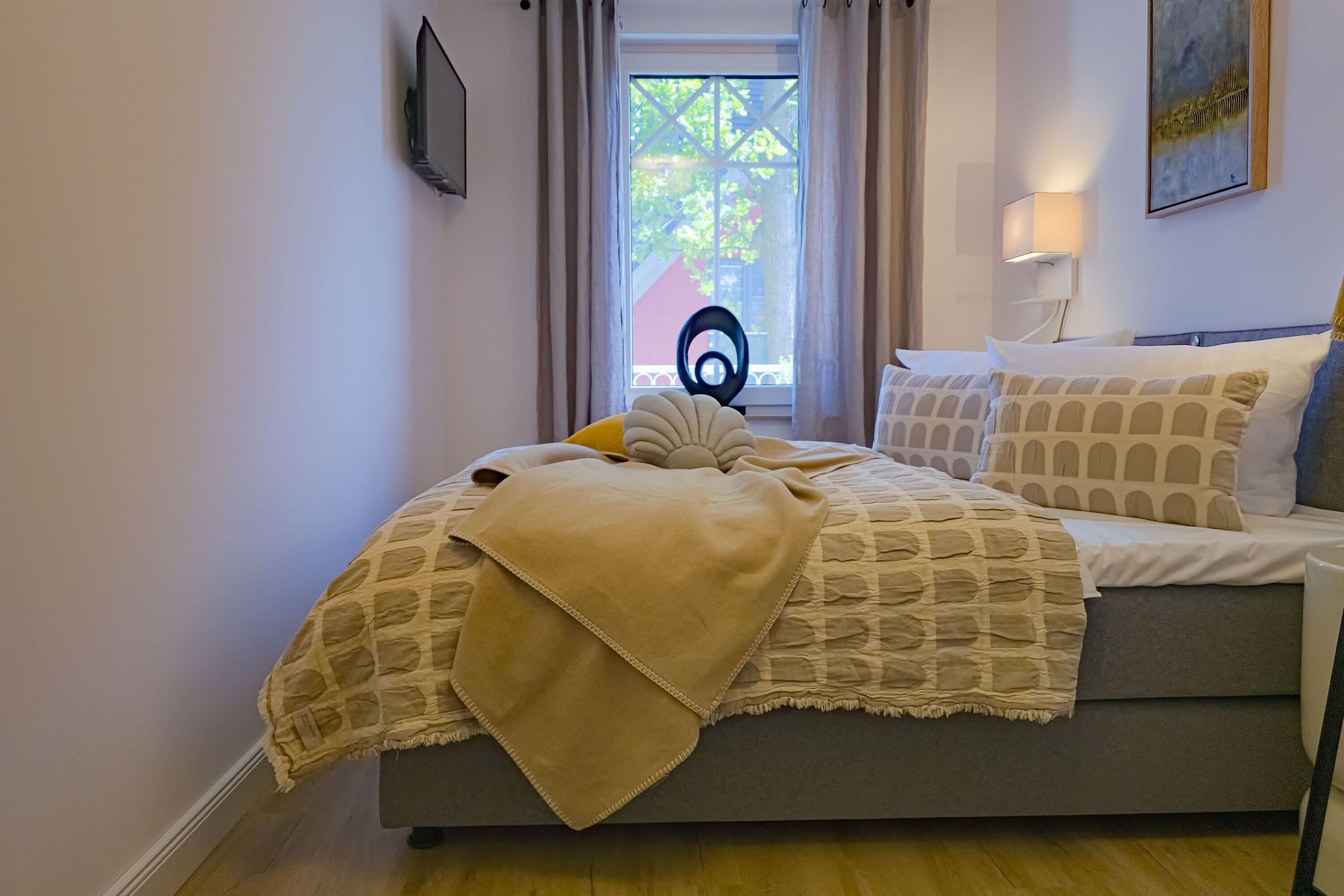 Gemütliches Schlafzimmer mit Boxspringbett (160 × 190 cm) [&] eigenem TV