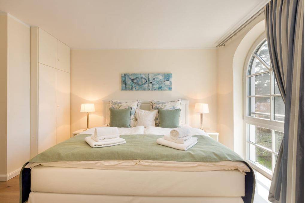 Zwei geschmackvoll eingerichtete Schlafzimmer : Mit komfortablen Doppelbetten im Obergeschoss