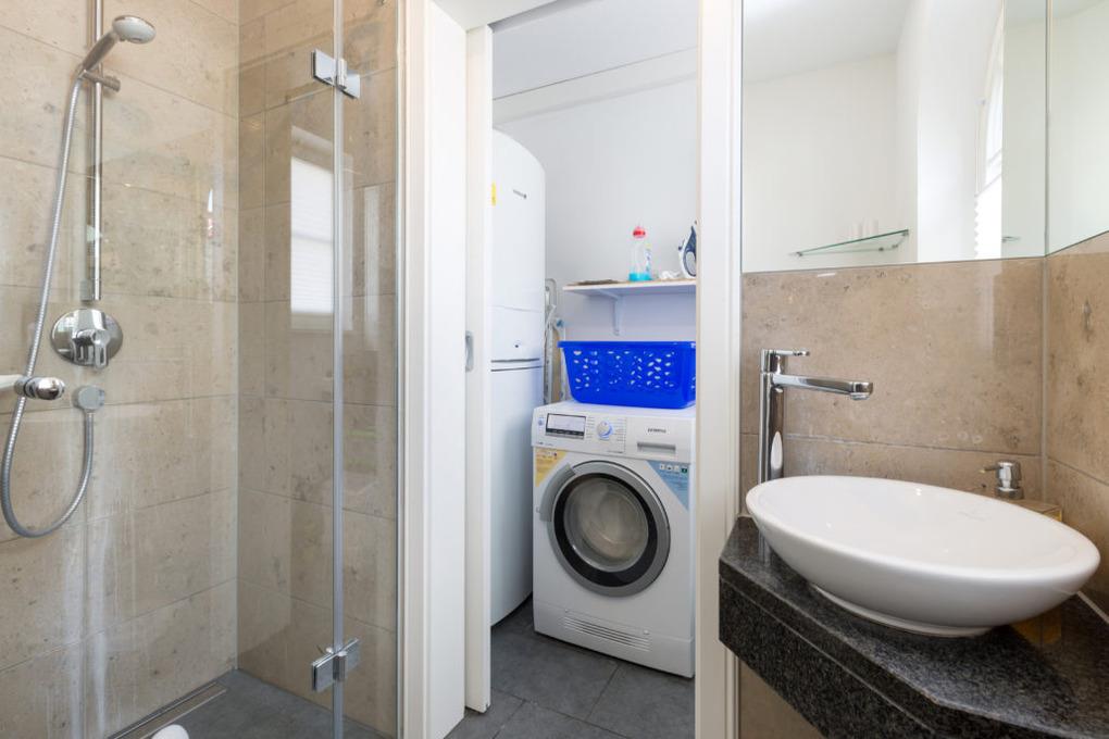 Zwei Badezimmer : Eines mit Dusche und Waschtrockner im Erdgeschoss