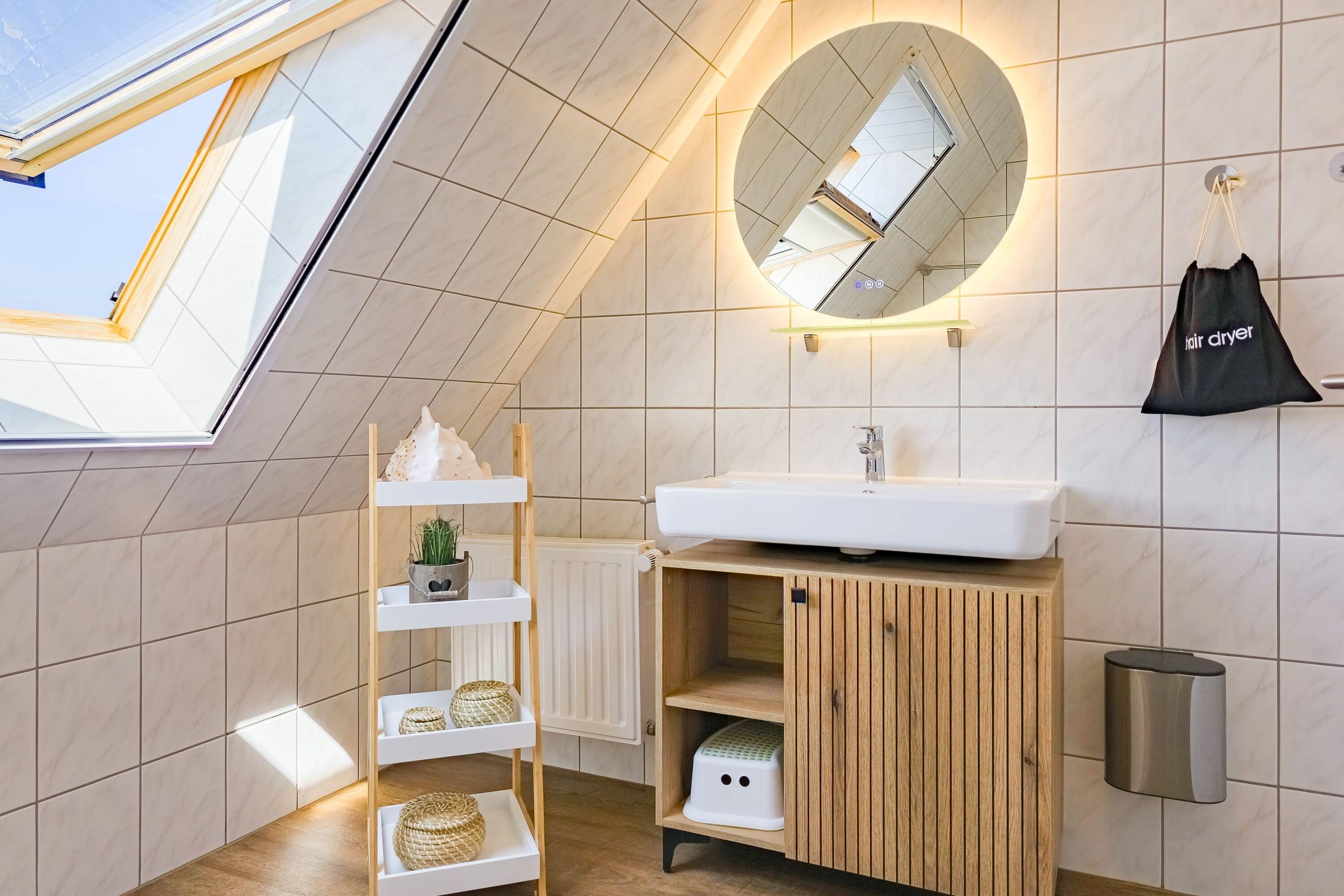 Die Ferienwohnung Lütten Pohnert empfängt Sie mit einer klaren, freundlichen Atmosphäre. In der modernen Küche lassen sich mühelos kulinarische Köstlichkeiten zaubern, während der offene Wohnbereich zum gemeinsamen Plaudern oder Entspannen einlädt. Dank der durchdachten Aufteilung bietet die Wohnung genügend Raum für Geselligkeit, aber auch die nötige Ruhe in den separat gelegenen Schlafbereichen. Hier wurde an alles gedacht, was Sie für einen unbeschwerten Urlaub an der Küste benötigen.