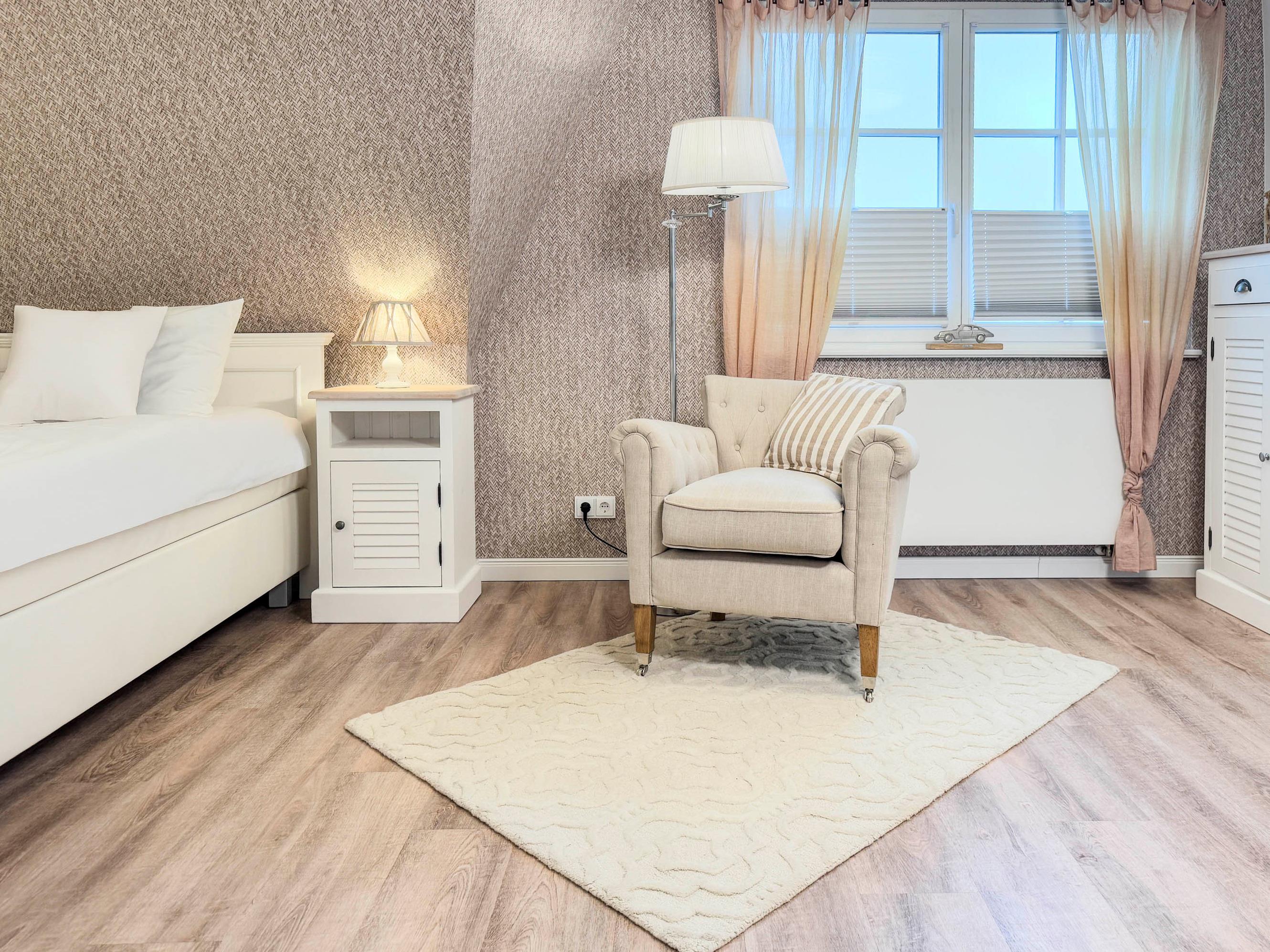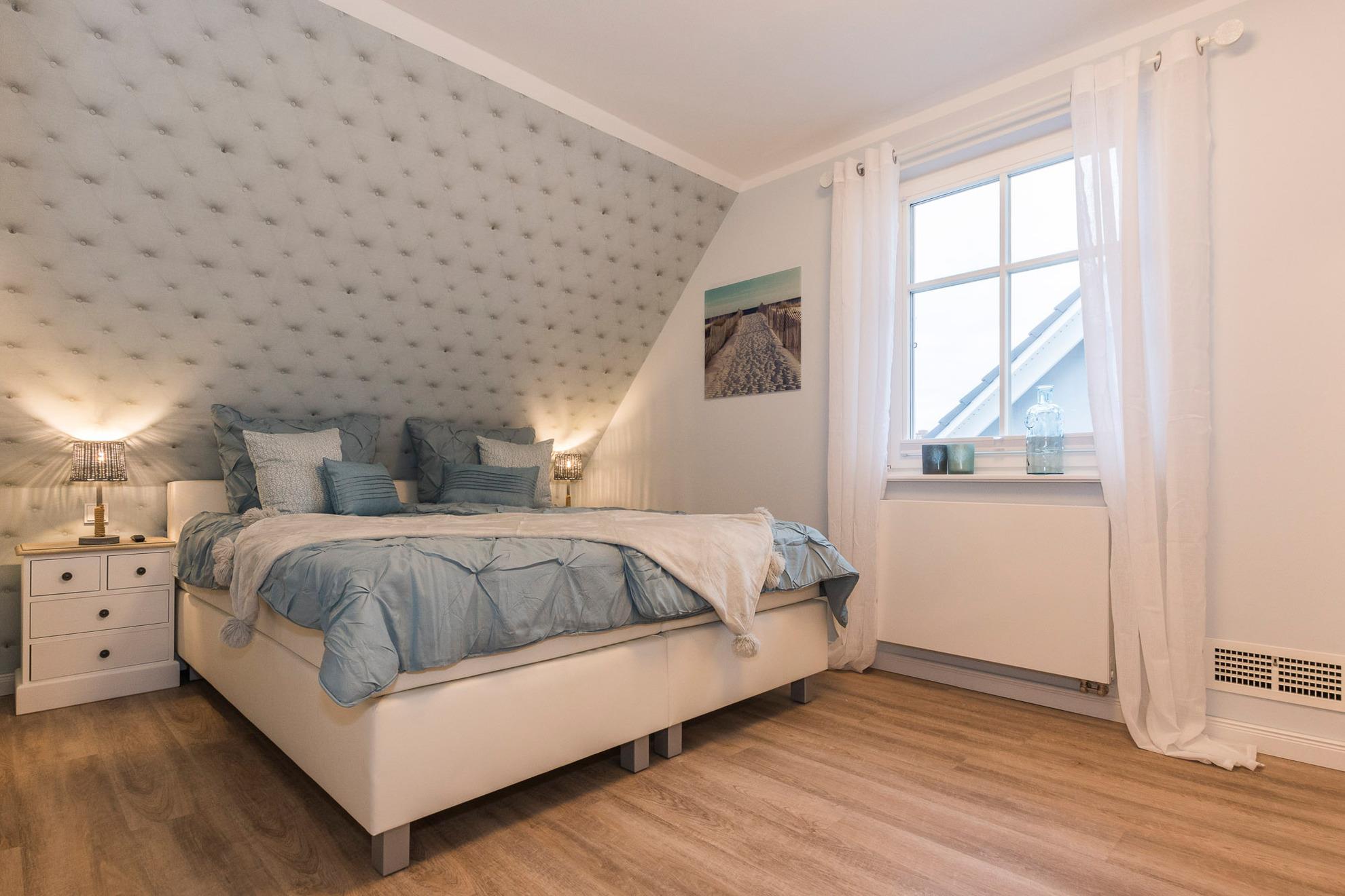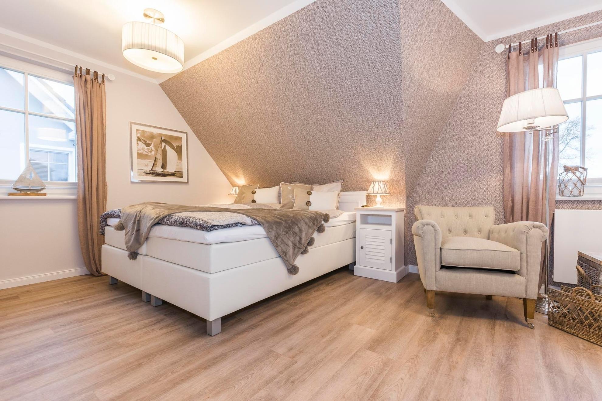 Drei komfortable Schlafzimmer mit Boxspring- und Einzelbetten für erholsamen Schlaf