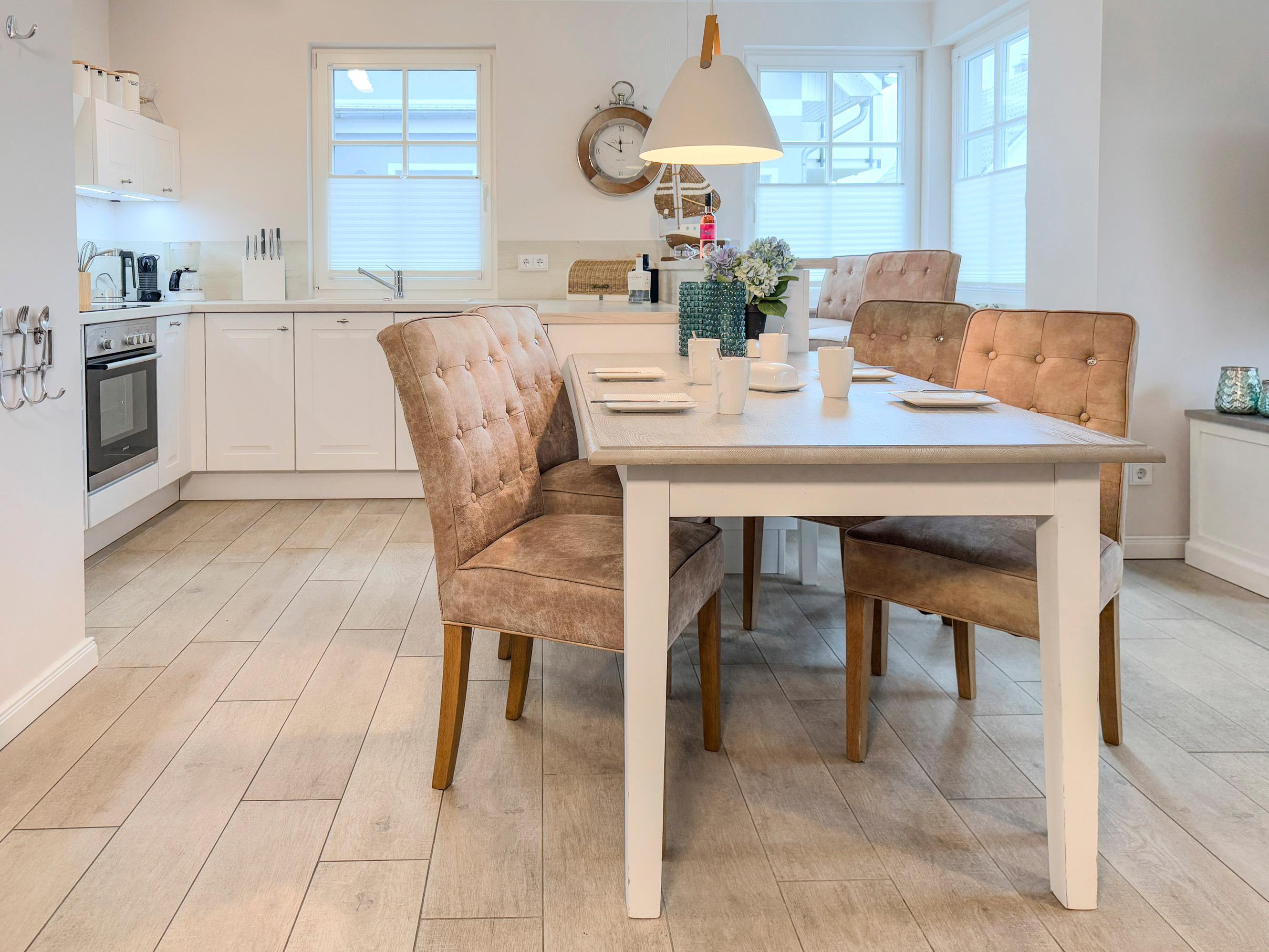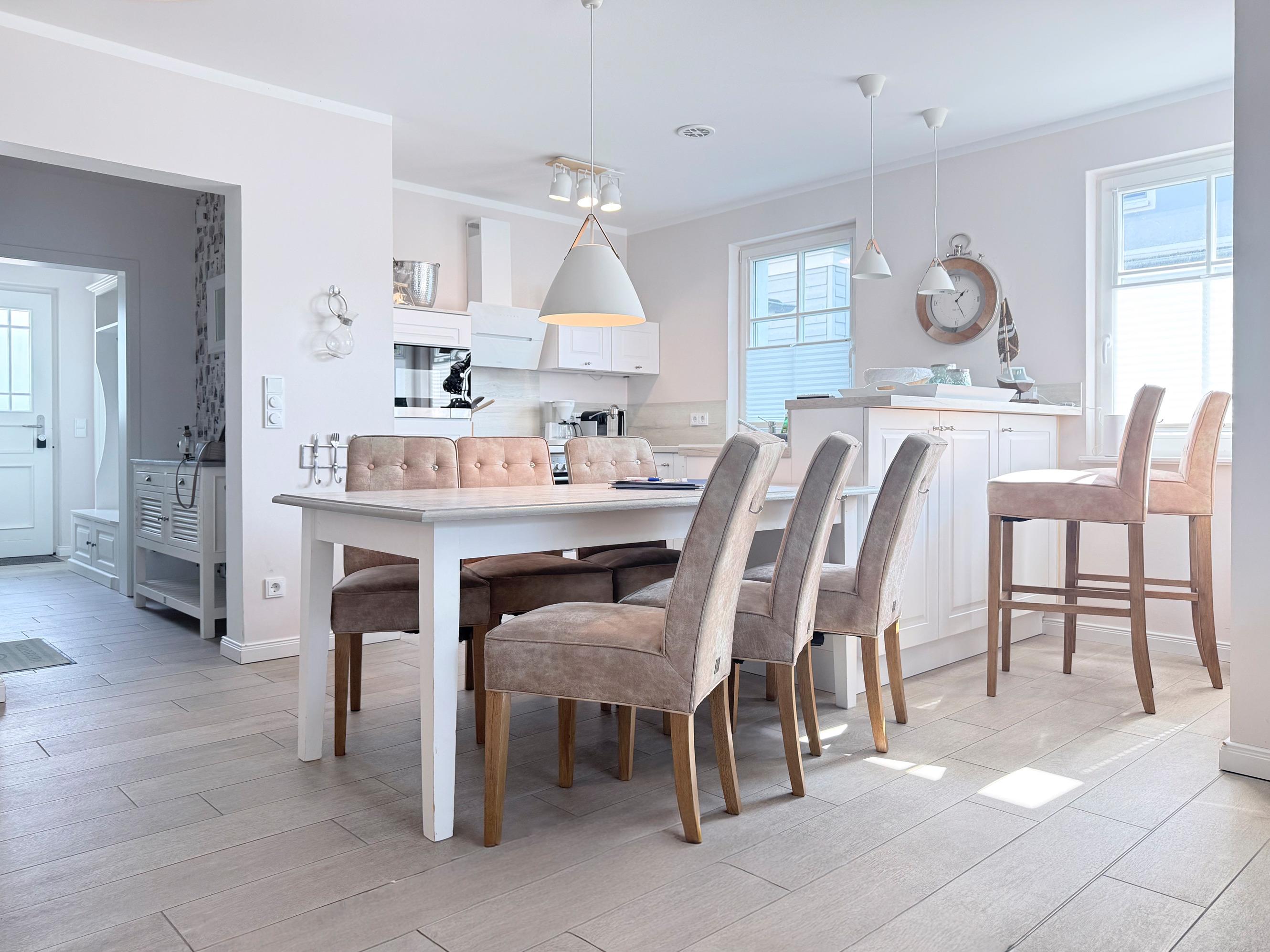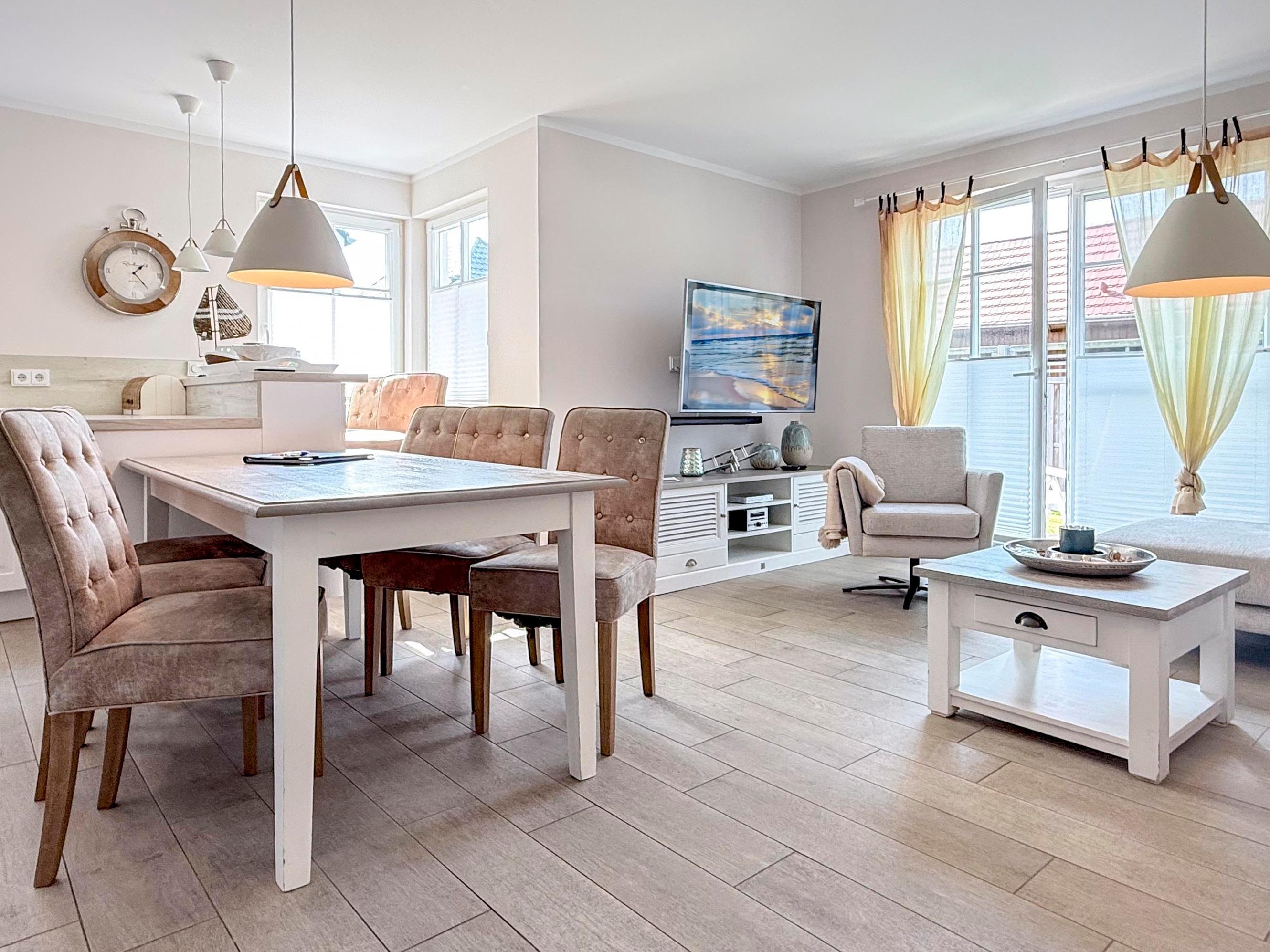 Erleben Sie im Ferienhaus Meeresstern in Zingst einen unvergesslichen Urlaub an der Ostsee. Dieses stilvoll eingerichtete Domizil bietet auf 101 m² Platz für bis zu sechs Personen und verbindet modernen Komfort mit gemütlichem Ambiente – ideal für Familien oder Freundesgruppen, die Erholung und gemeinsame Zeit suchen.