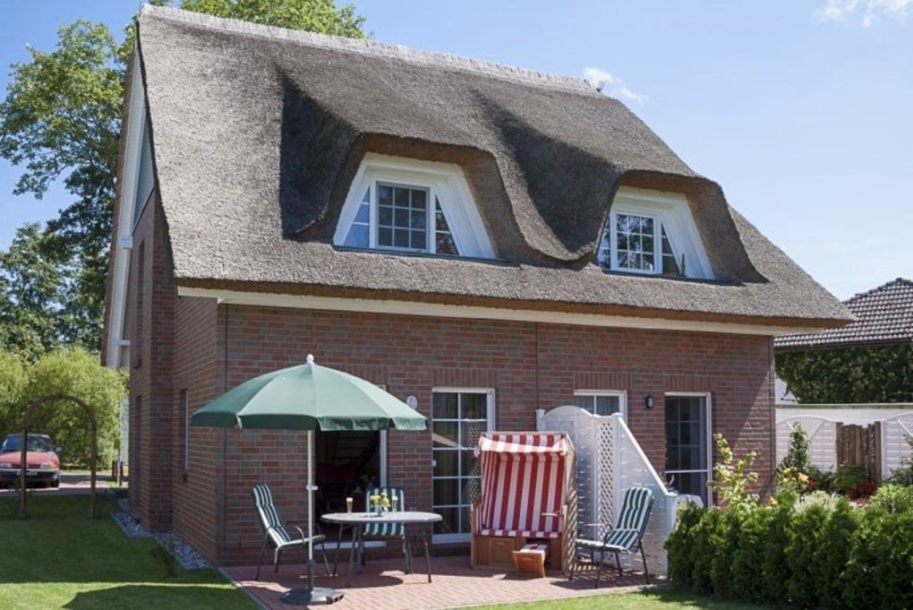 Terrasse mit Gartenblick und eigenem Strandkorb