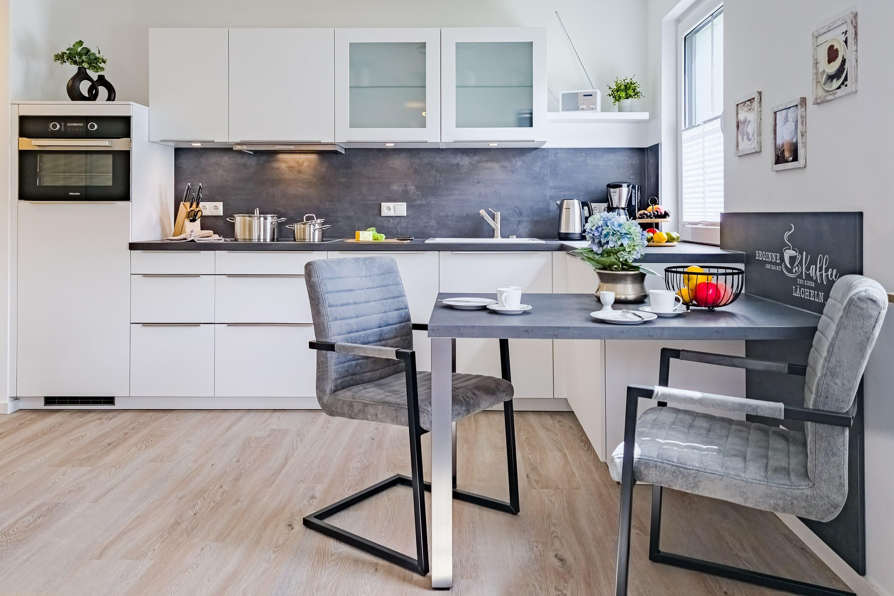 Die Ferienwohnung Sandbank No. 4 empfängt Sie mit einer modernen und einladenden Atmosphäre. Der stilvolle Wohnbereich ist ideal für entspannte Abende, während die voll ausgestattete Küchenzeile mit Backofen, Kochfeld und Geschirrspüler es Ihnen ermöglicht, kulinarische Köstlichkeiten zuzubereiten. Das gemütliche Schlafzimmer mit Doppelbett garantiert erholsamen Schlaf.