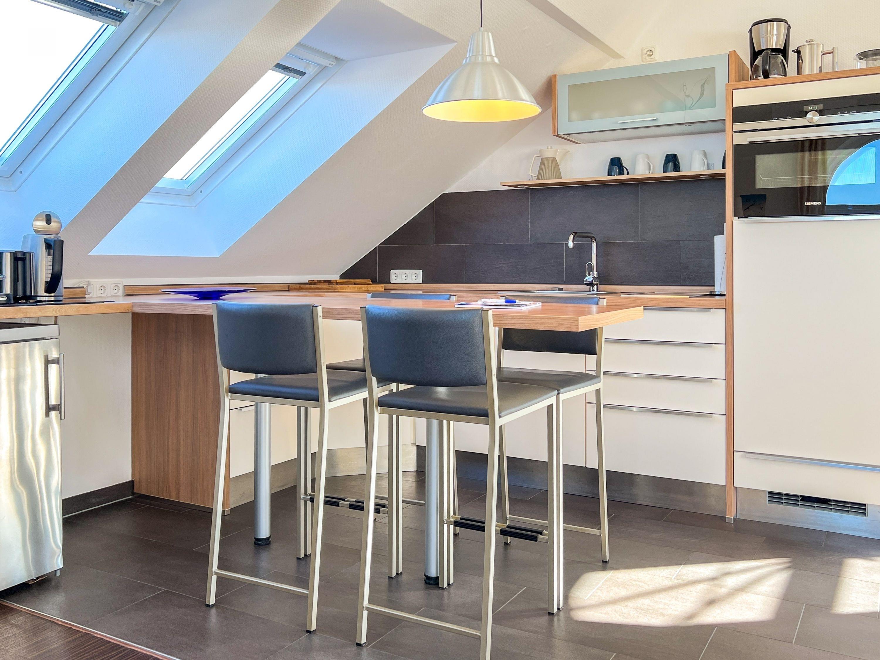 Voll ausgestattete Küche mit Geschirrspüler und Nespresso-Kaffeemaschine
