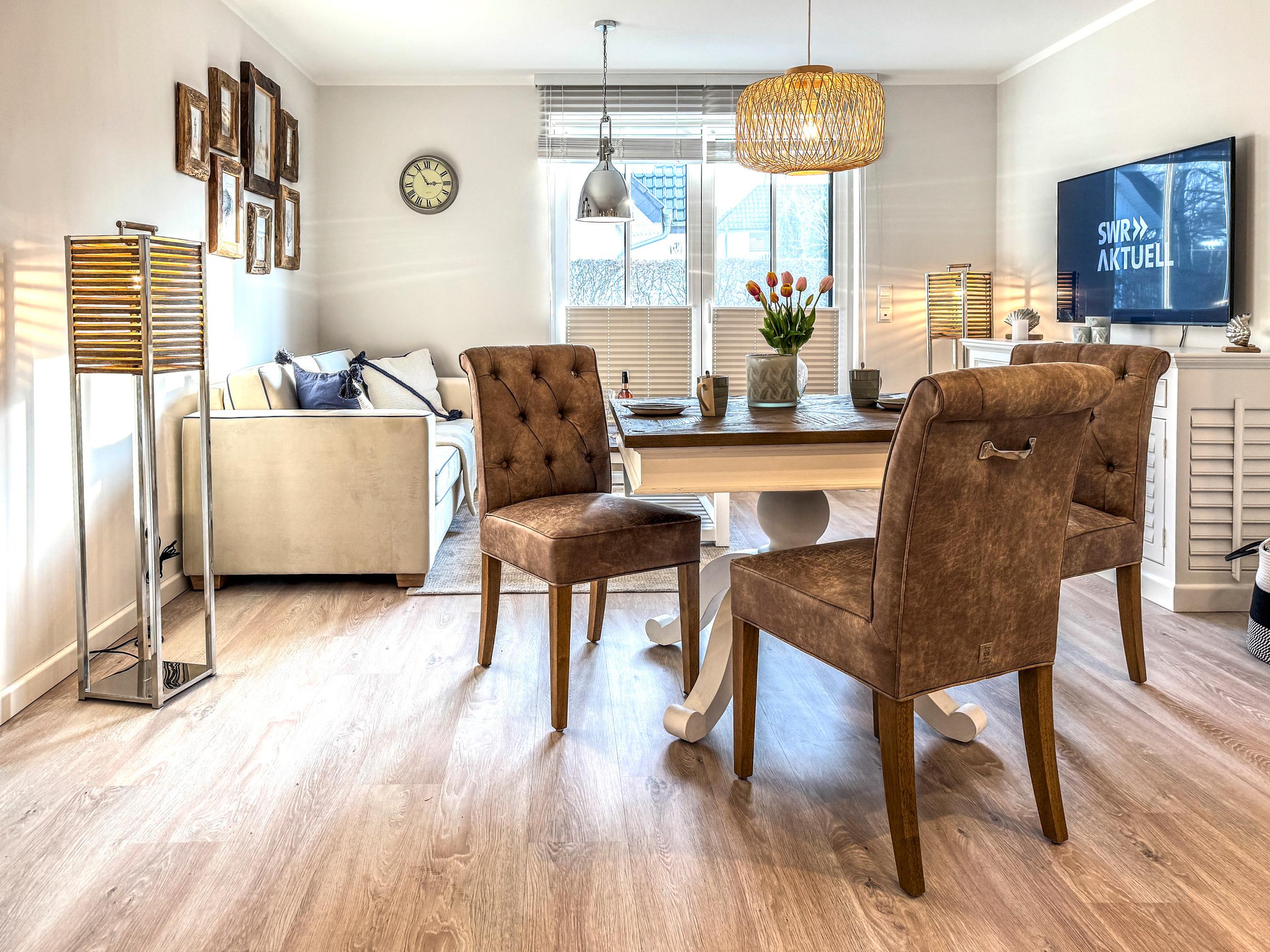 Die Ferienwohnung Schatzkiste empfängt Sie mit einer modernen und einladenden Atmosphäre. Der gemütliche Wohnbereich mit Schlafcouch bietet den perfekten Ort für entspannte Abende. Die voll ausgestattete Küchenzeile verfügt über moderne Geräte wie einen Backofen, Kochfeld, Kühlschrank mit Gefriermöglichkeit, Geschirrspüler, Toaster, Wasserkocher sowie Filter-Kaffeemaschine, sodass Sie mühelos kulinarische Köstlichkeiten zubereiten können. Das separate Schlafzimmer mit Doppelbett garantiert erholsamen Schlaf.