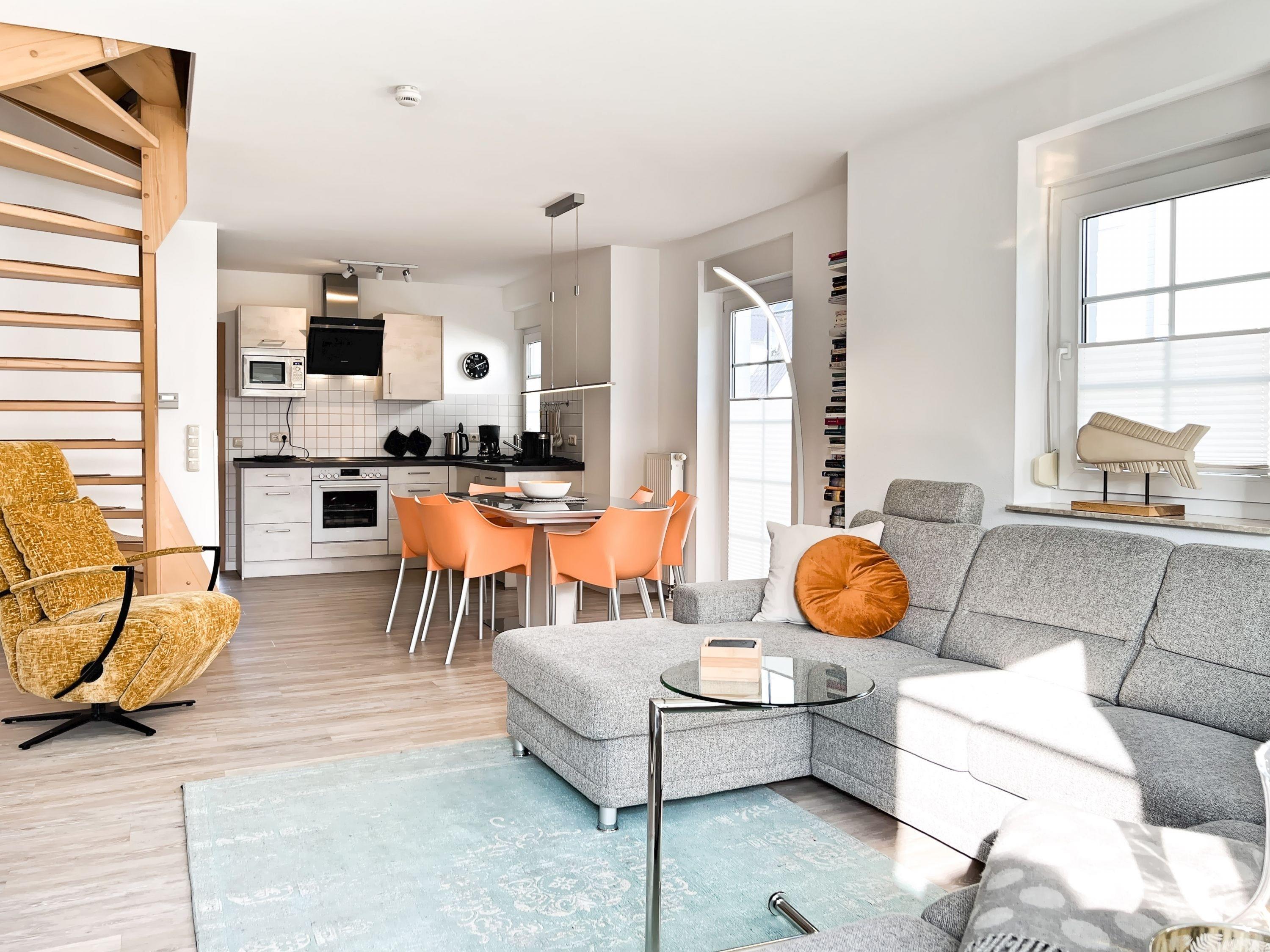 Das Ferienhaus Seensucht empfängt Sie mit einer warmen und einladenden Atmosphäre. Der gemütliche Wohnbereich ist das Herz des Hauses und lädt zu entspannten Abenden ein – sei es bei einem guten Buch oder einem gemeinsamen Spieleabend. Die moderne Küche ist vollständig ausgestattet, sodass Sie mühelos köstliche Mahlzeiten für Ihre Liebsten zubereiten können.