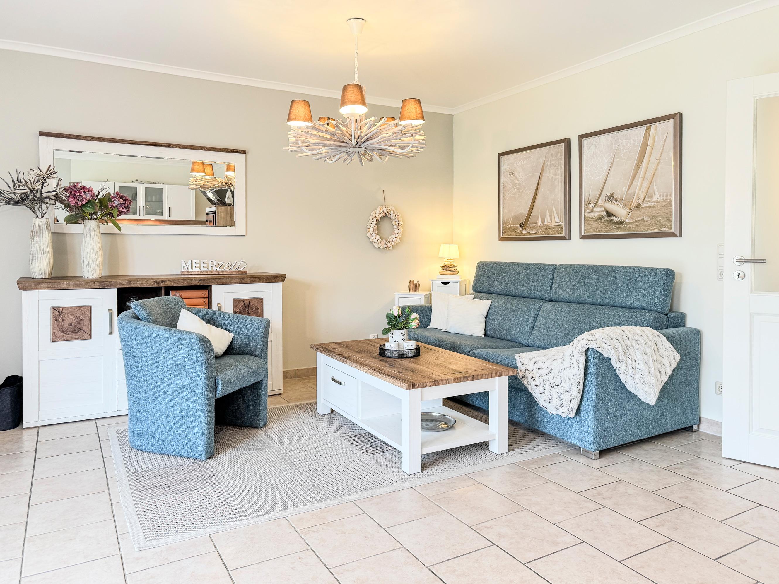 Die Ferienwohnung Silbermöwe empfängt Sie mit einer harmonischen Kombination aus maritimem Landhausstil und modernster Ausstattung. Der helle Wohnbereich lädt zum Verweilen ein, während die voll ausgestattete Küche mit Spülmaschine, Backofen, Mikrowelle, Cerankochfeld und Kühlschrank mit Gefrierfach keine Wünsche offenlässt. Das gemütliche Schlafzimmer mit komfortablem Doppelbett garantiert erholsamen Schlaf.