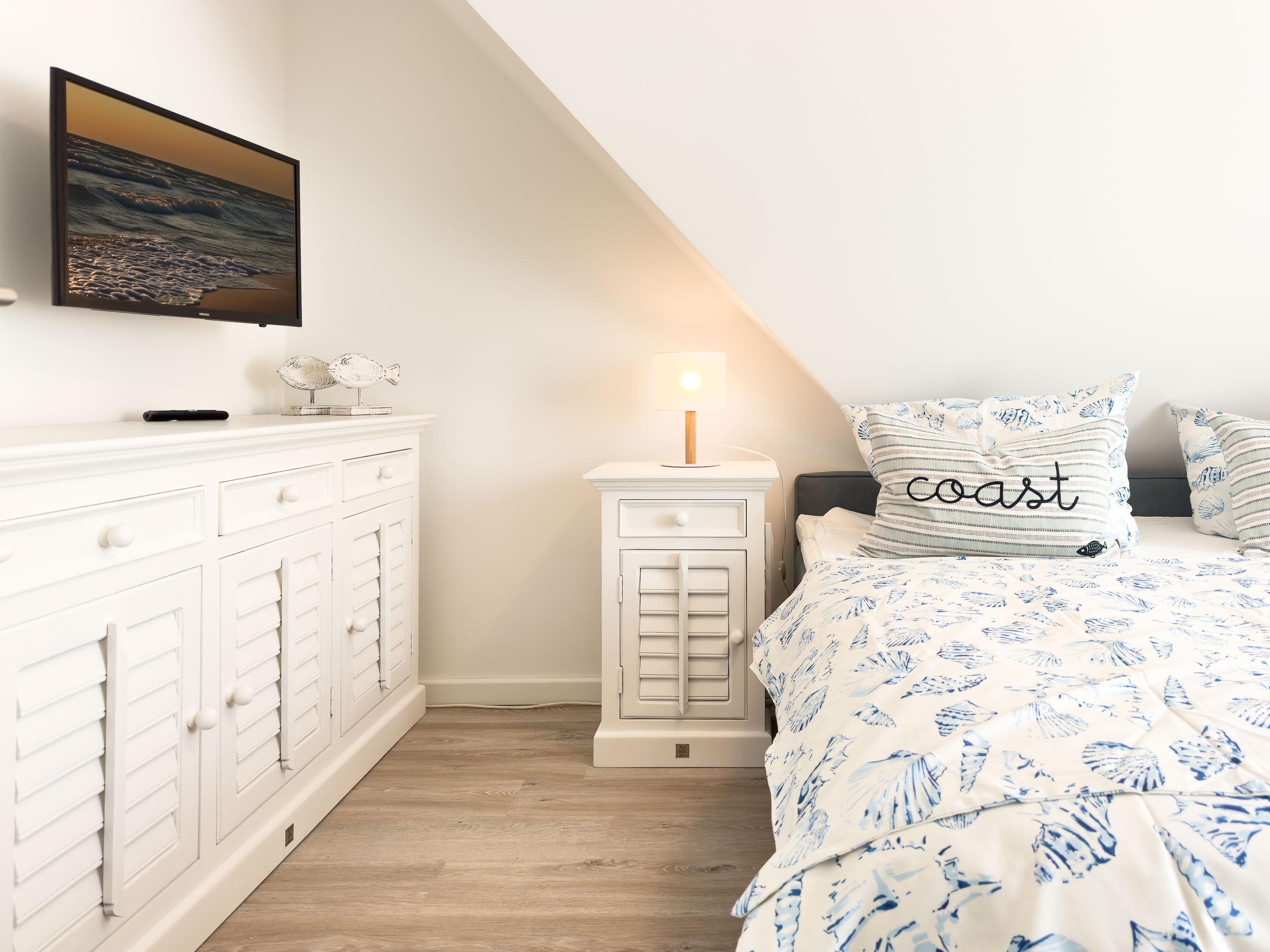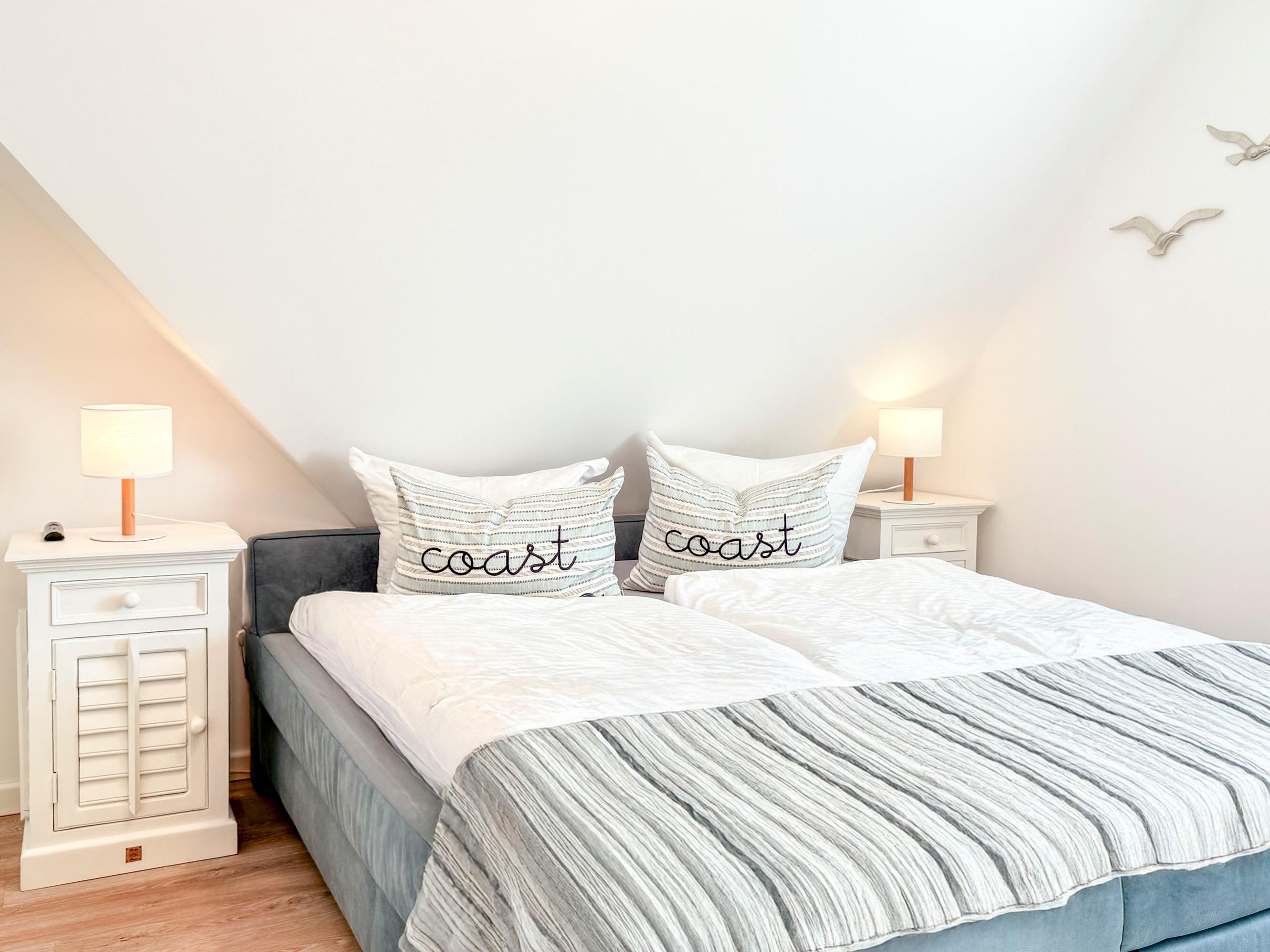 Die Ferienwohnung Störtebekerkoje 12/5 empfängt Sie mit einer modernen und einladenden Atmosphäre. Der gemütliche Wohn- und Essbereich bietet den perfekten Ort für entspannte Abende. Die voll ausgestattete Küchenzeile verfügt über moderne Geräte wie Geschirrspüler, Backofen, Kochfeld, Kühlschrank, Toaster, Wasserkocher und Filterkaffeemaschine, sodass Sie mühelos kulinarische Köstlichkeiten zubereiten können. Die beiden separaten Schlafzimmer sorgen für erholsamen Schlaf.