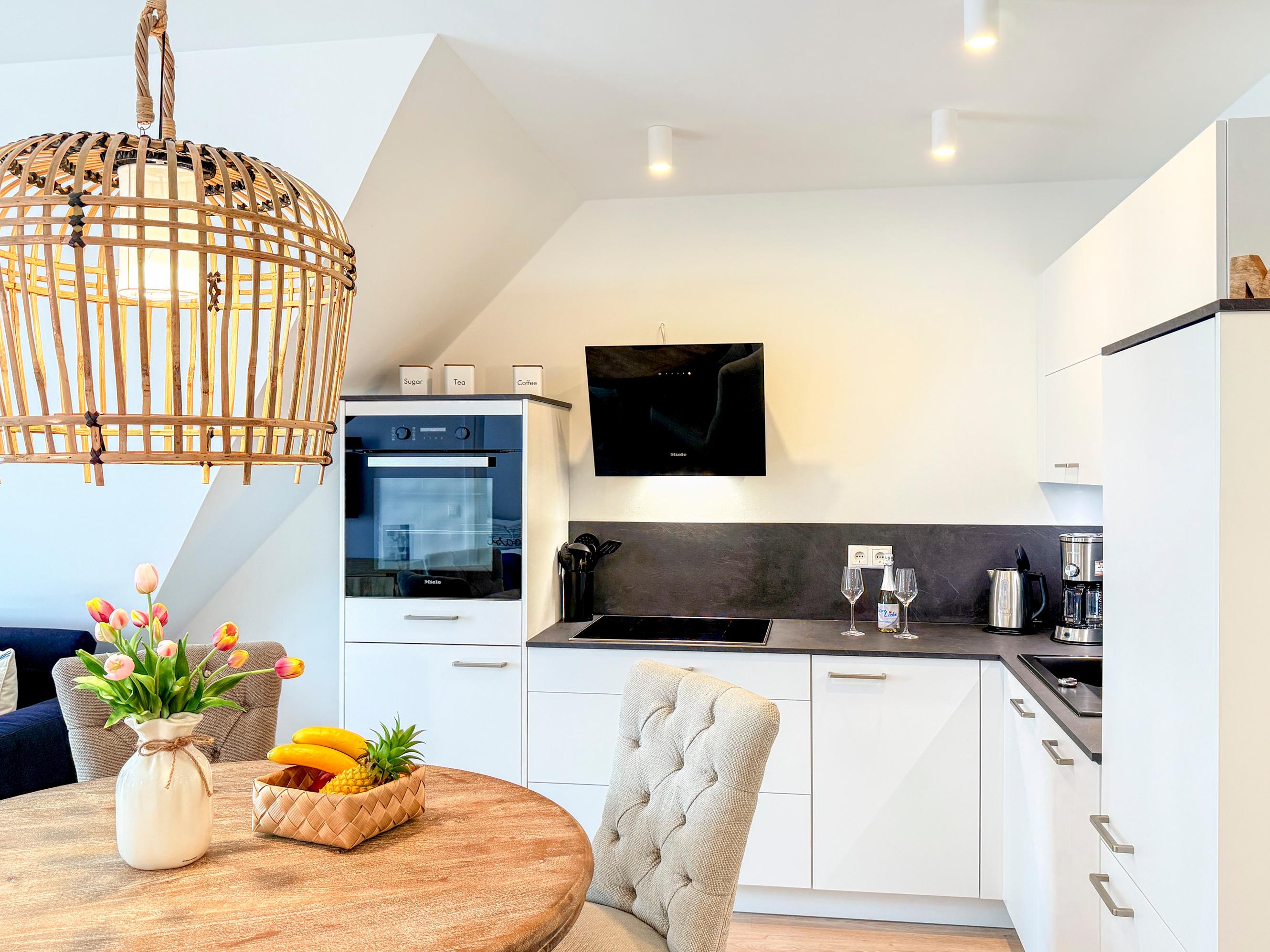 Voll ausgestattete Küchenzeile mit Geschirrspüler und Filterkaffeemaschine