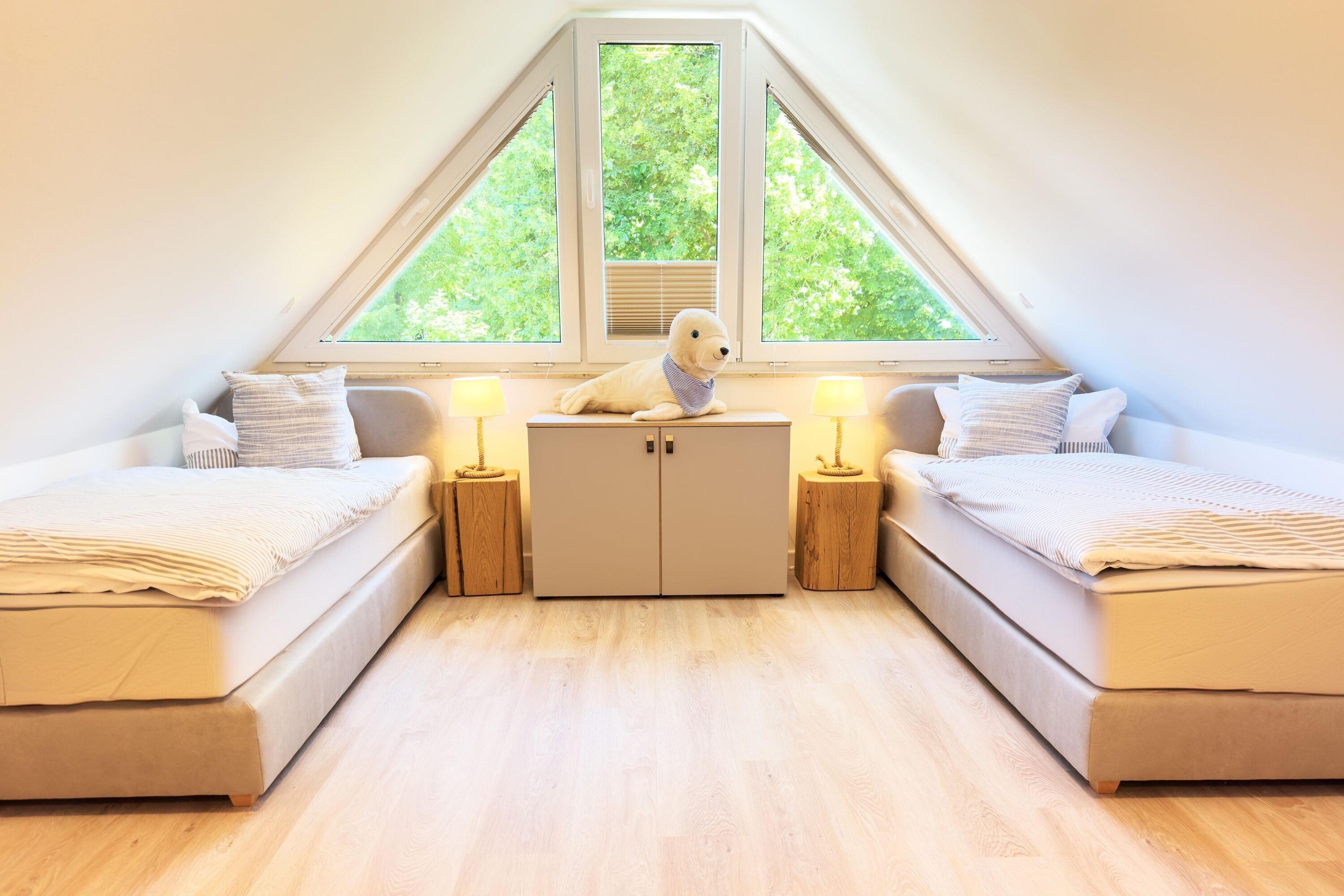 Zwei separate Schlafzimmer: eines mit Doppelbett, eines mit zwei Einzelbetten