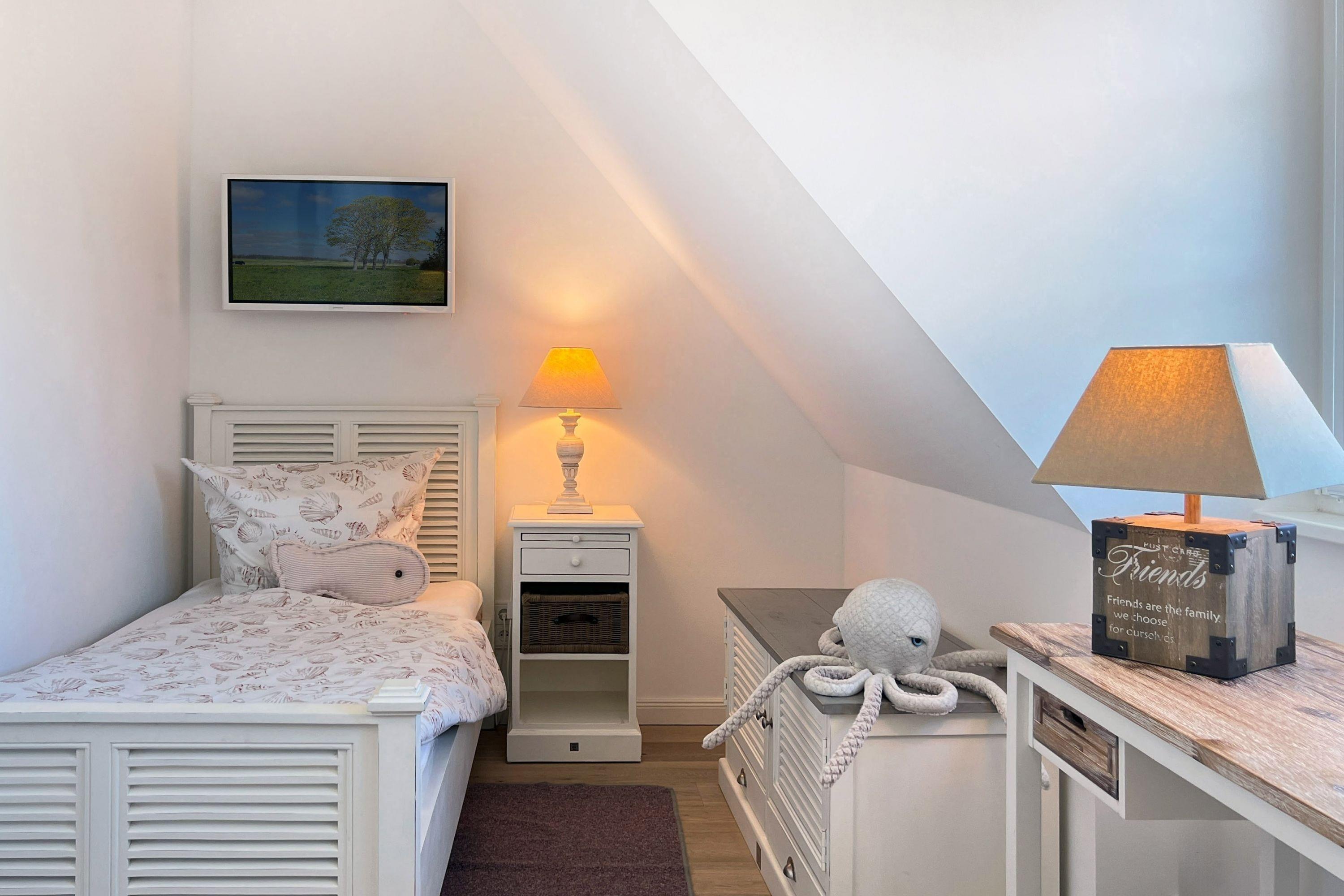 Die große Süd-West-Terrasse mit modernen Gartenmöbeln, Sonnenschirm und einem Weber-Holzkohle-Grill lädt zum Verweilen ein. Im eingezäunten Garten stehen Ihnen ein Strandkorb und 4 Sonnenliegen zur Verfügung – ideal für entspannte Tage in der Sonne.