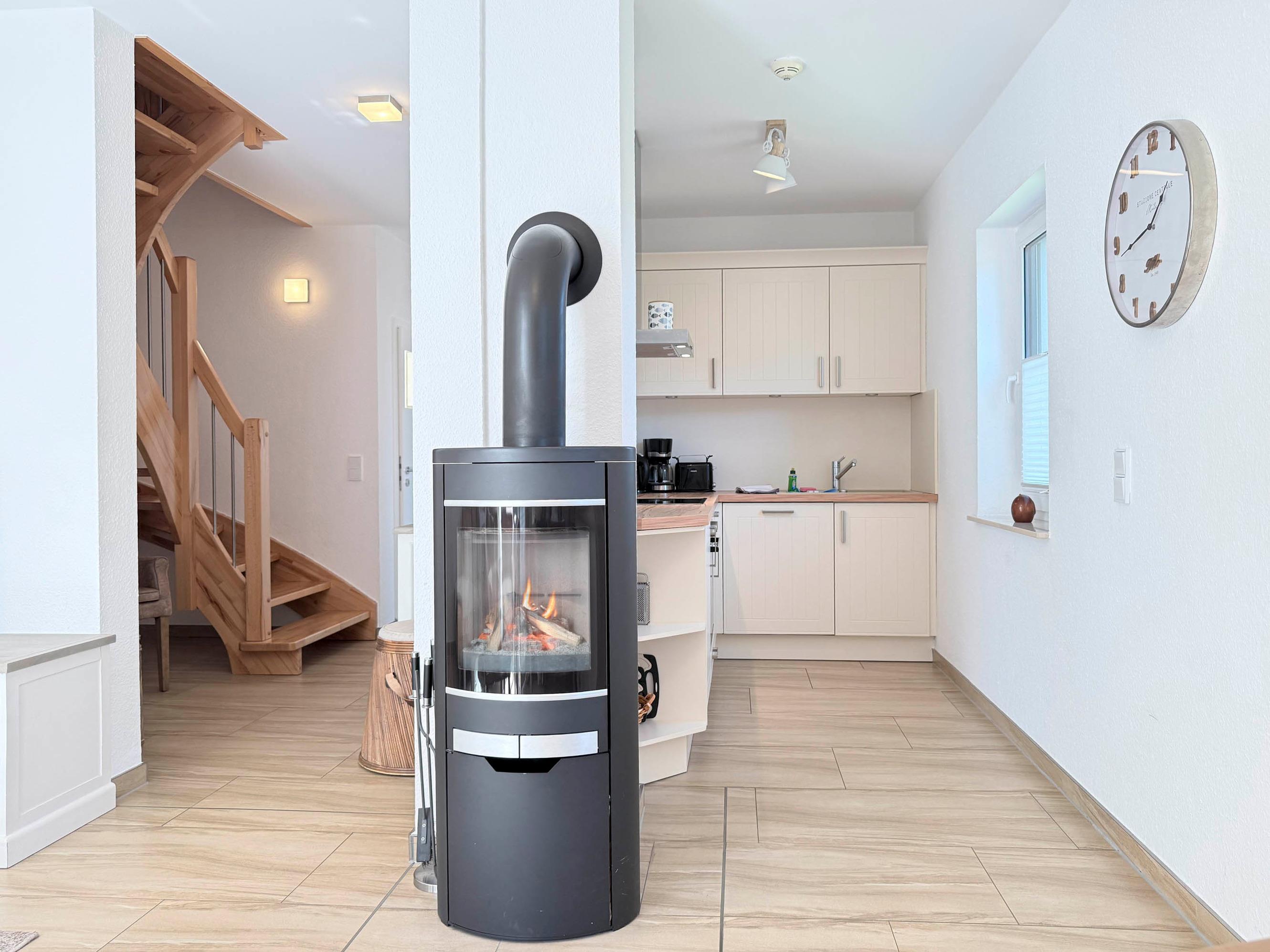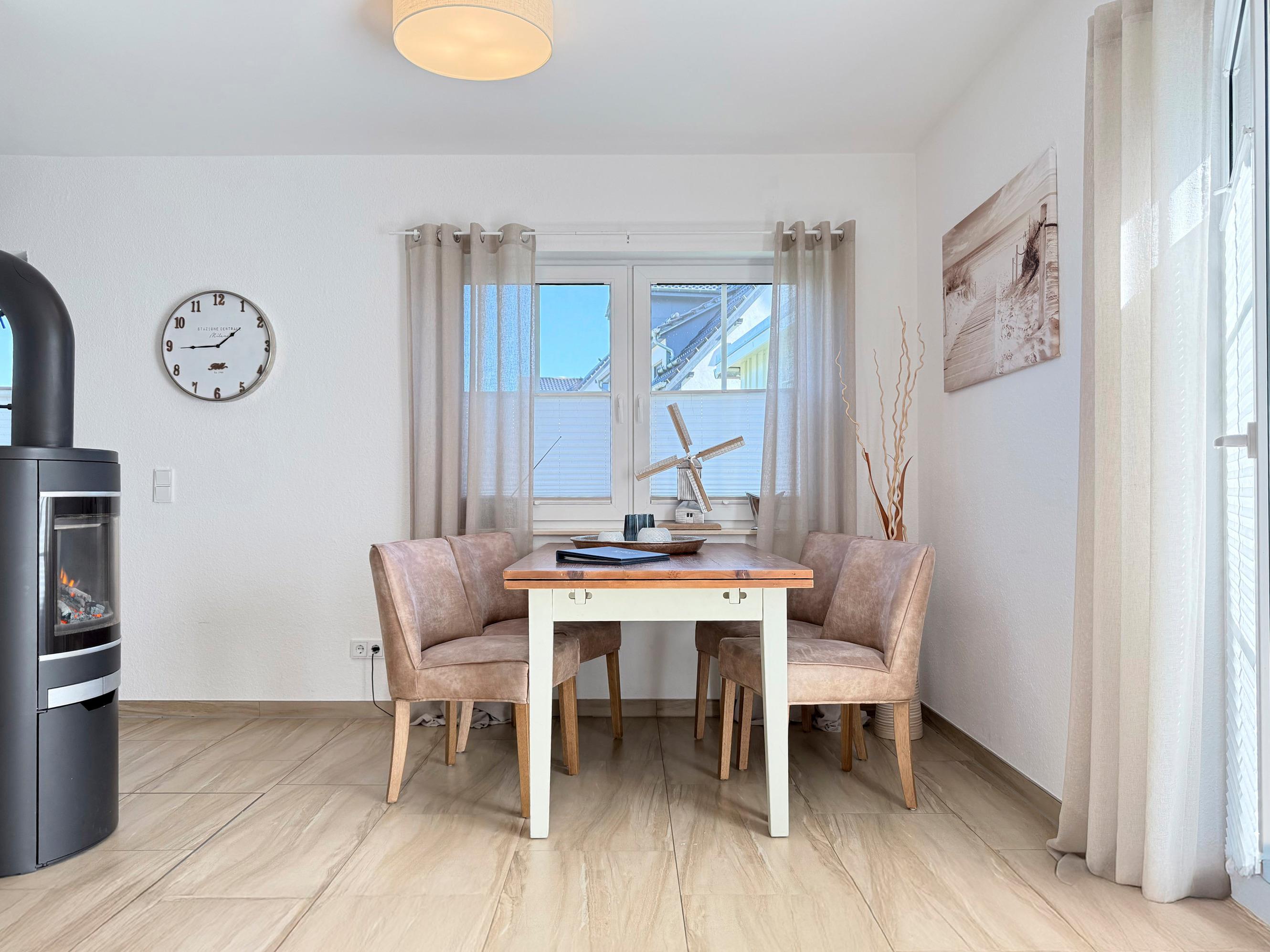 Der offene Wohn- und Essbereich ist das Herz des Hauses und bietet den perfekten Ort für entspannte Abende – ob bei einem guten Buch, einem Spieleabend oder einem Glas Wein vor dem Kamin.
