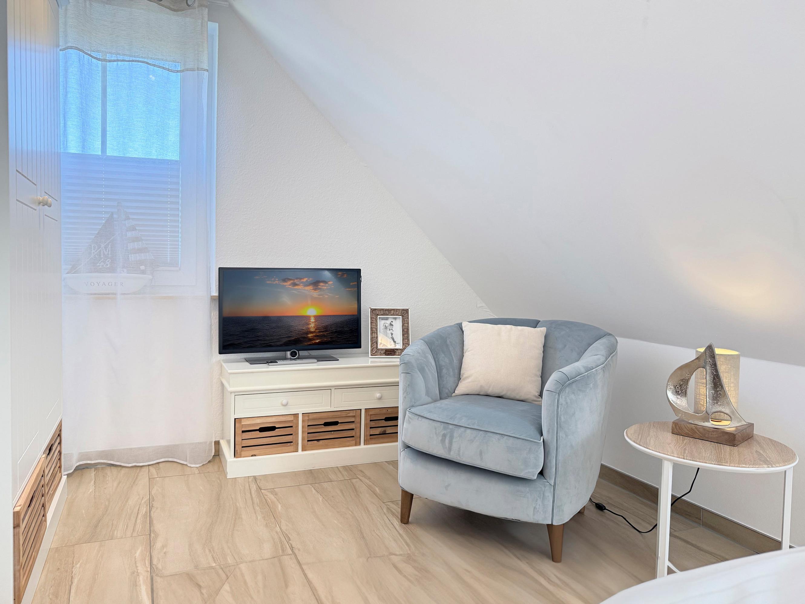 Das Ferienhaus Strandkaten empfängt Sie mit einer gemütlichen und einladenden Atmosphäre.