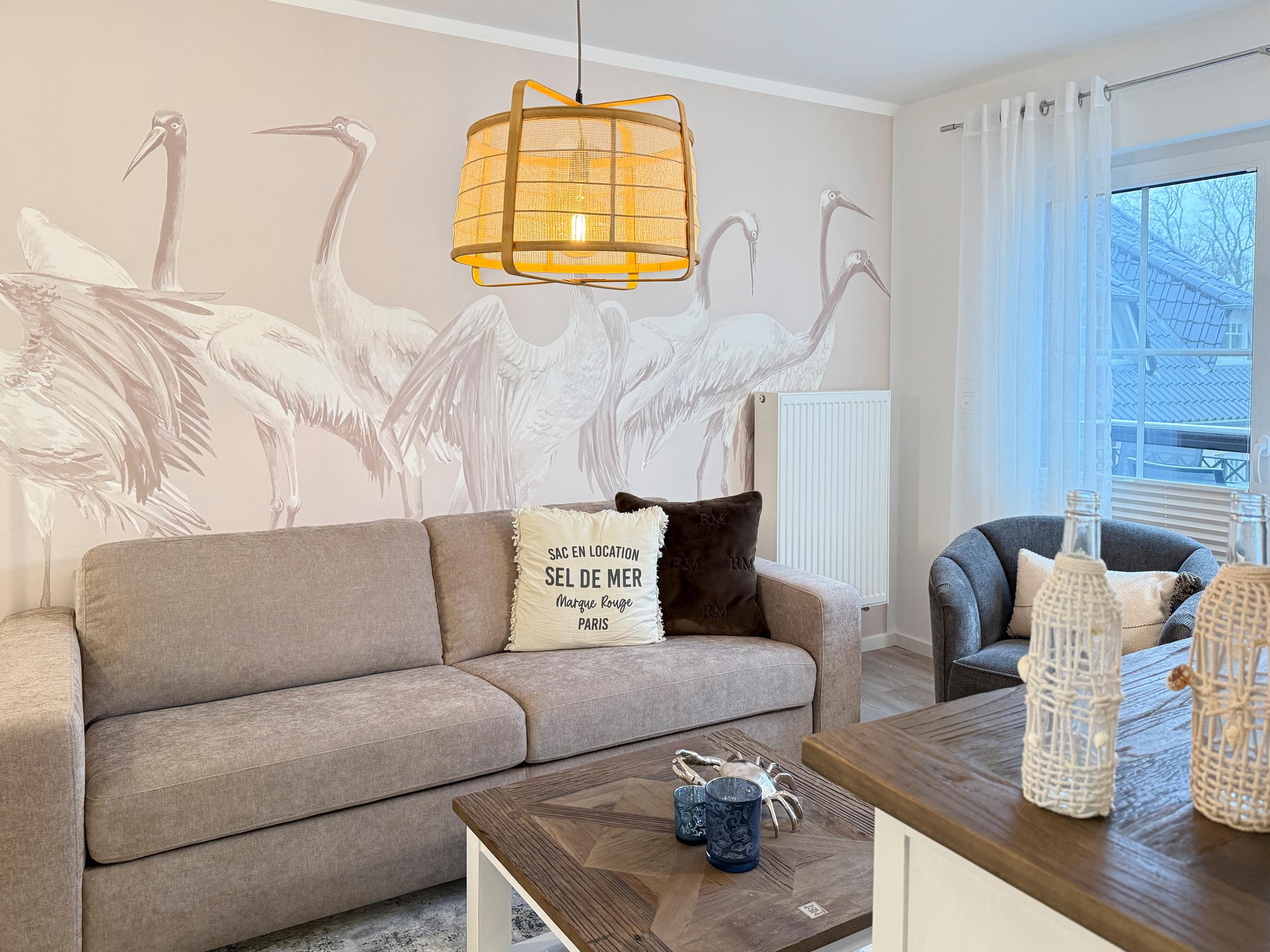 Die Ferienwohnung Strandsegler Whg. 5 empfängt Sie mit einer modernen und einladenden Atmosphäre. Der helle Wohnbereich mit bequemer Sitzgruppe bietet den perfekten Ort für entspannte Abende. Die voll ausgestattete Küchenzeile verfügt über moderne Geräte, sodass Sie mühelos kulinarische Köstlichkeiten zubereiten können. Das separate Schlafzimmer mit komfortablem Boxspringbett sorgt für erholsamen Schlaf.