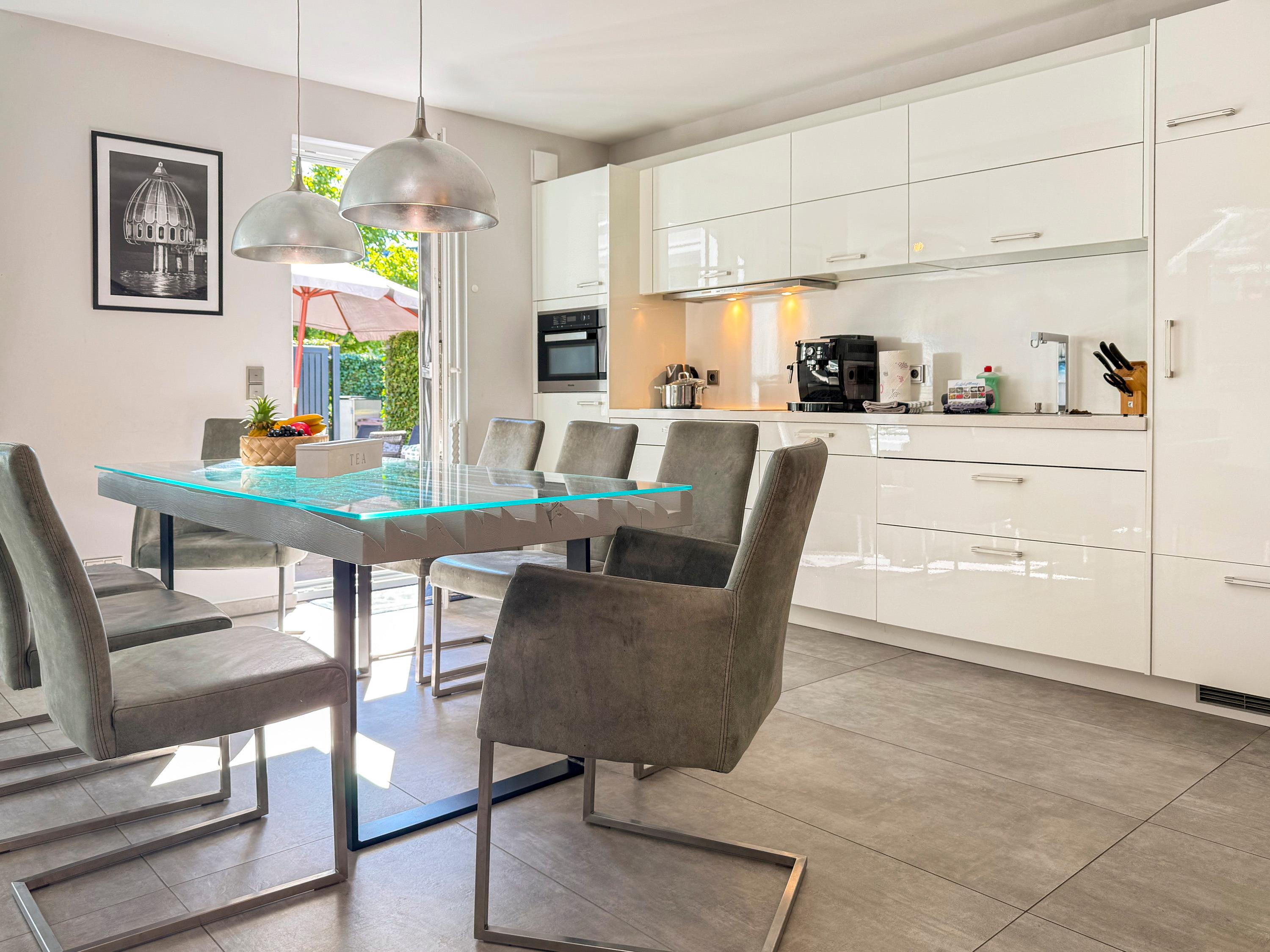 Voll ausgestattete Küche: Geschirrspüler, Backofen, Kochfeld, Kaffeevollautomat u. v. m.