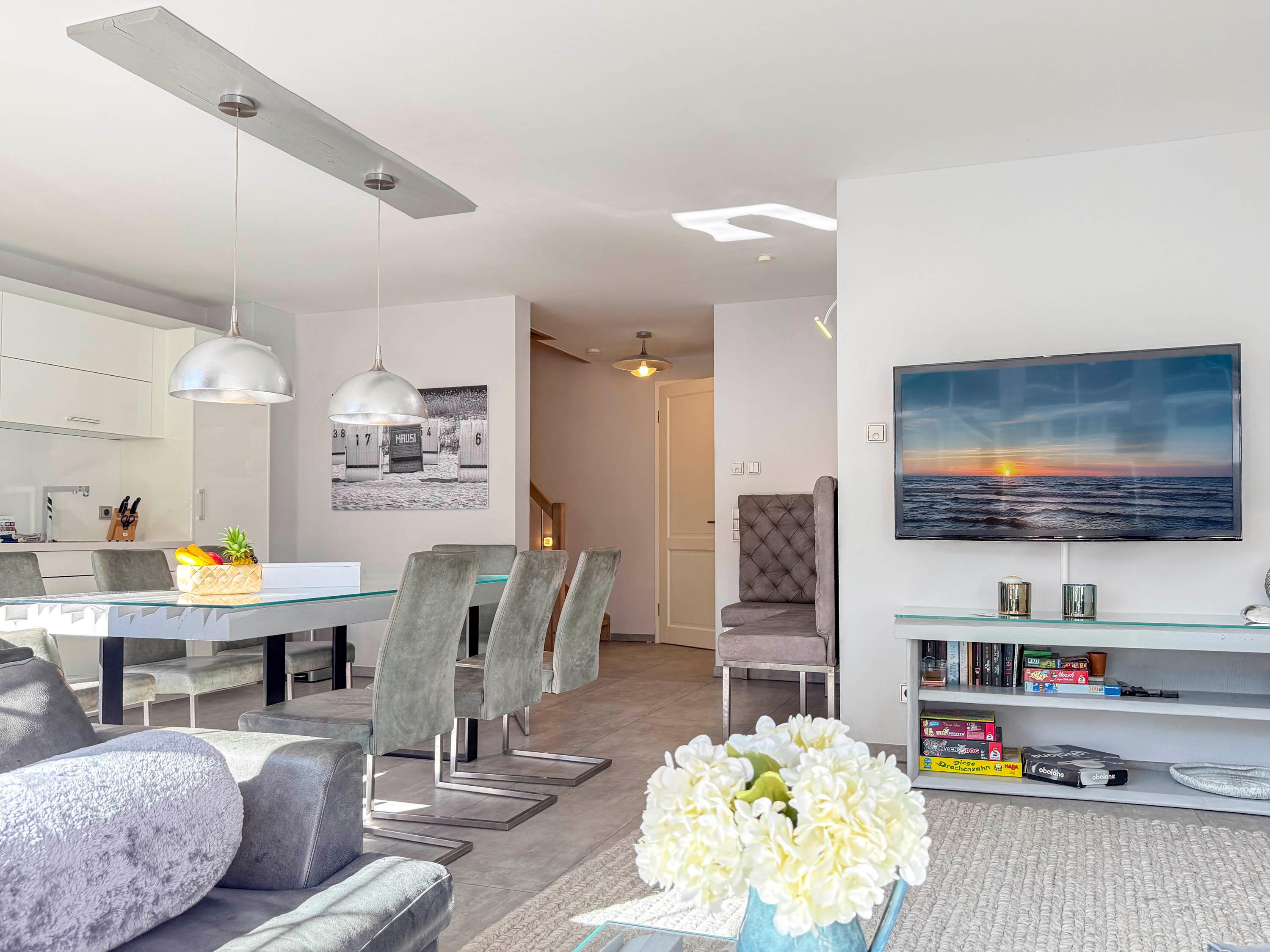 Gemütlicher Wohn- und Essbereich mit moderner Technik