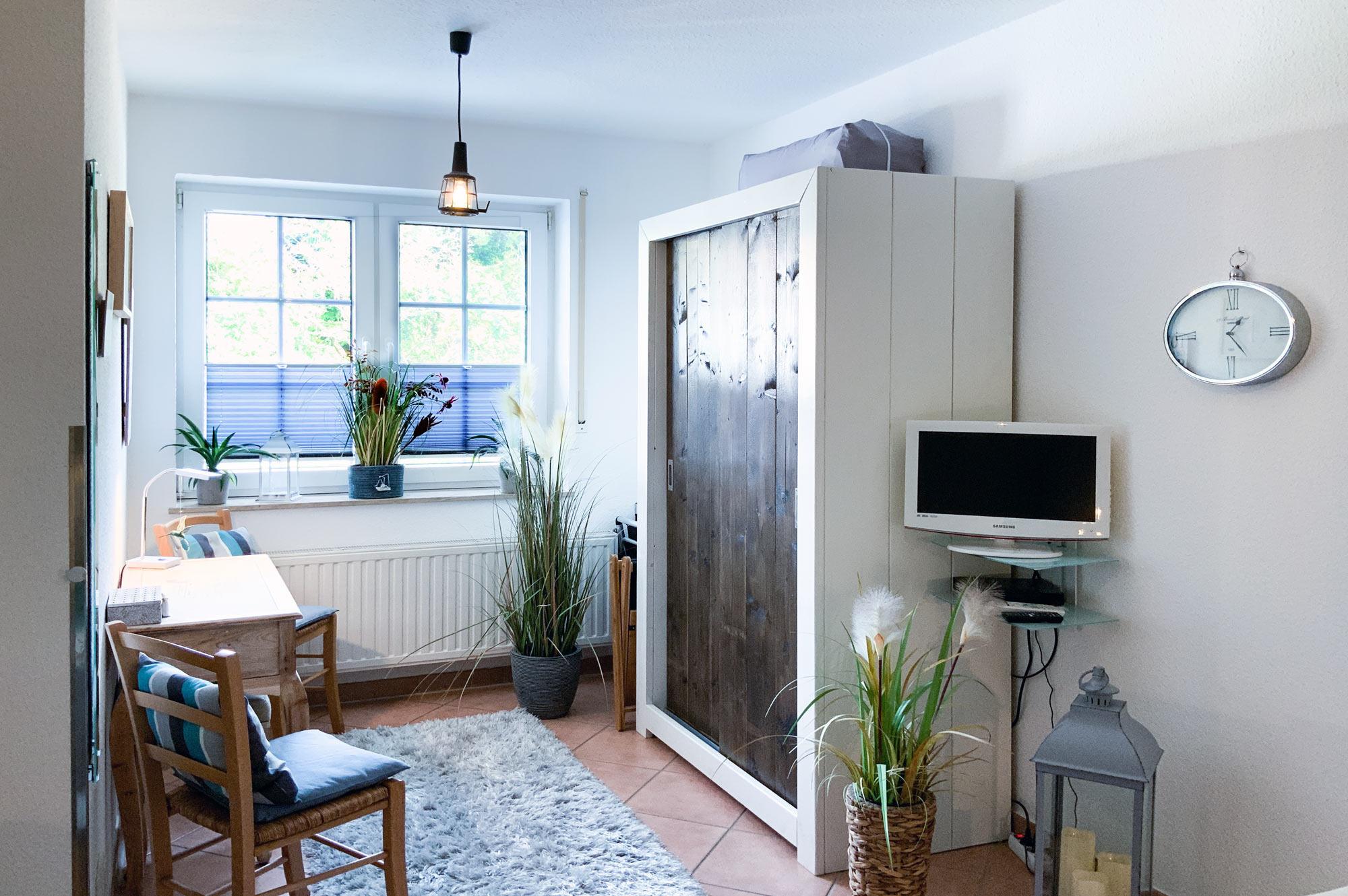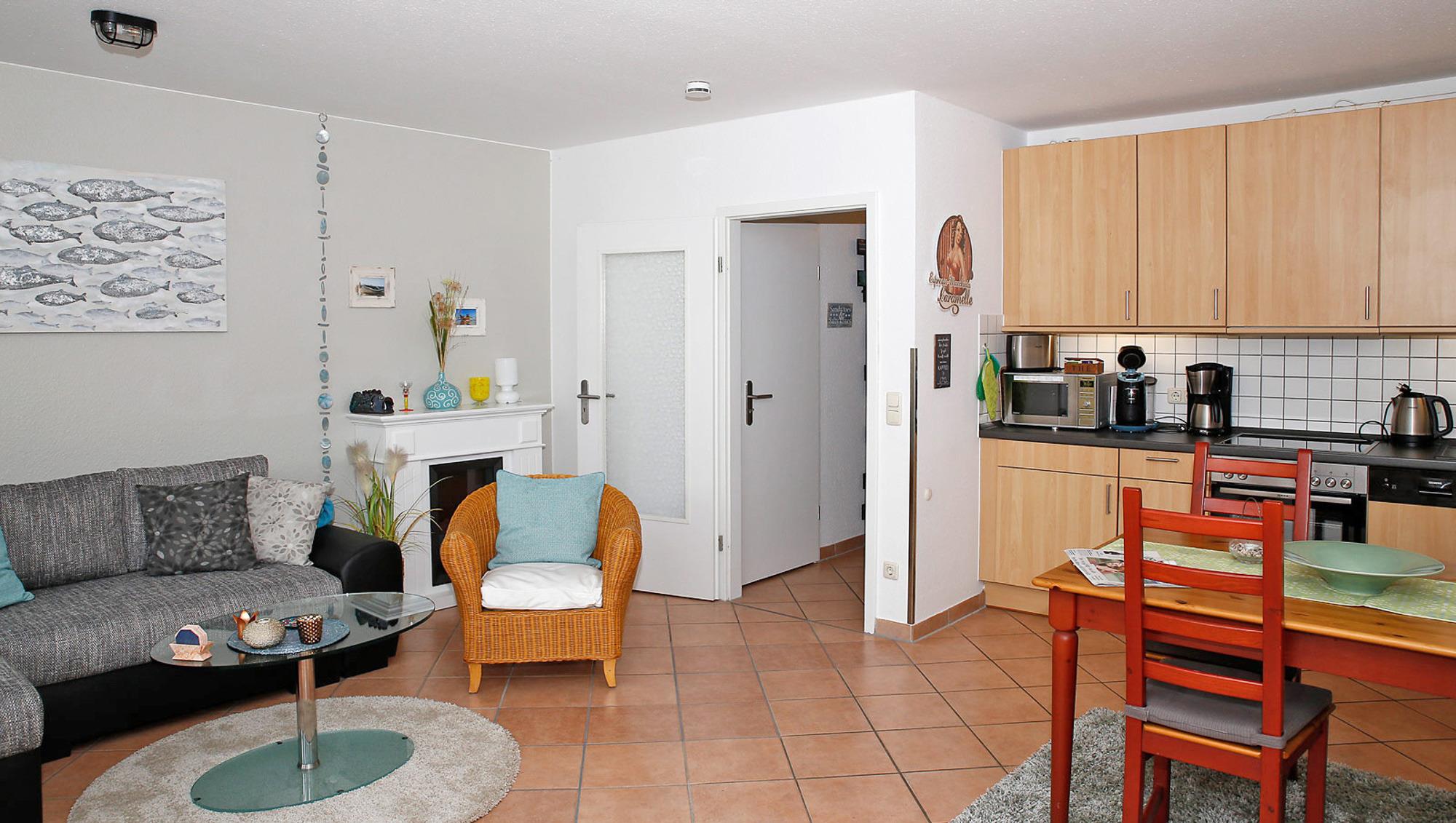 Die Ferienwohnung Traummomente empfängt Sie mit einer modernen und maritimen Atmosphäre. Der großzügige Wohn- und Essbereich lädt zum Verweilen ein, während die voll ausgestattete Küche alle Annehmlichkeiten für kulinarische Erlebnisse bietet. Das separate Schlafzimmer sorgt für erholsamen Schlaf, und der Elektrokamin schafft bei Bedarf eine gemütliche Stimmung.
